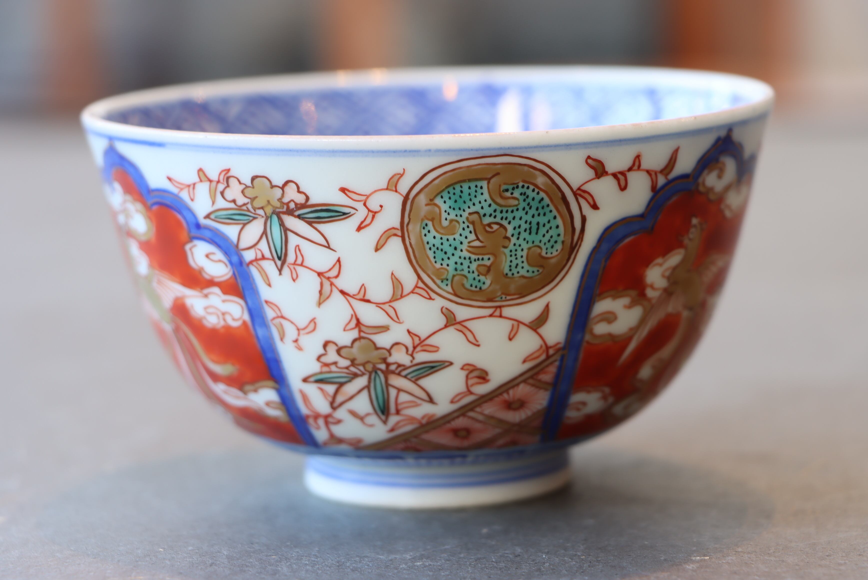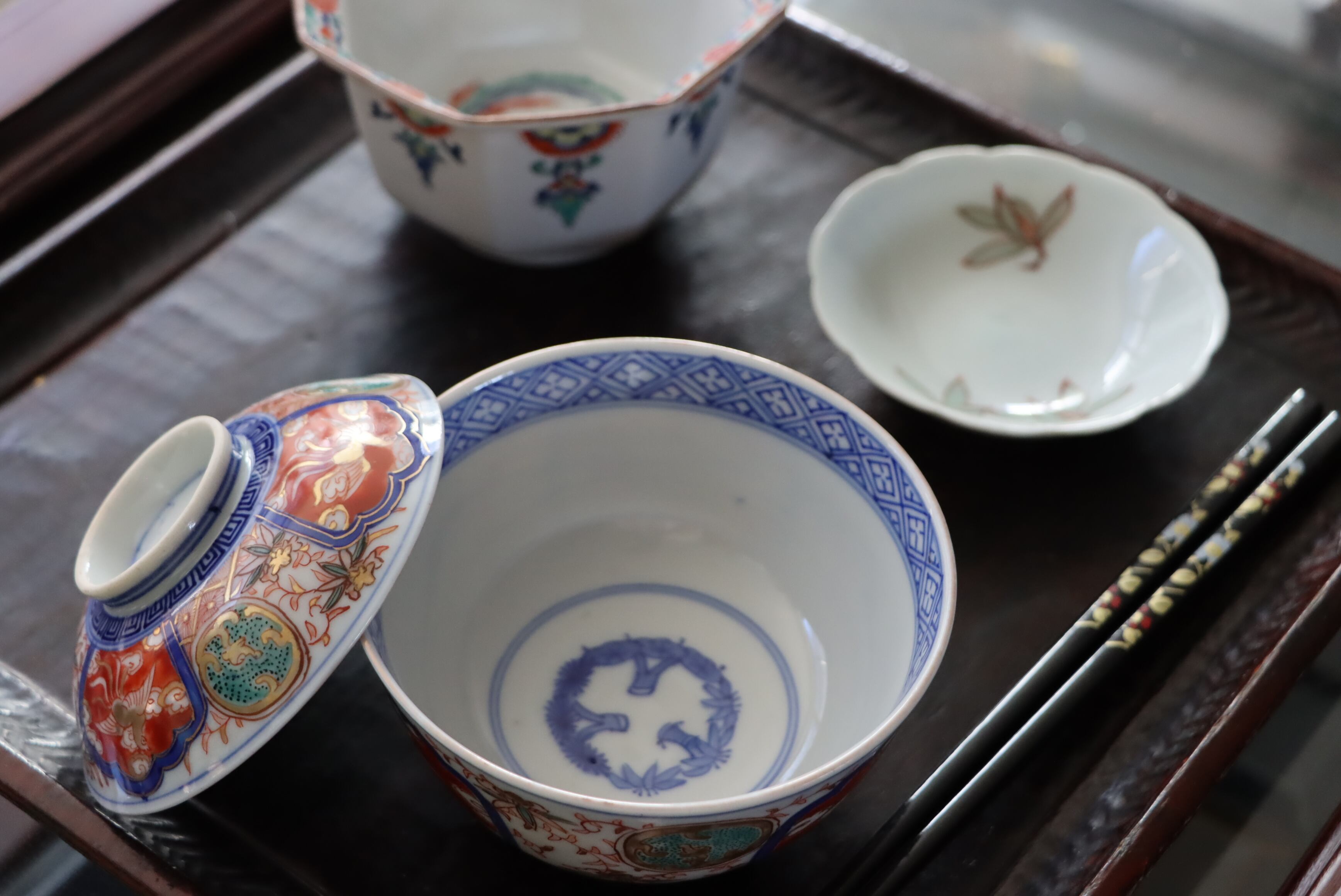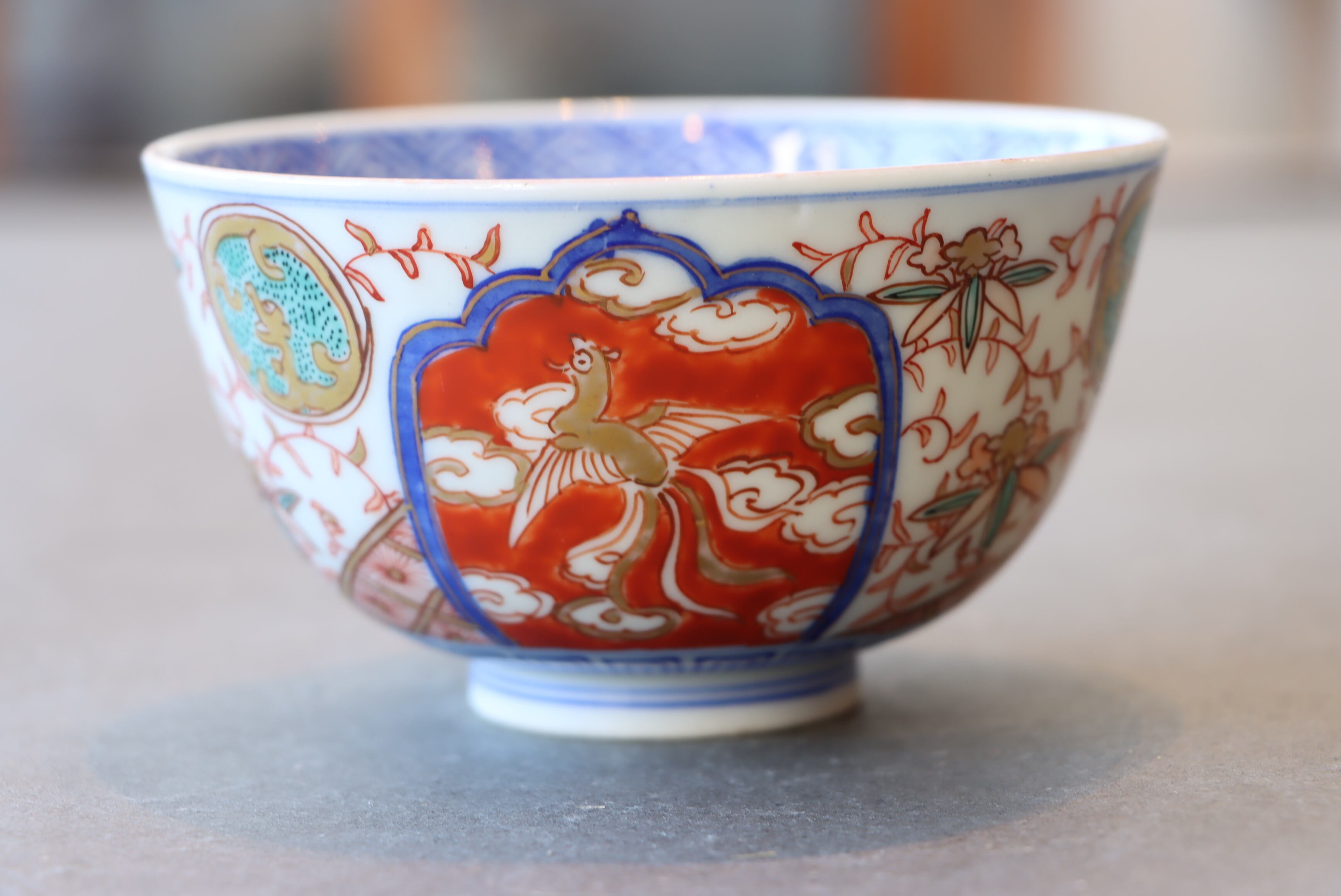 【Imari covered bowl with phoenix design in overglaze enamels.】