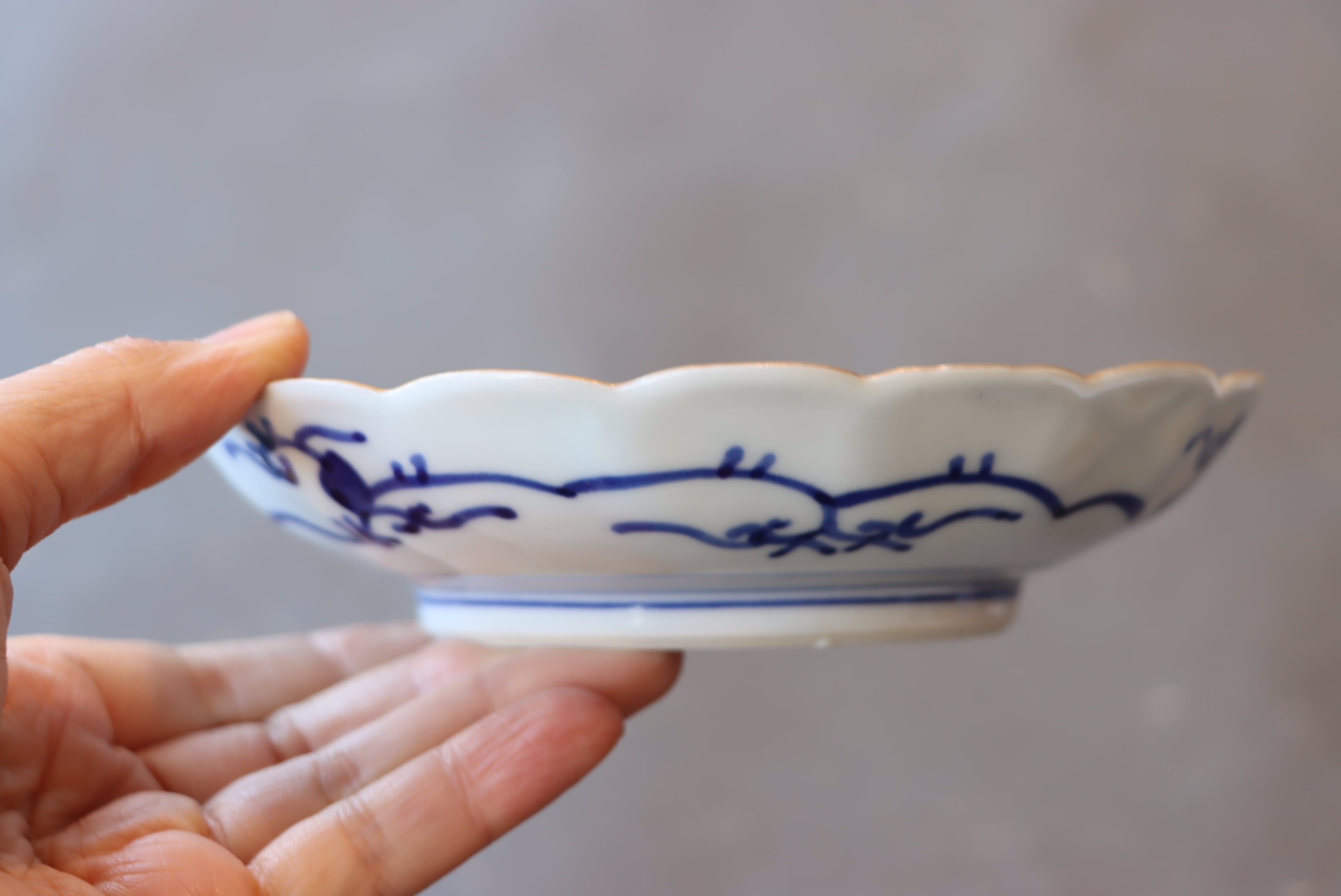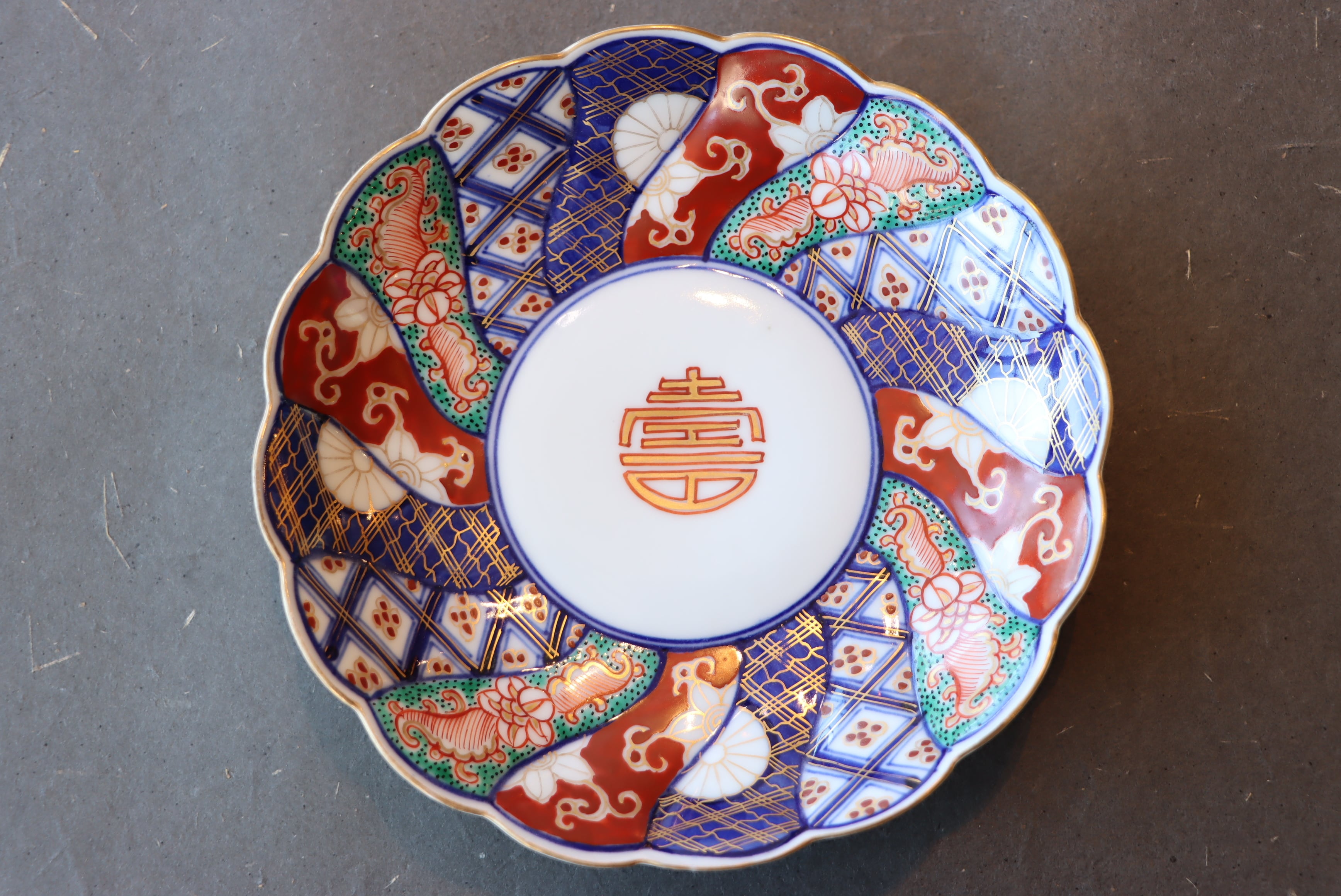 大聖寺伊万里 色絵 捻り壽文 輪花 五寸皿 通りもの/Daisyo-ji Imari medium size plate