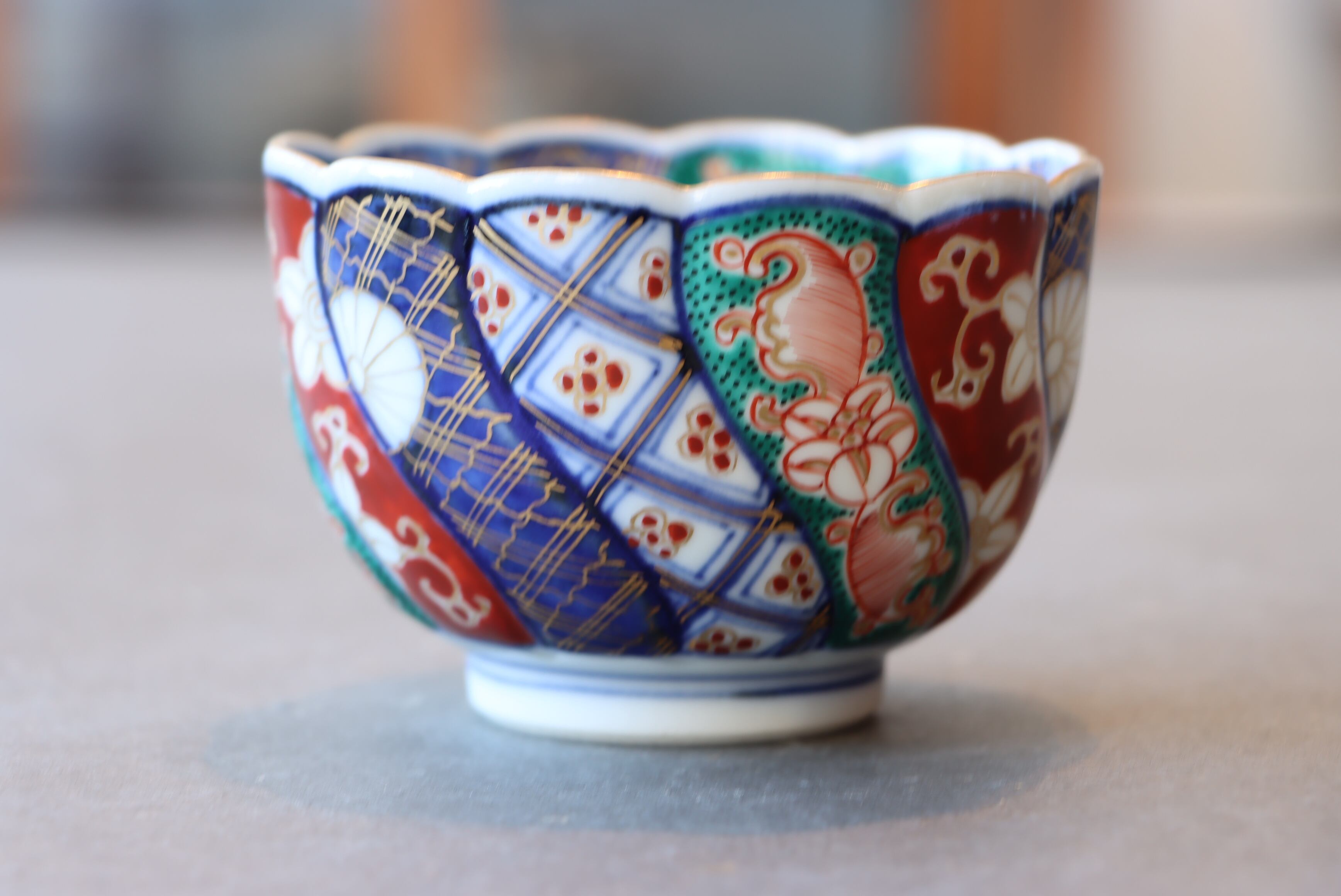 大聖寺伊万里 色絵 捻り壽文 輪花 向付 湯呑 通りもの/Daisyo-ji Imari "Mukouzuke"cup