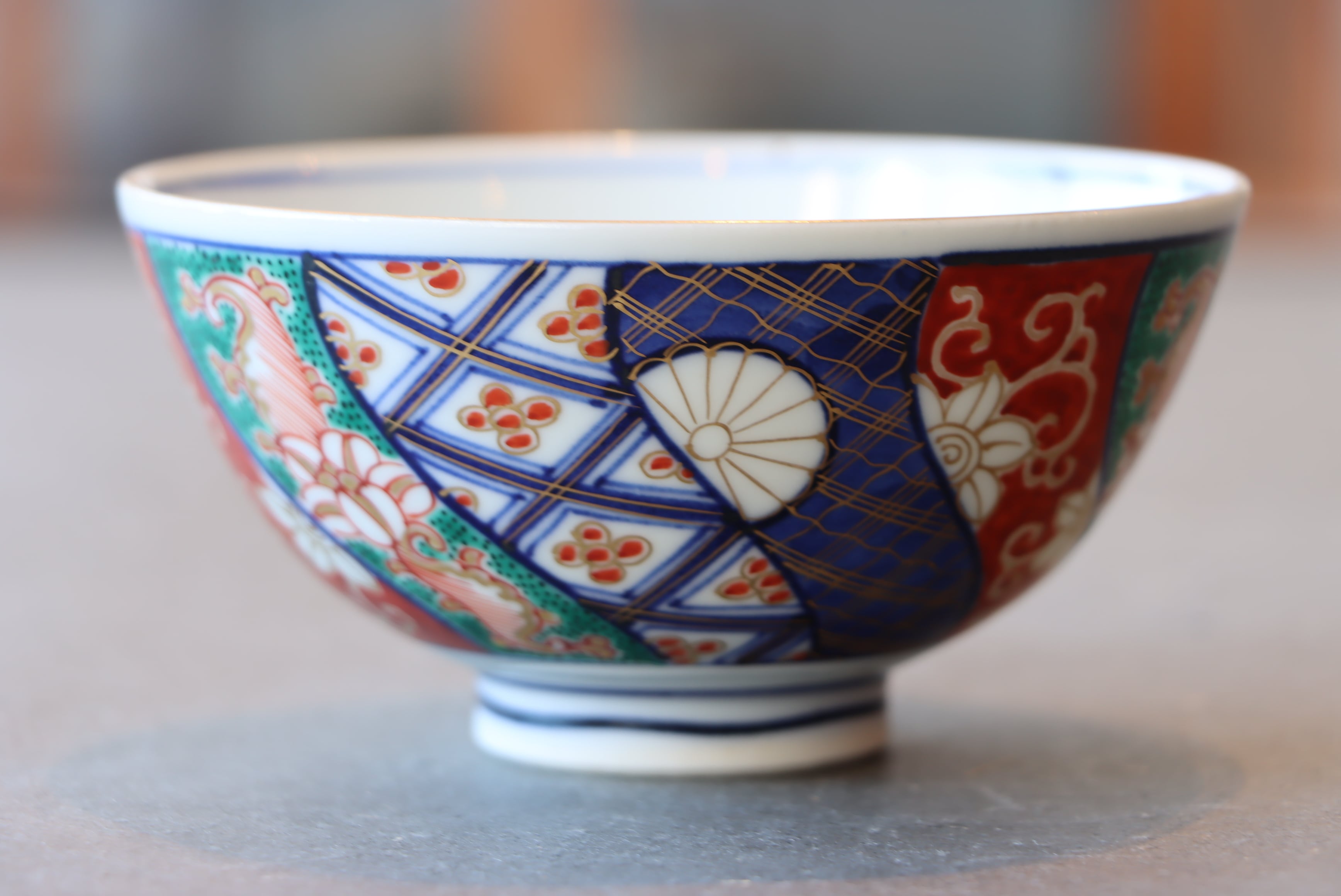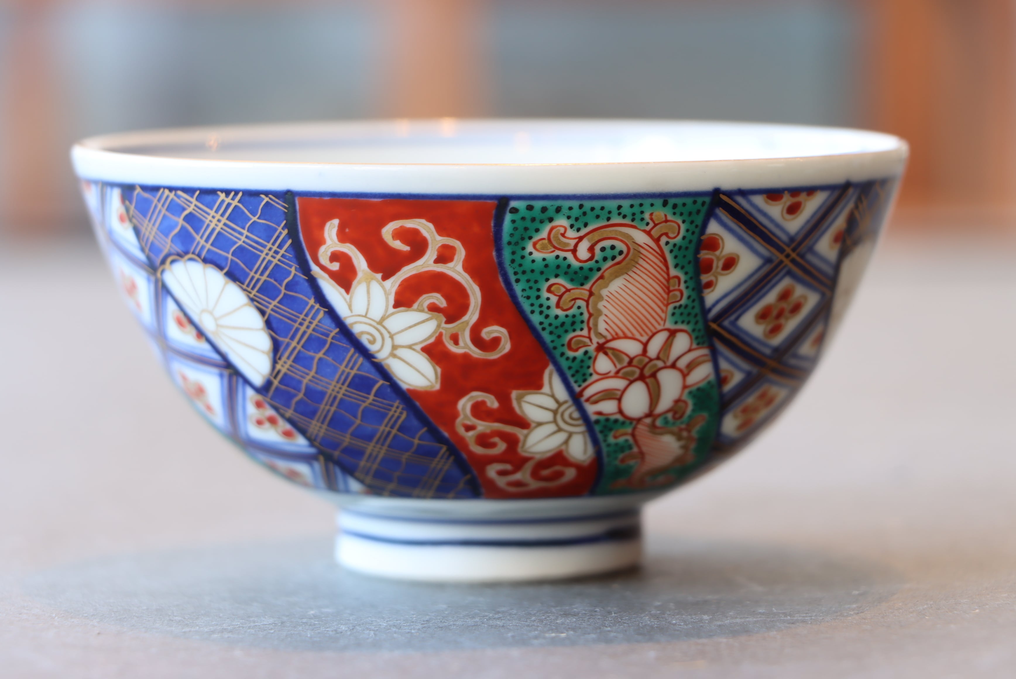 大聖寺伊万里 色絵 捻り壽文 蓋茶碗 通りもの/Daisho-ji Imari covered bowl
