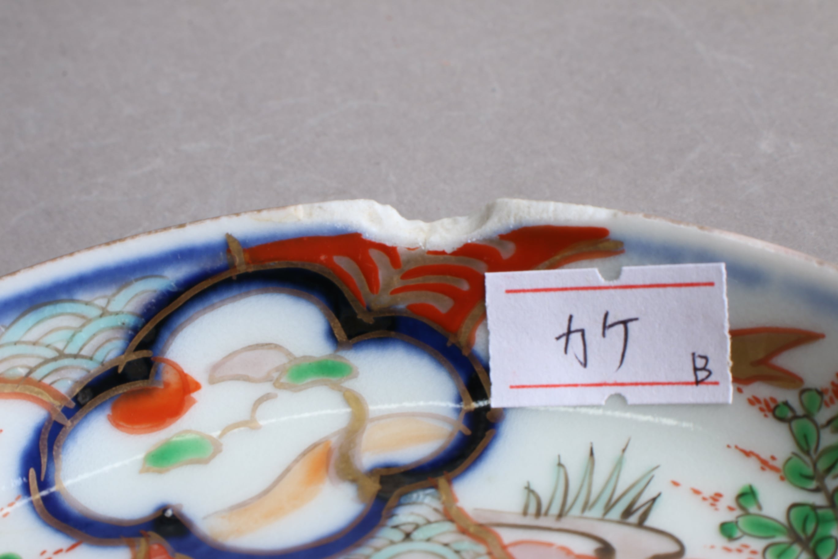 焼成時に窯の中でできる鉄分、くっつき、かまきず、ピンホール、経年による釉薬の薄れがございます。また、一枚一枚手描き、手作りですので器のサイズ(ミリ)、色味、描かれている文様の大きさなど個体差があり、ひとつとして同じものはございません。そういった時代感、個性をご理解いただき、楽しんでくだされば幸いです。電子レンジや食器洗い乾燥機のご使用はお控えください。