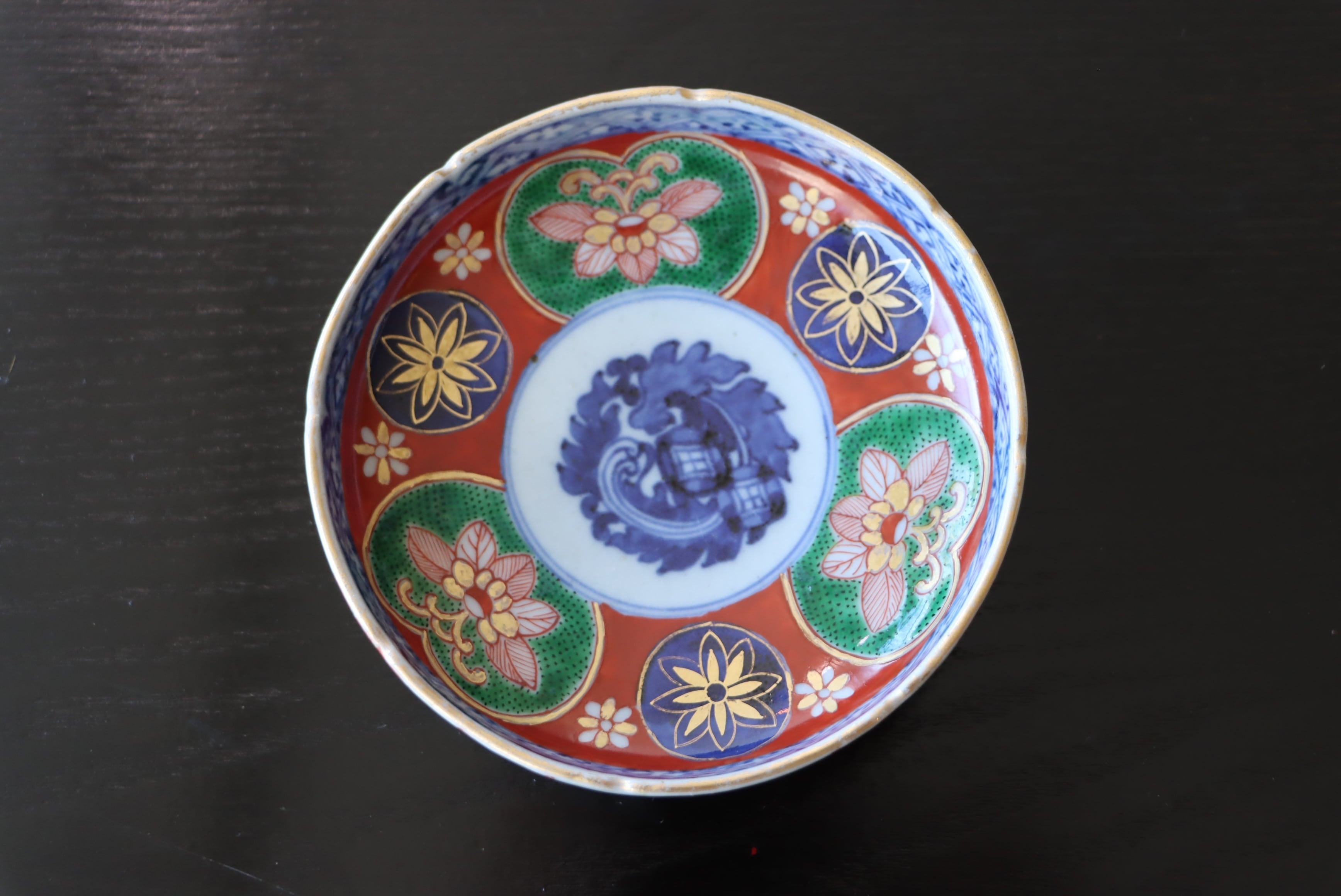 伊万里焼 色絵 花七宝瓔珞文 小皿/Imari small plate
