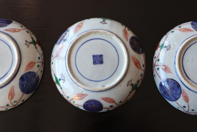 状態:焼成時に窯の中でできる鉄分、くっつき、かまきず、ピンホール、経年による釉薬の薄れがございます。また、一枚一枚手描き、手作りですので器のサイズ(ミリ)、色味、描かれている文様の大きさなど個体差があり、ひとつとして同じものはございません。そういった時代感、個性をご理解いただき、楽しんでくだされば幸いです。電子レンジや食器洗い乾燥機のご使用はお控えください。