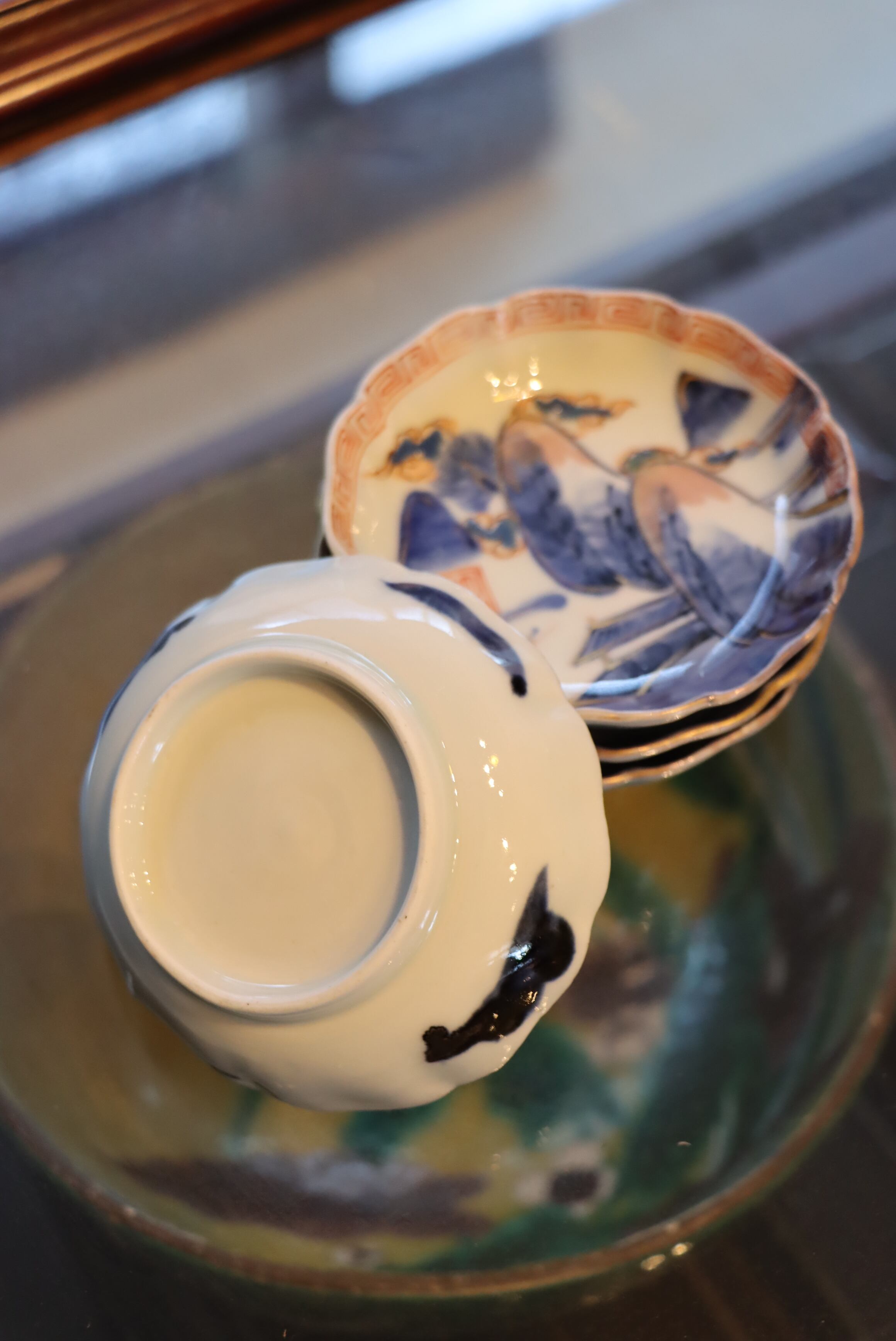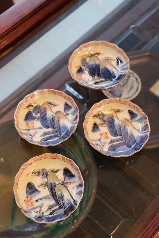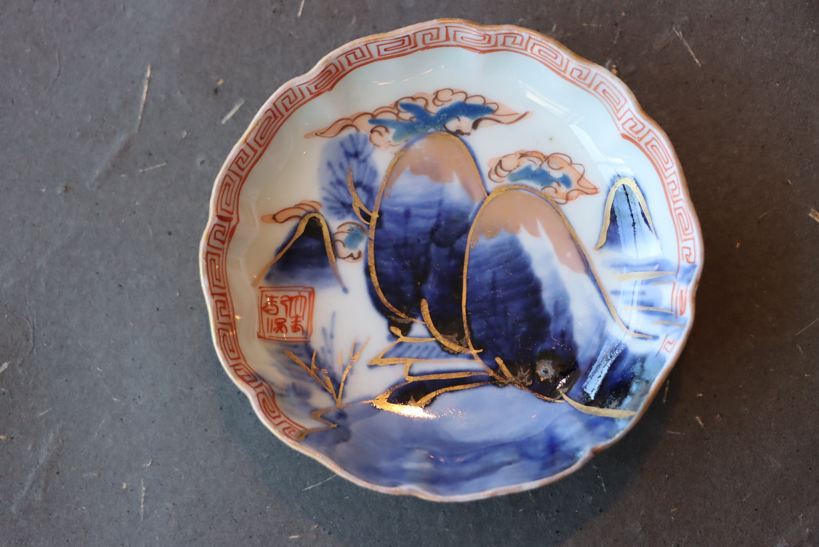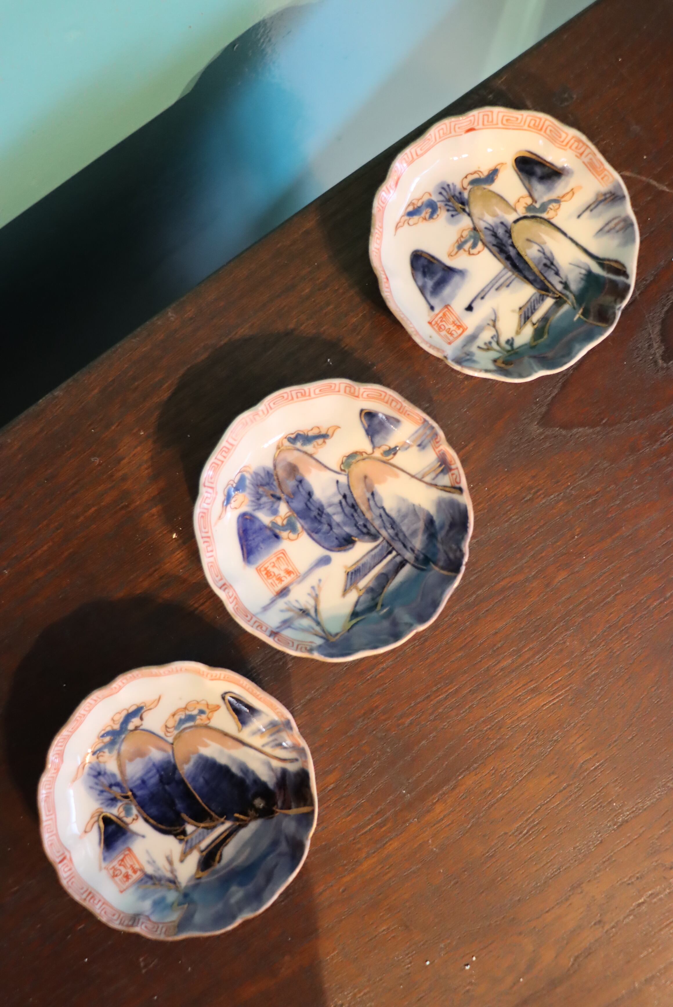 【Imari small plate less than 10cm with landscape design in overglaze enamels.】