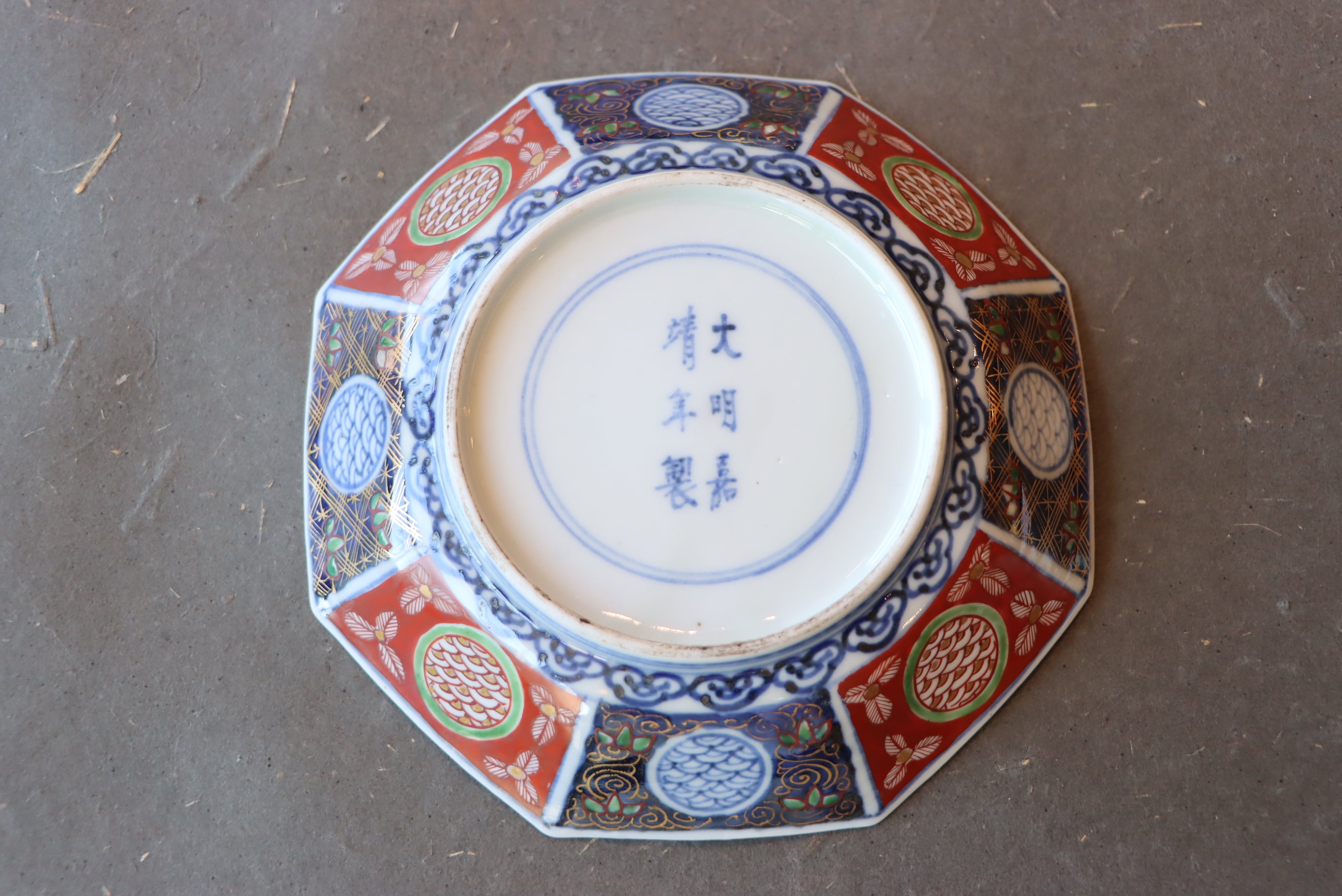 【Daisho-ji Imari octagonal plate with phoenix design in overglaze enamels.】
