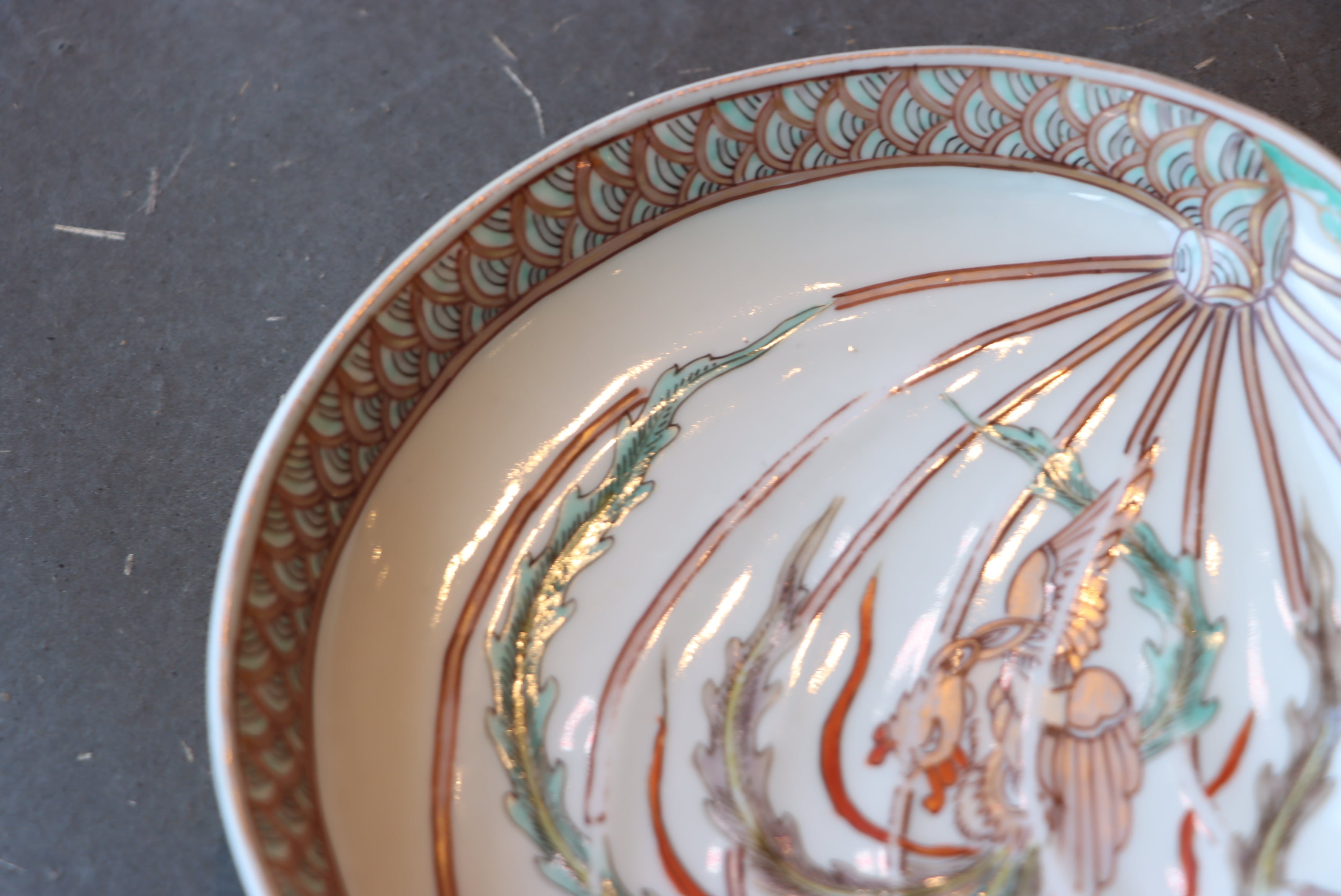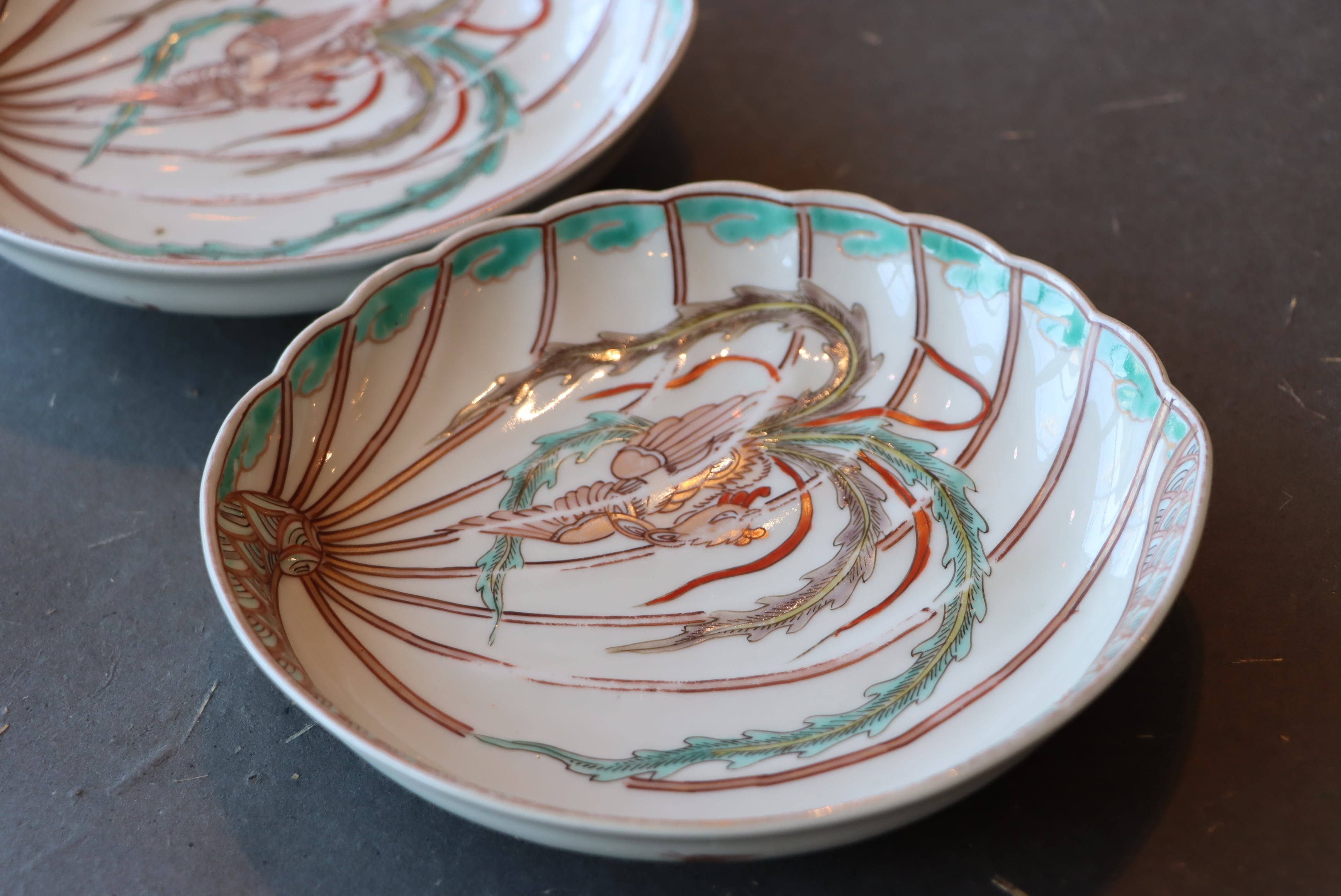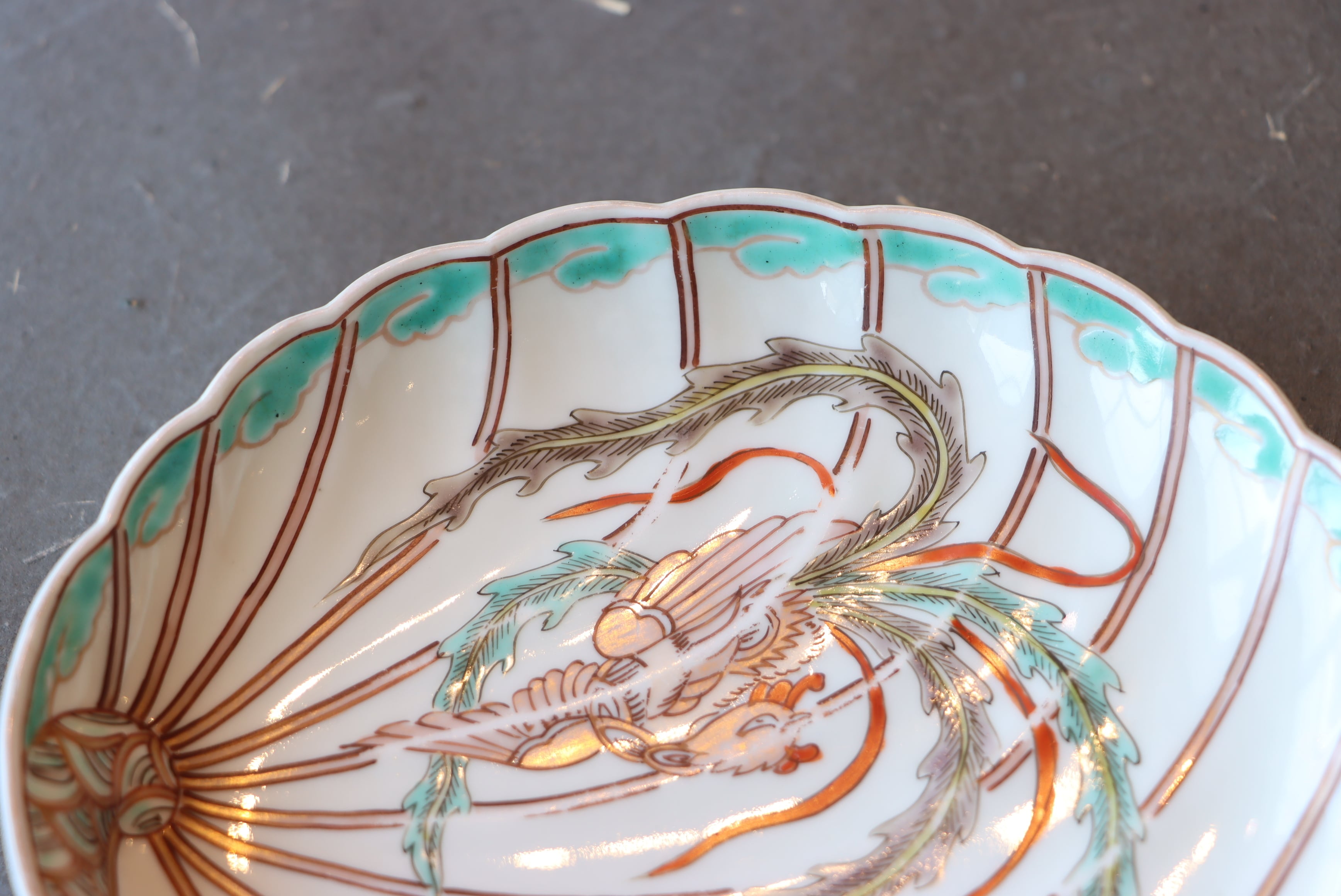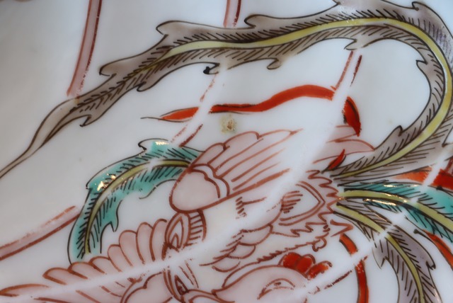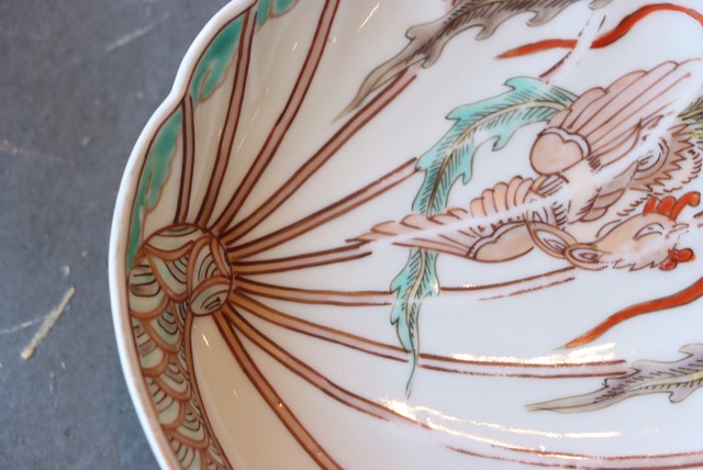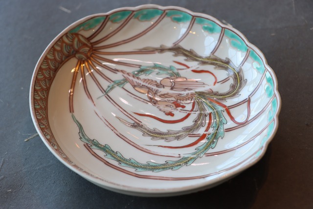 伊万里焼 色絵 鳳凰文 鮑形 変形皿/Imari abalone shaped plate