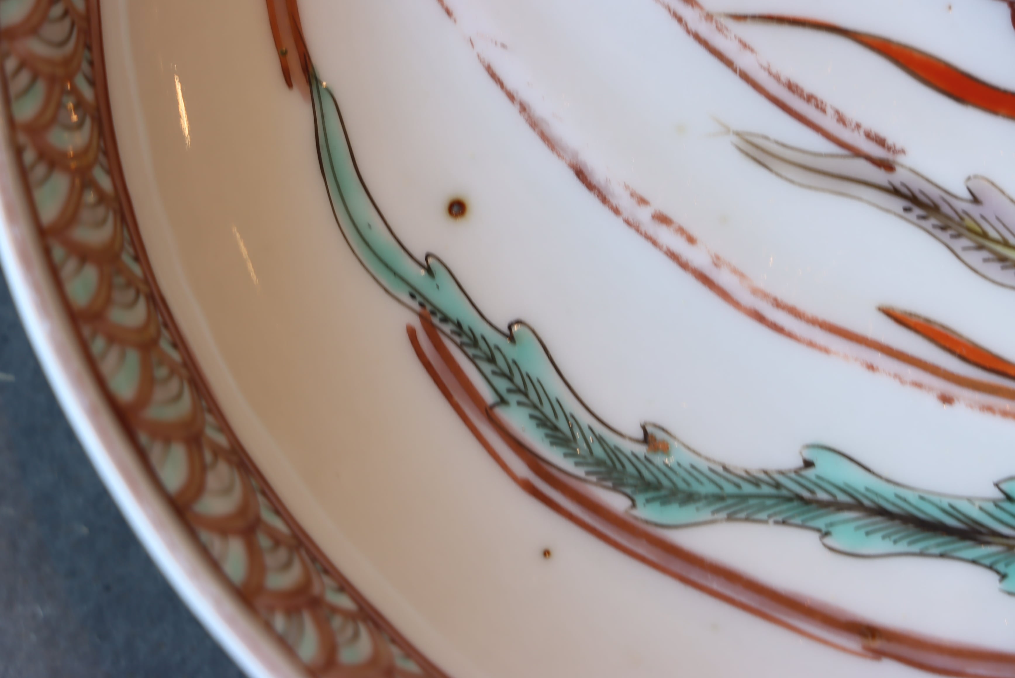 【Imari abalone shaped plate with phoenix design in overglaze enamels.】