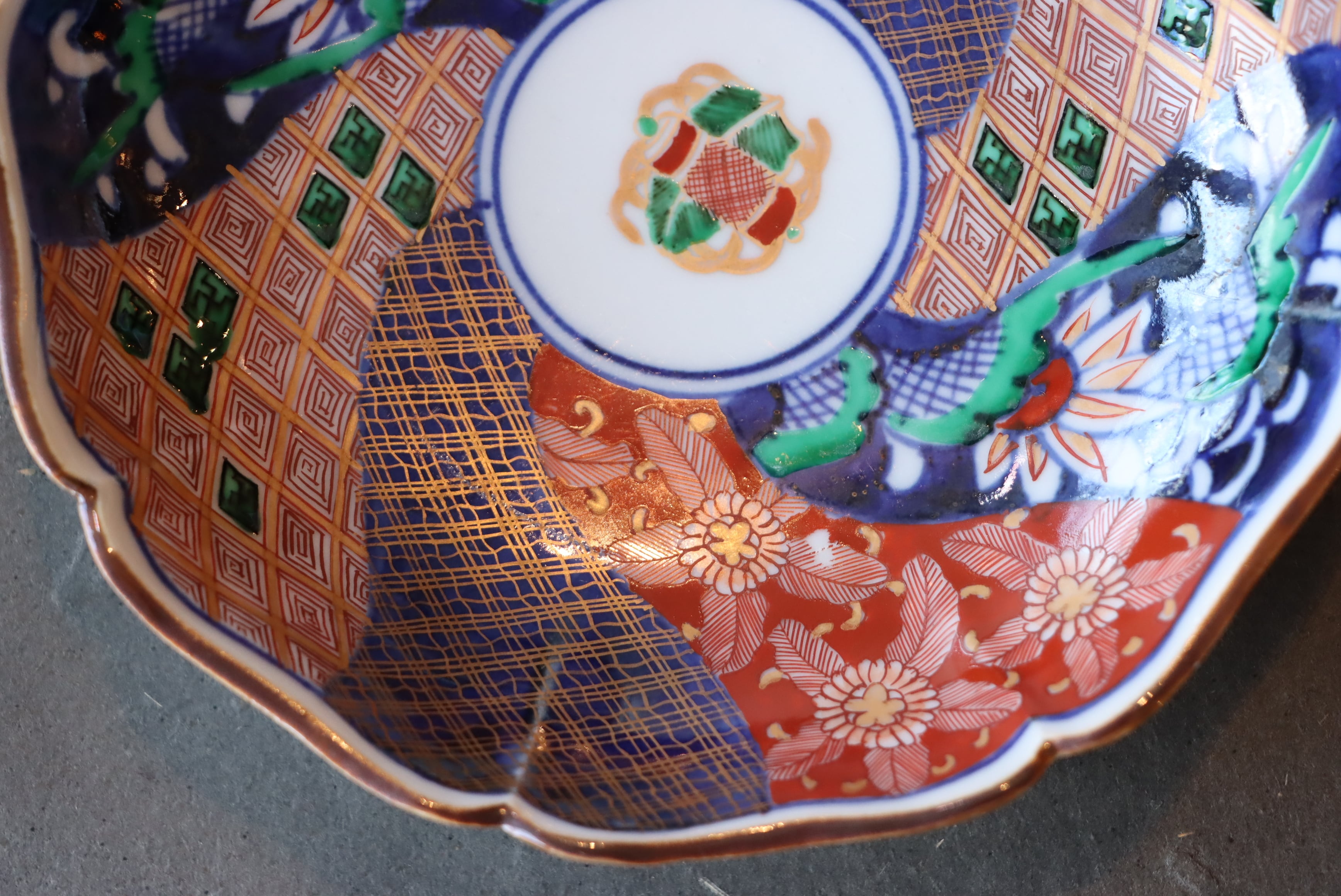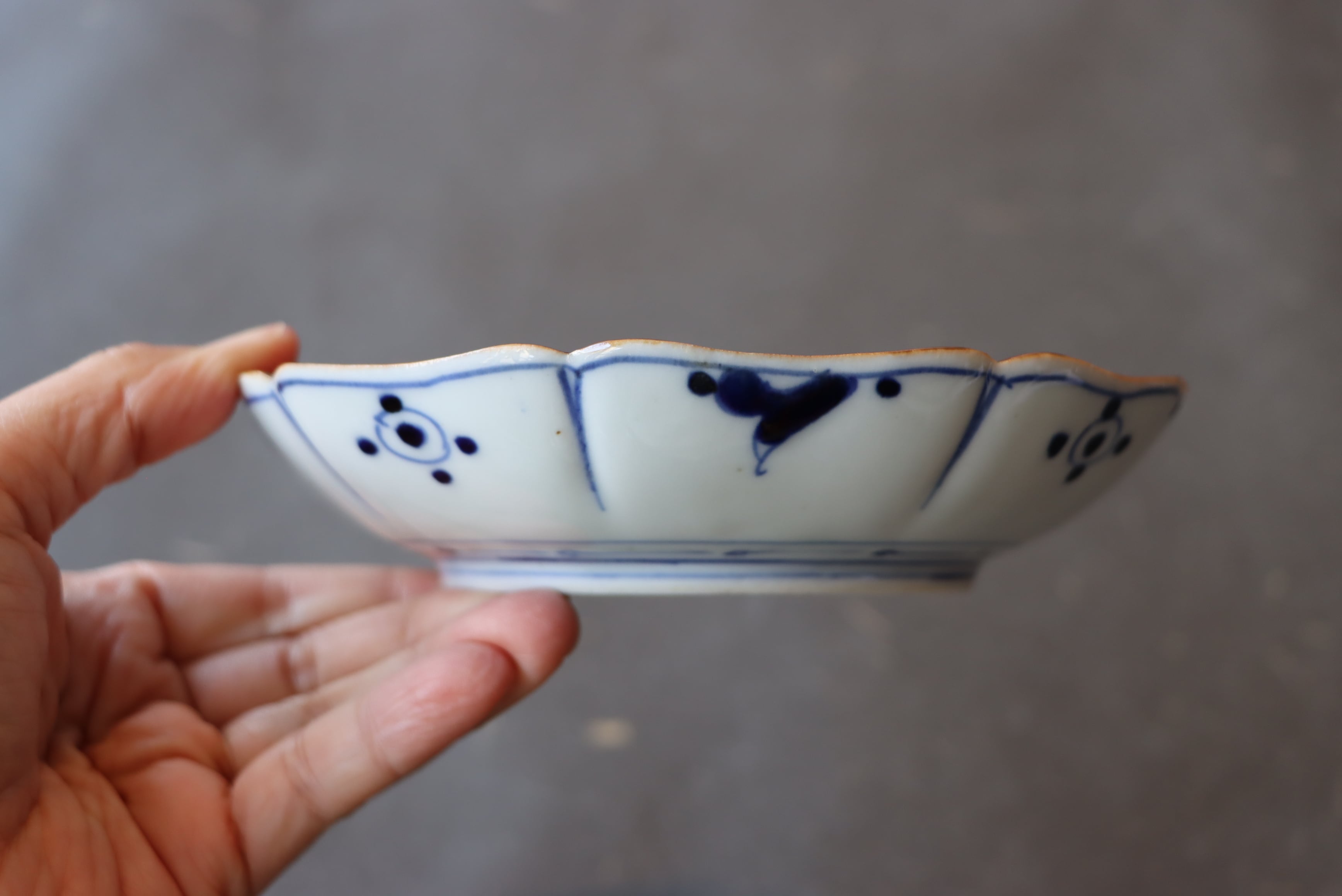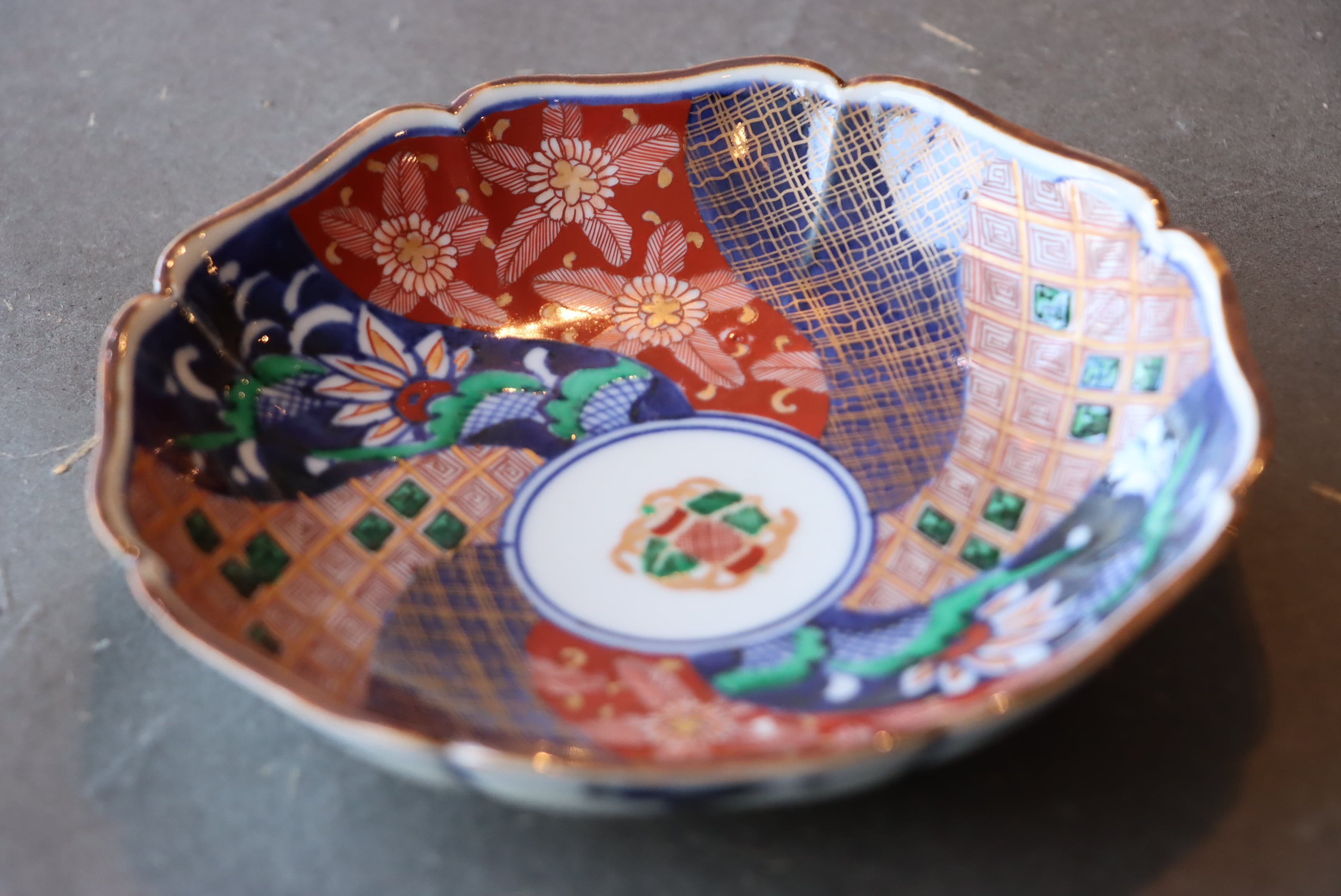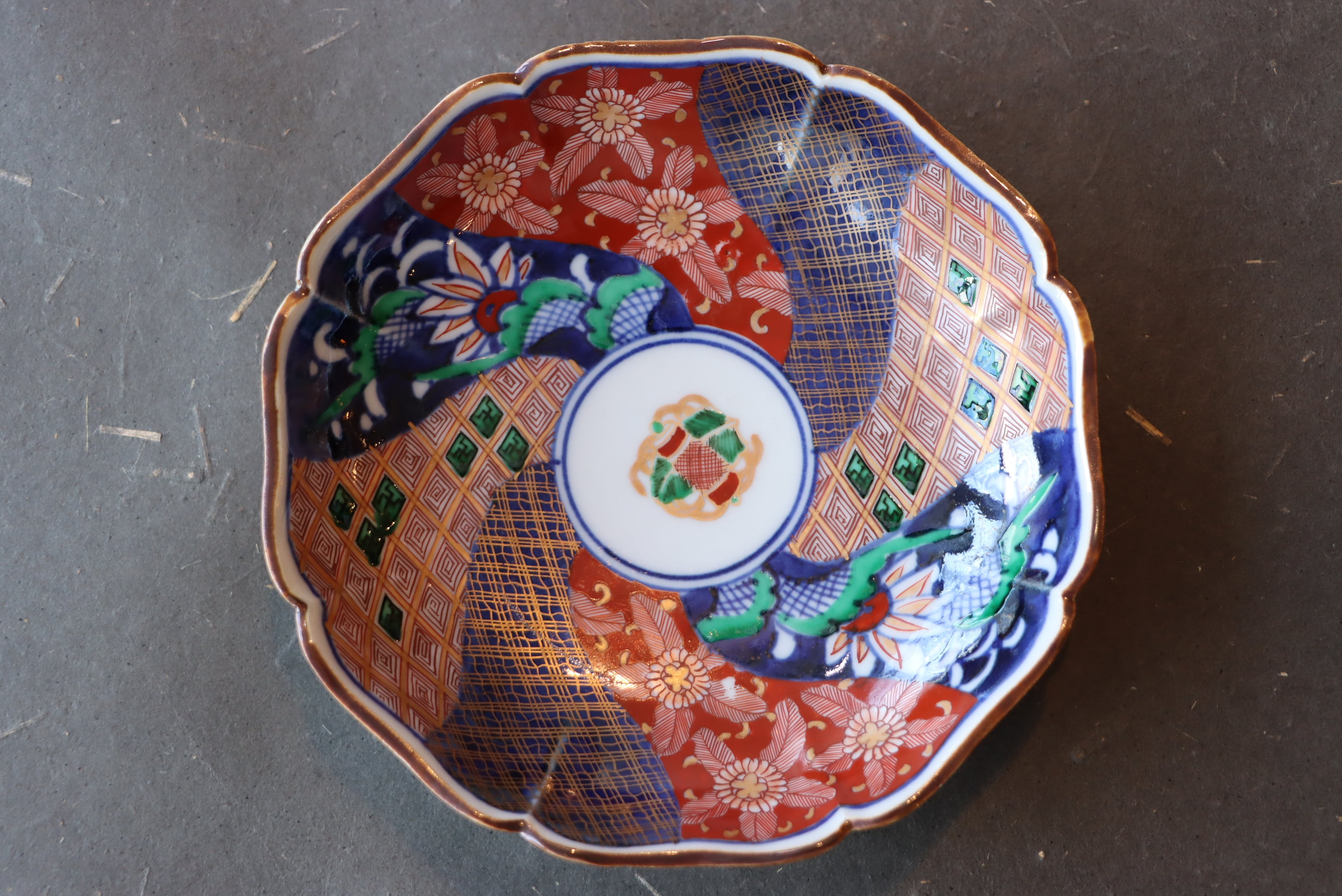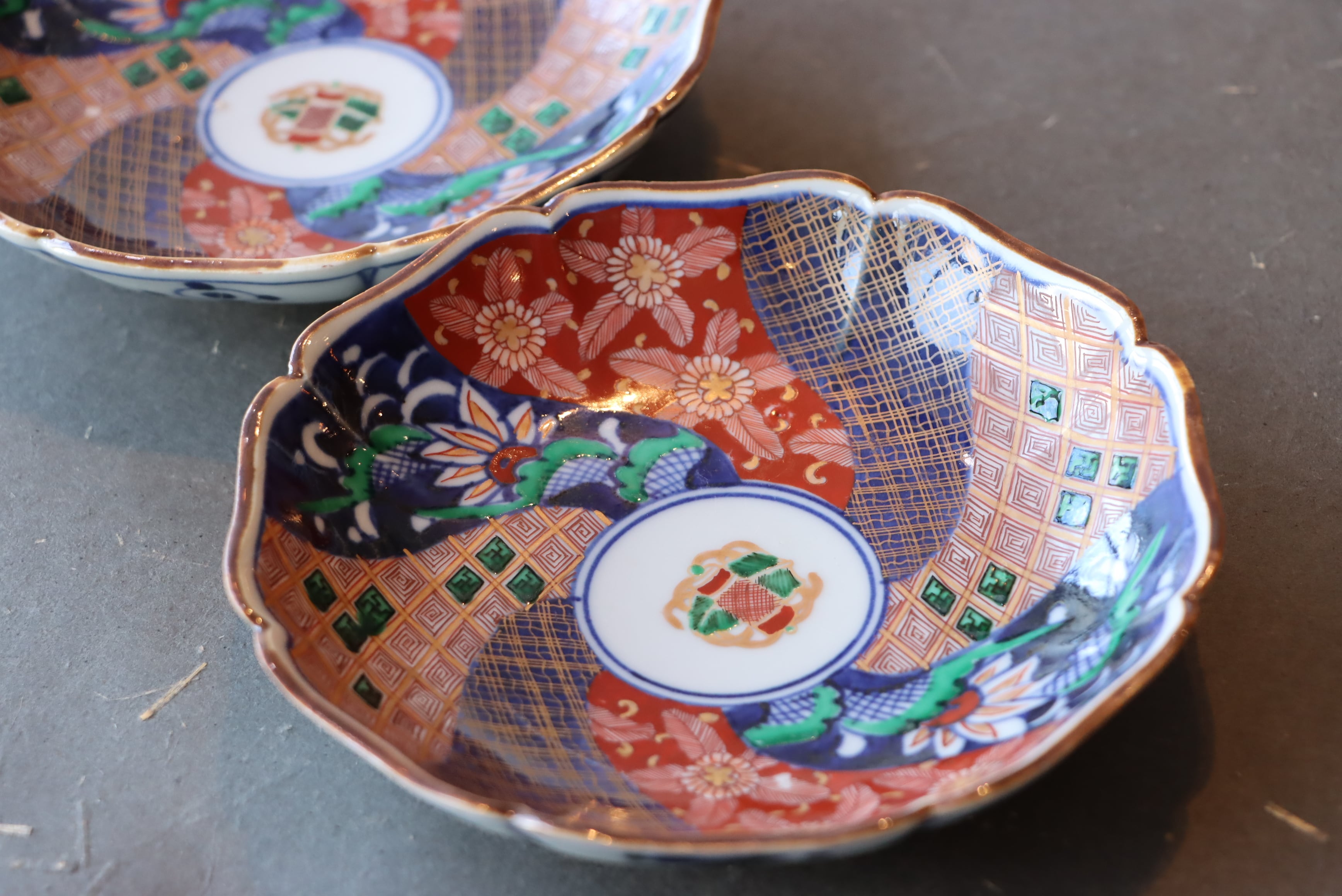【Daisho-ji Imari medium size plate with twist pattern and flower design in overglaze enamels.】