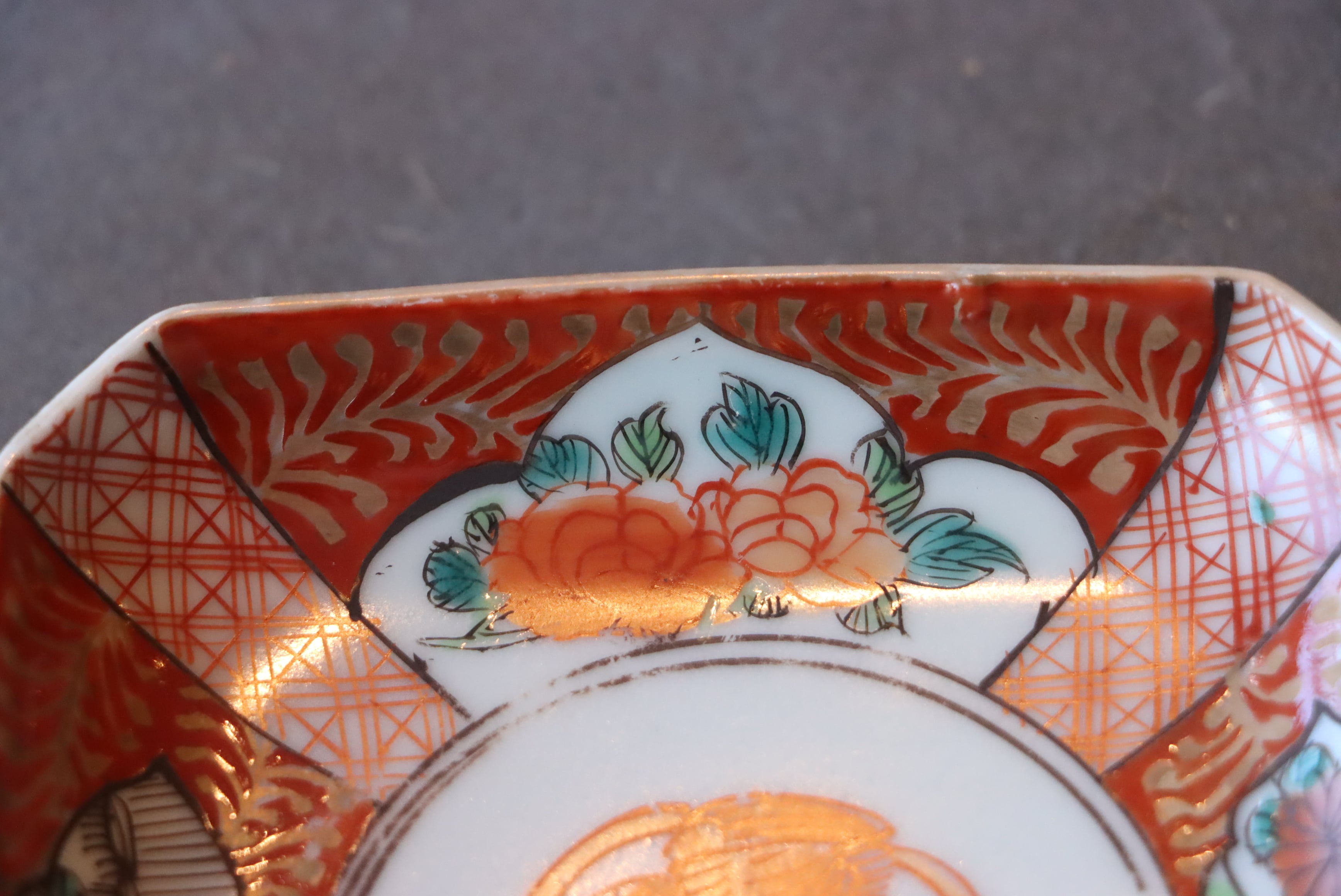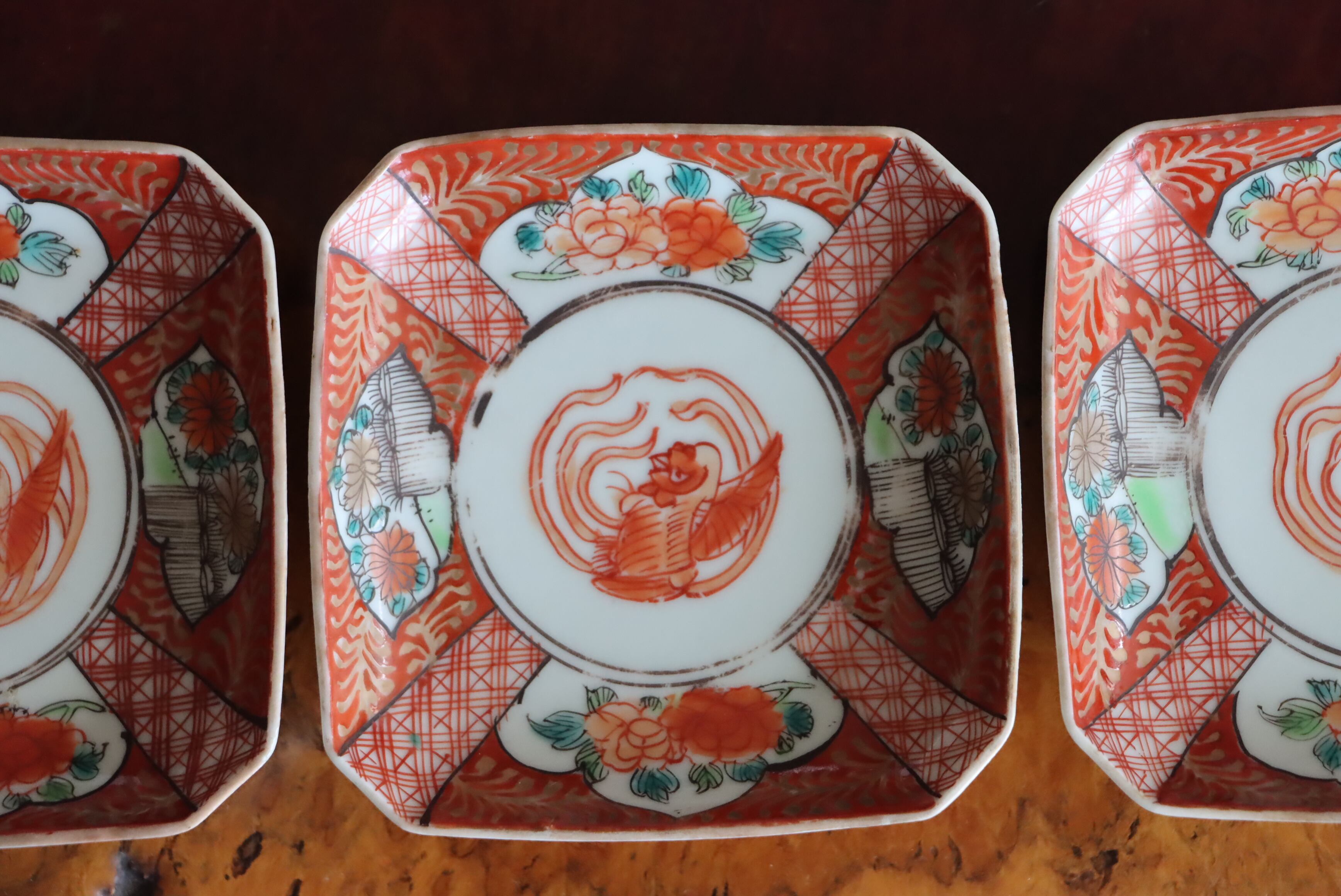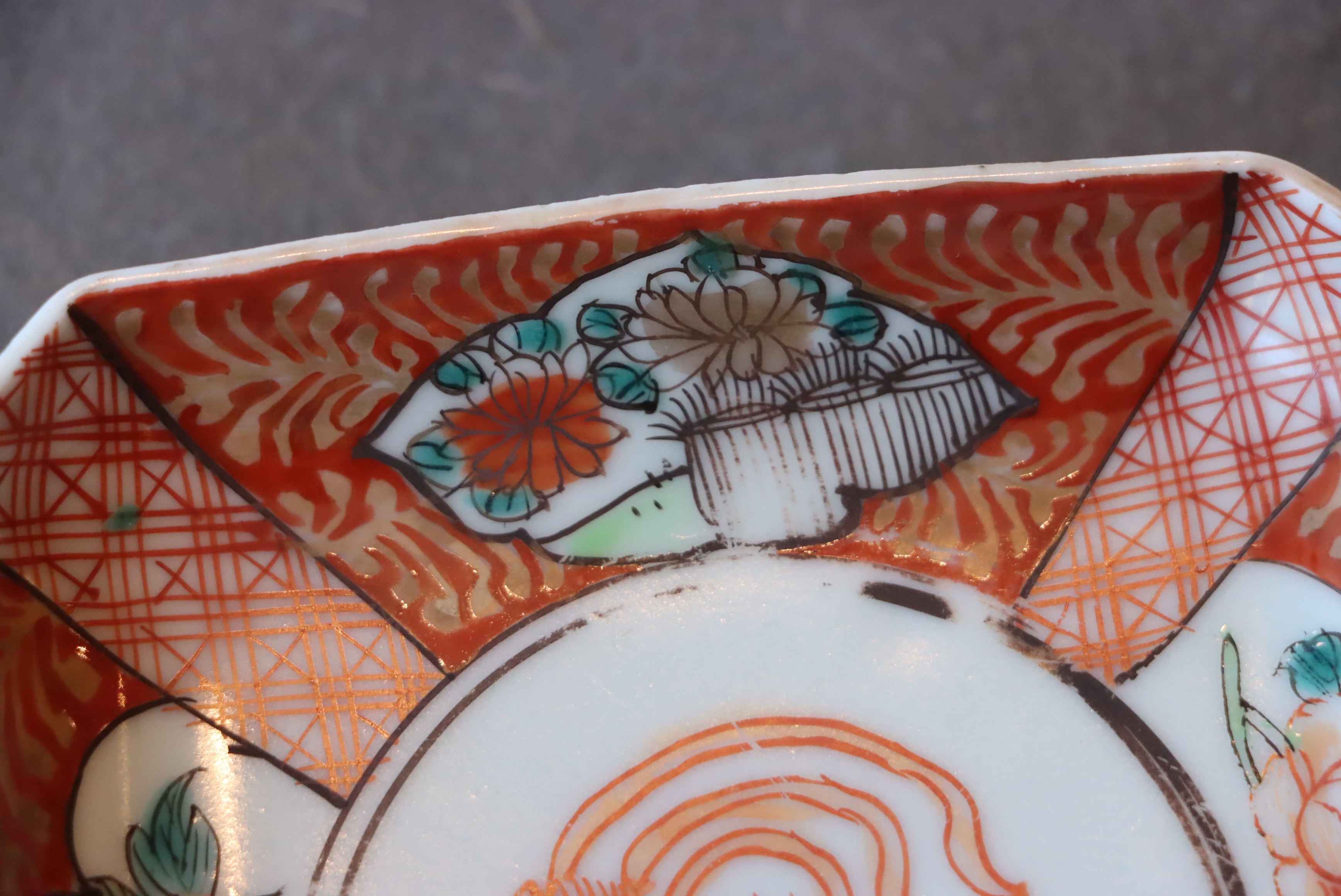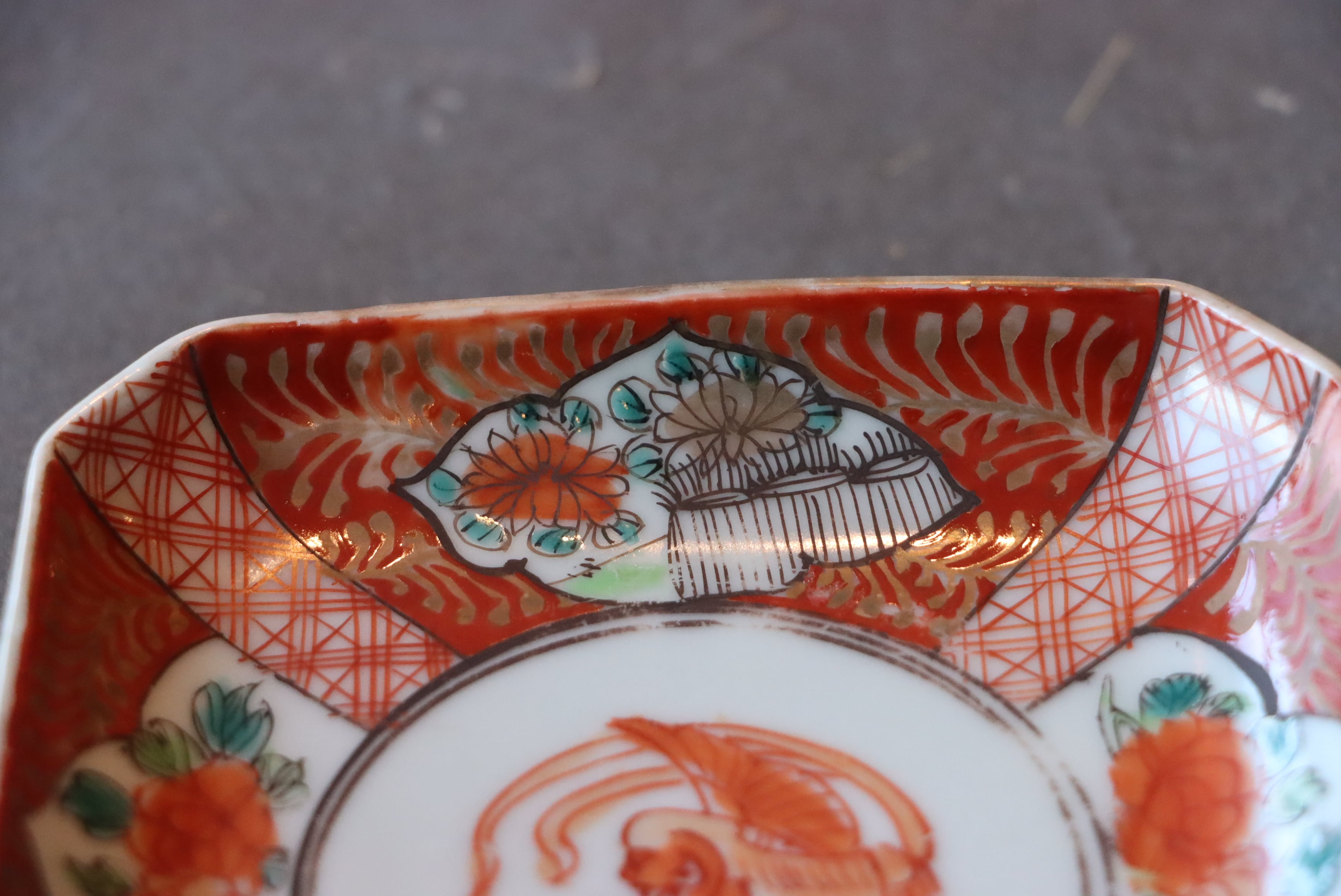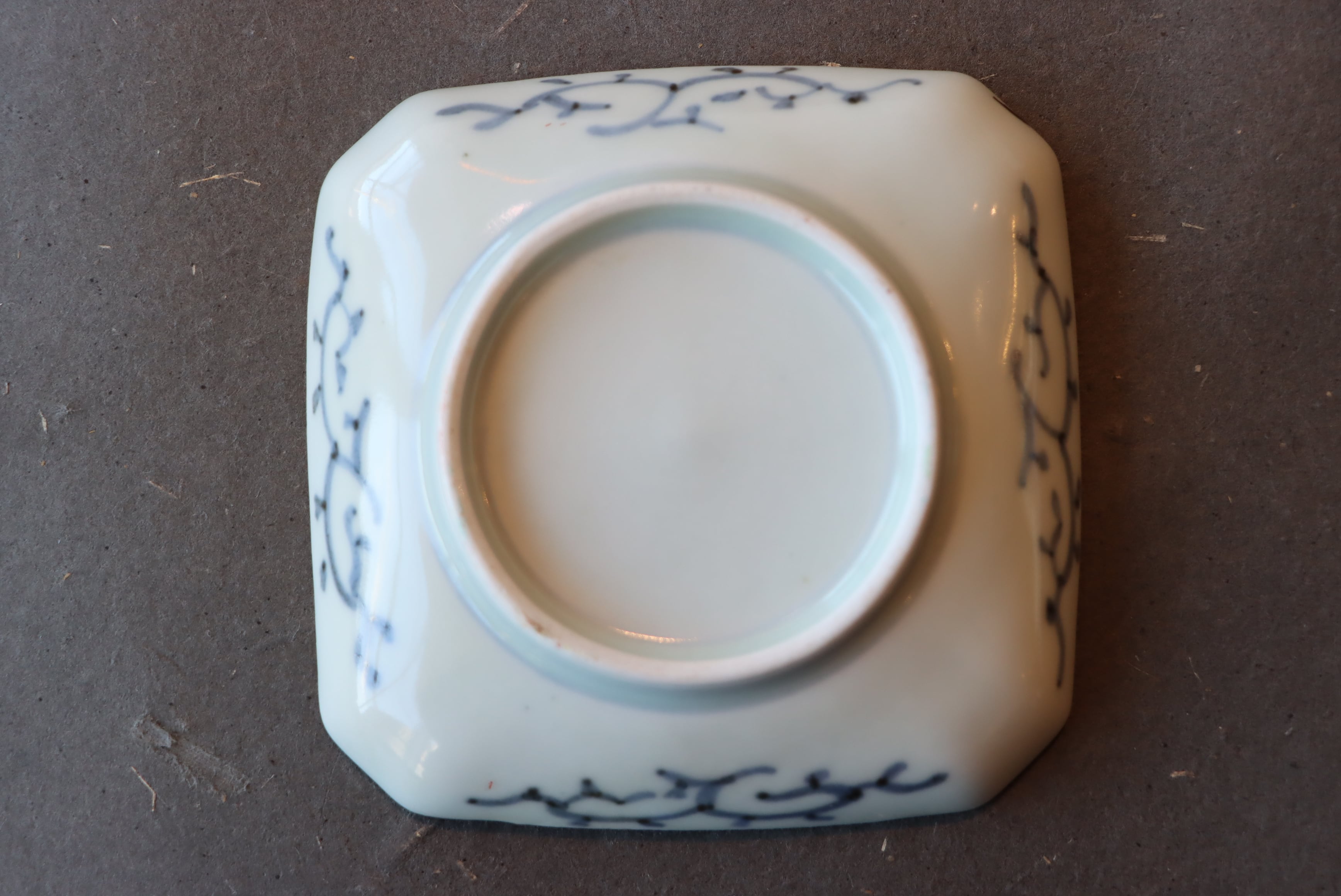 【Imari square shaped small plate with flower and phoenix design in overglaze enamels.】