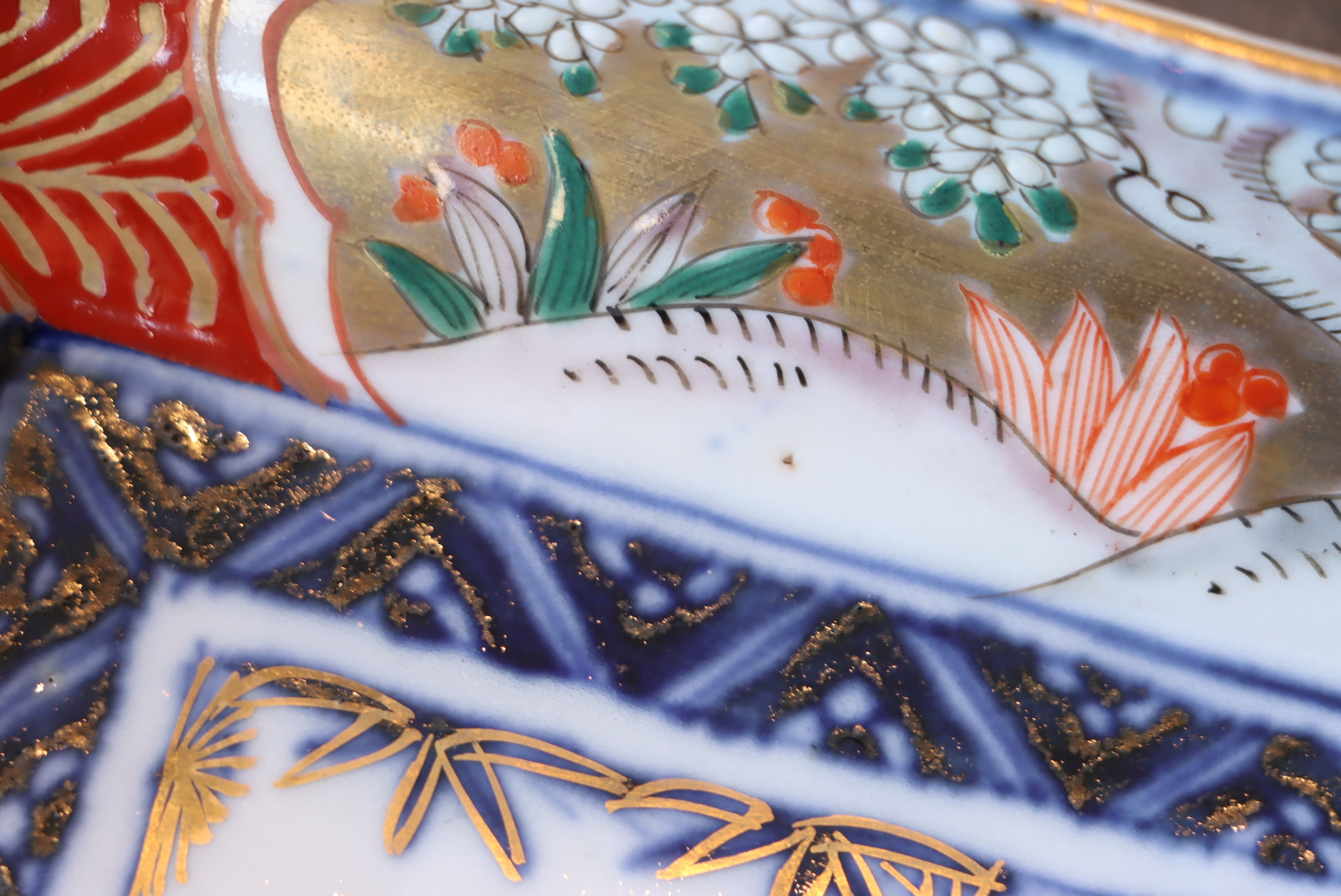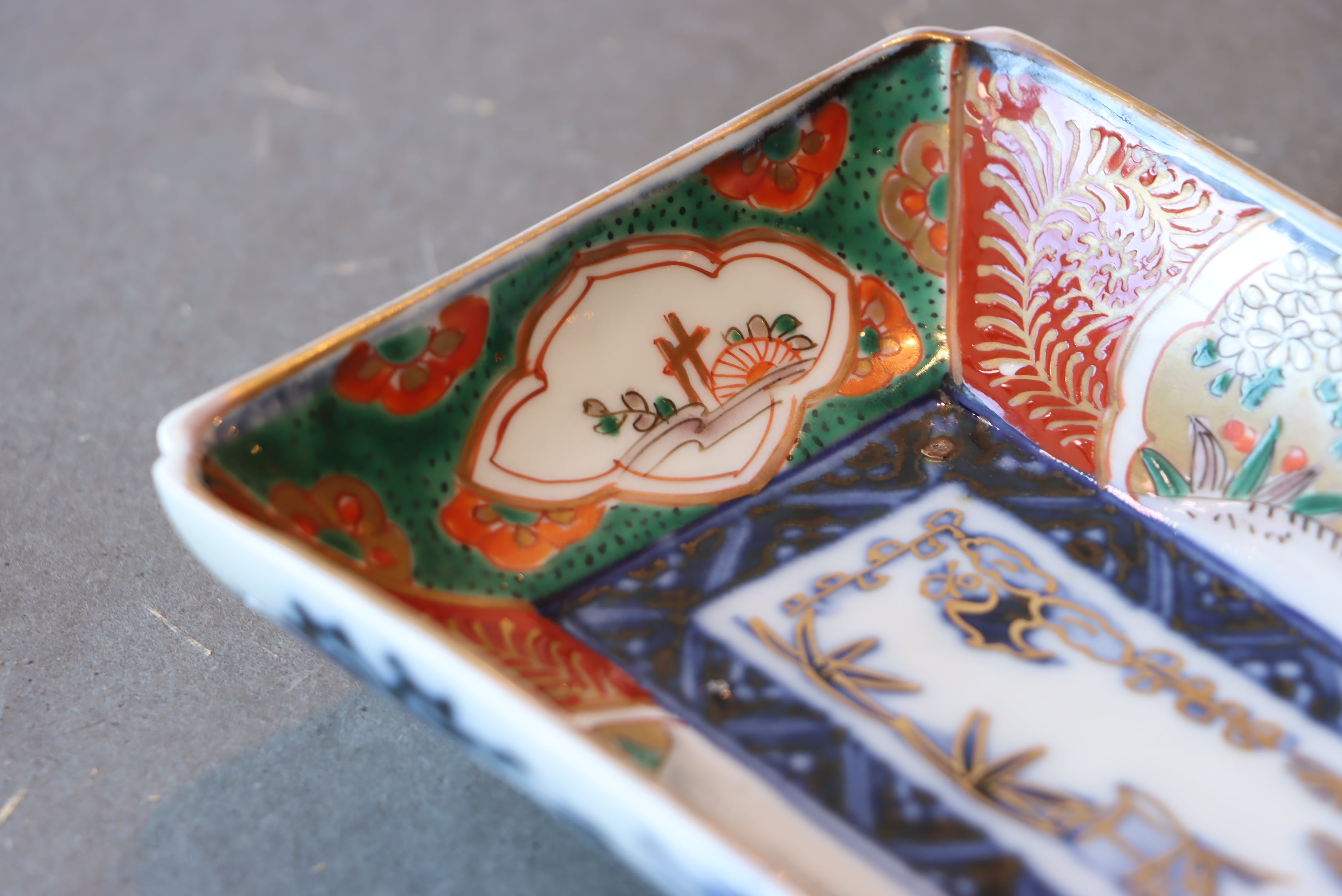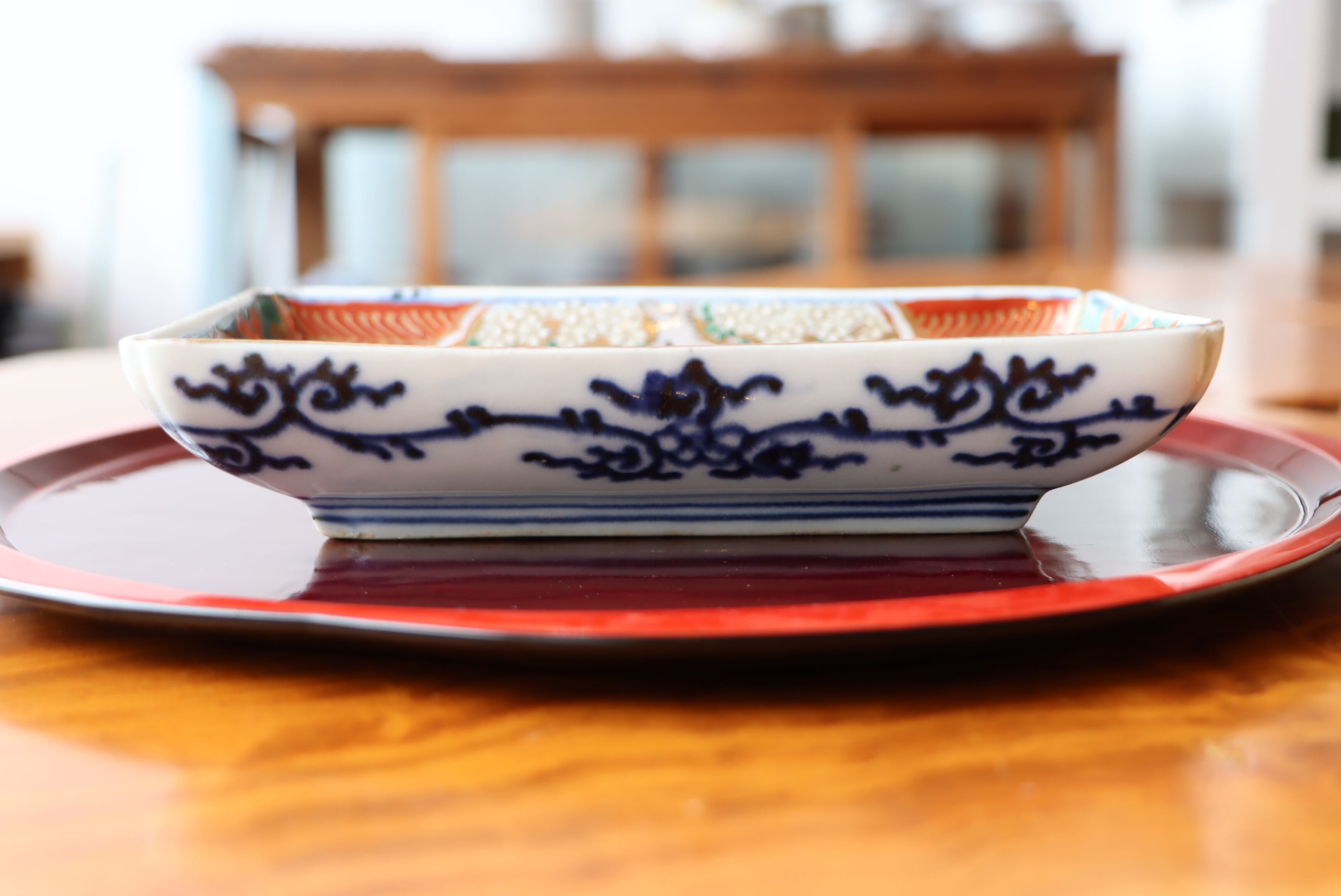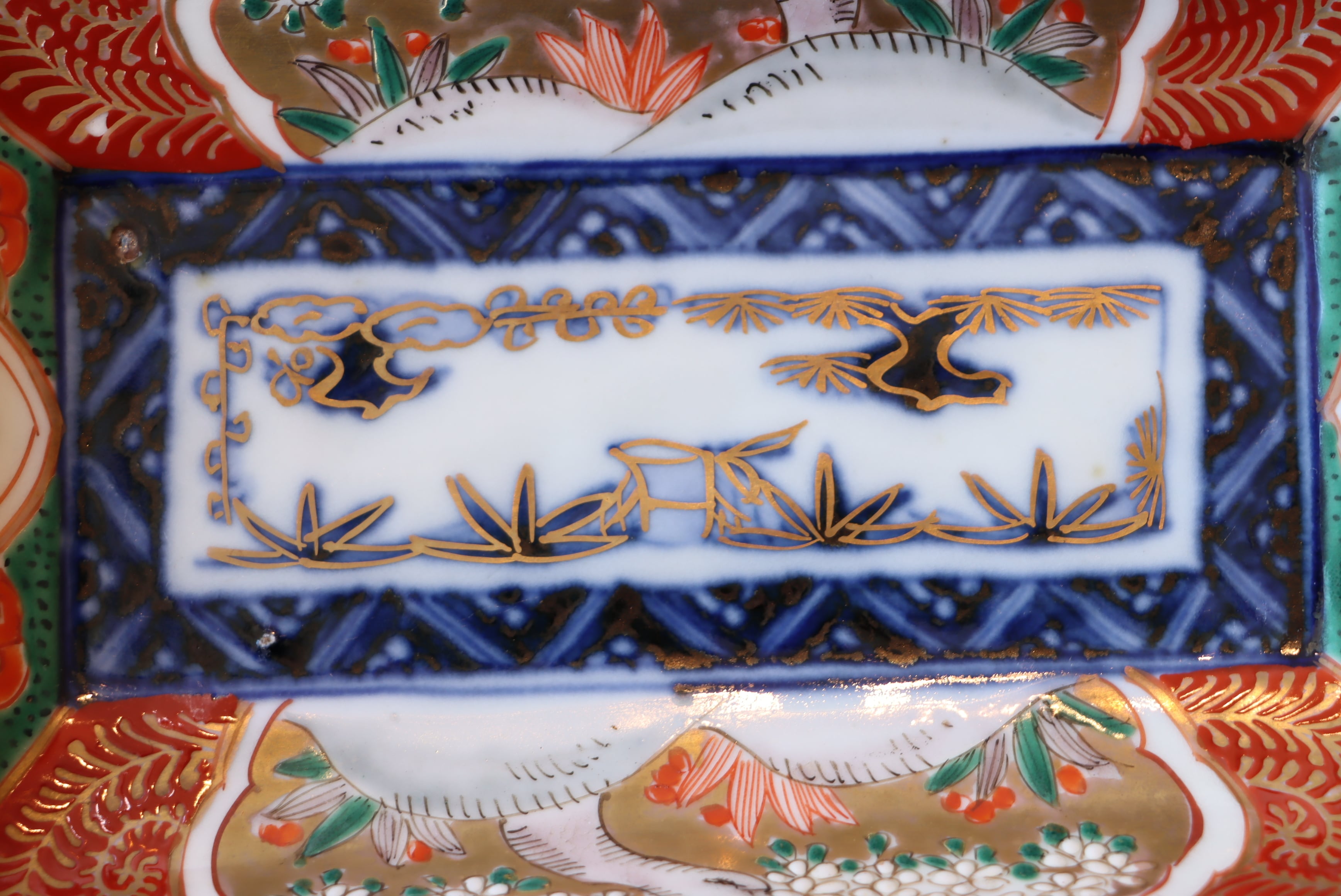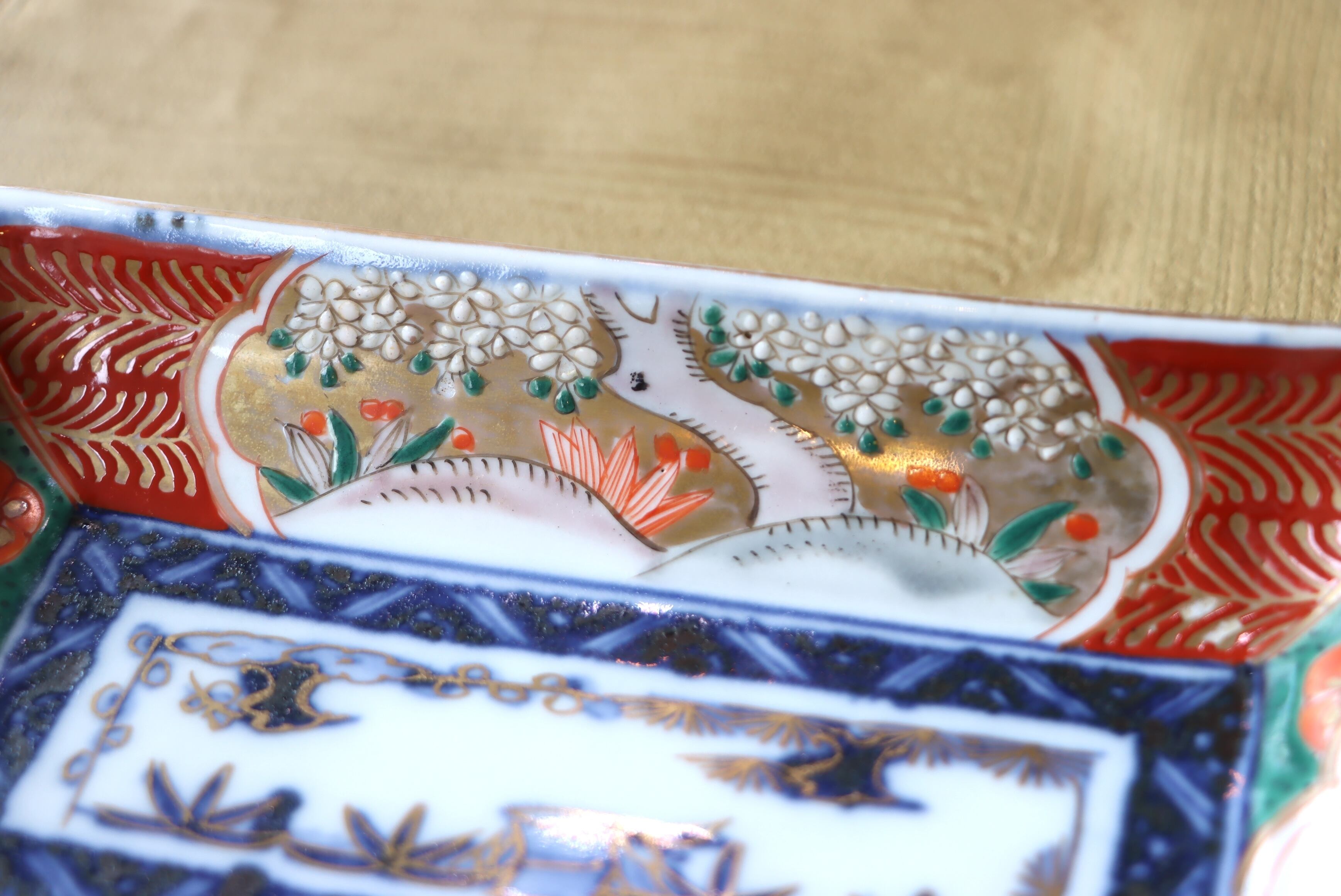 【Imari rectangular plate with flower design in overglaze enamels.】