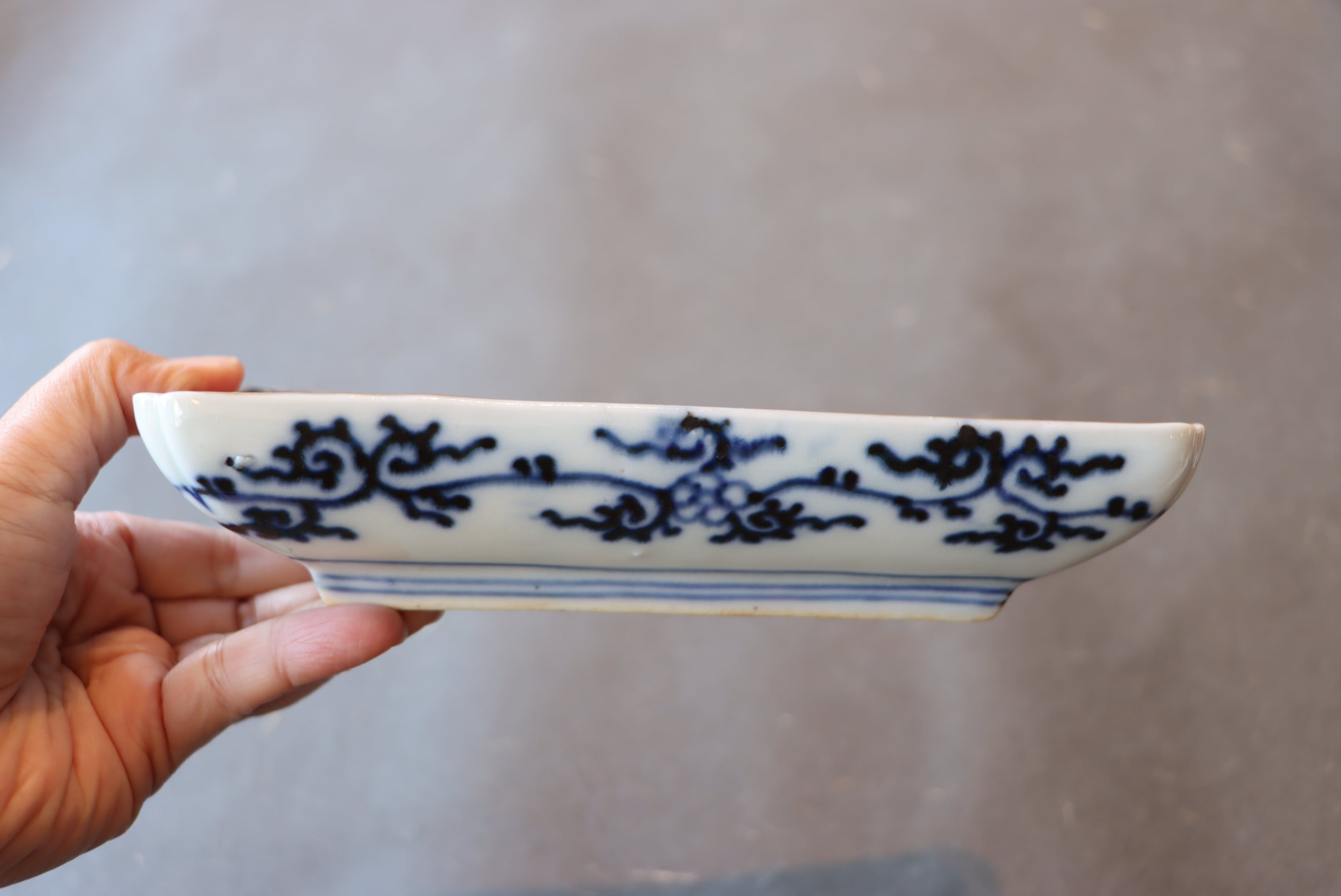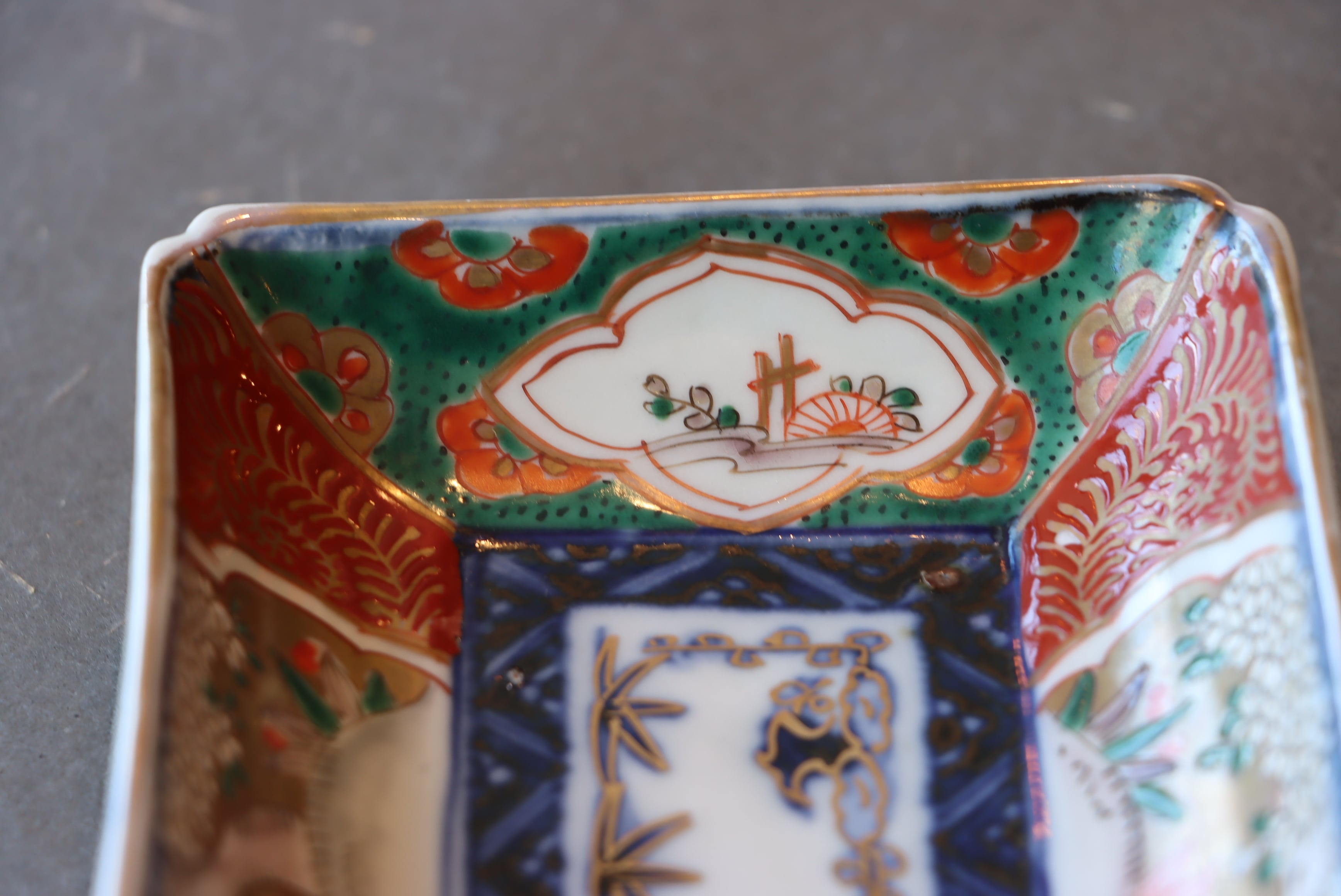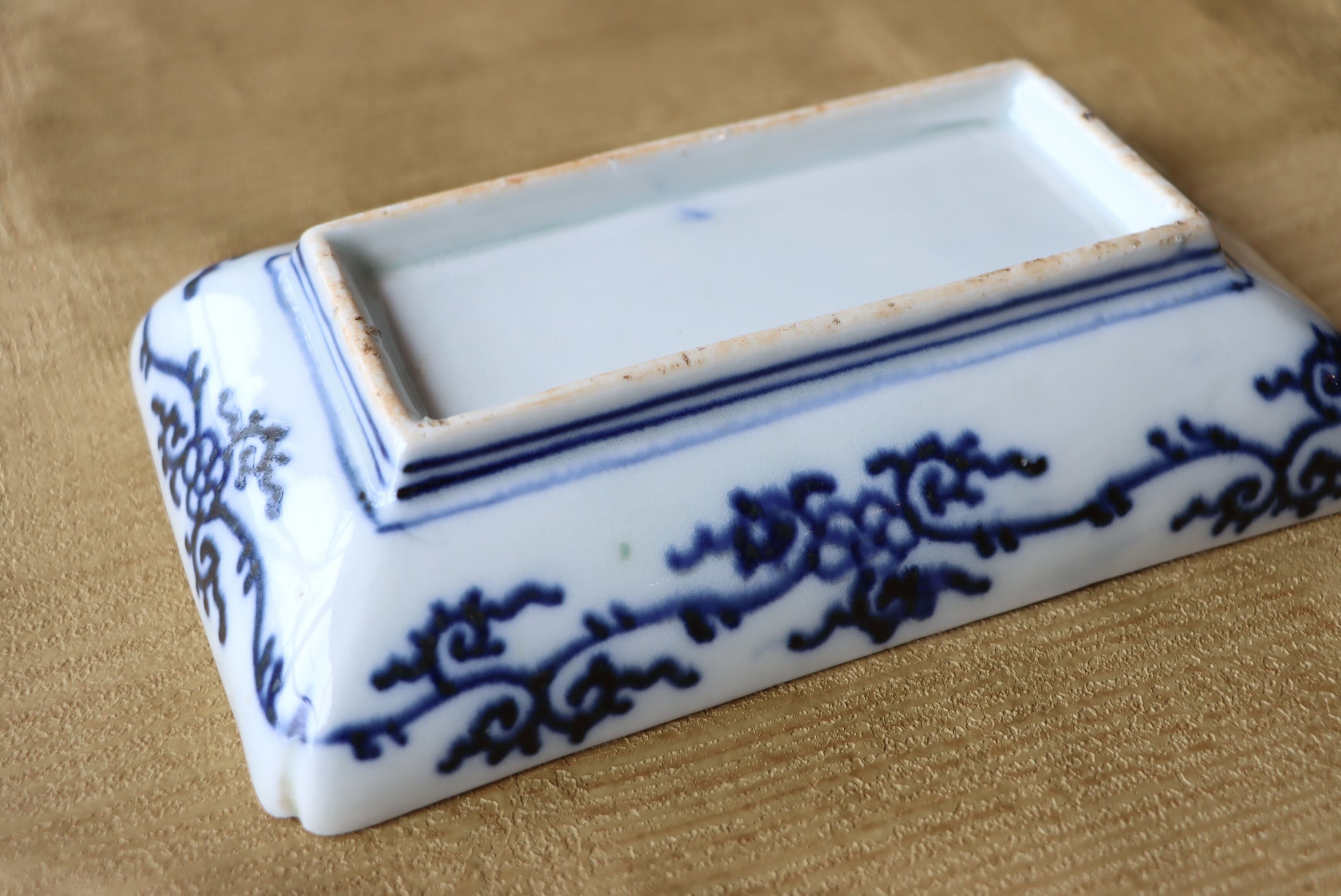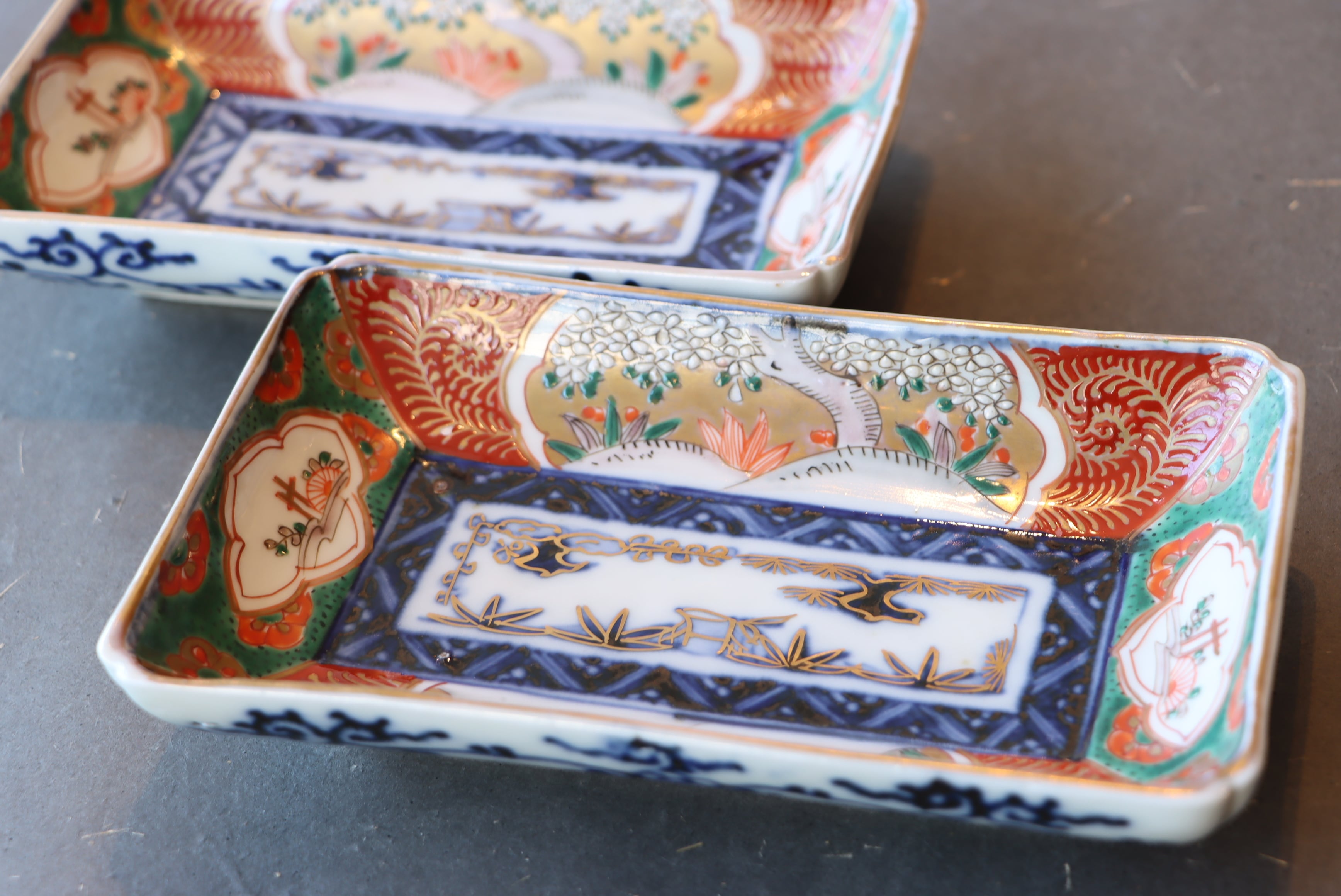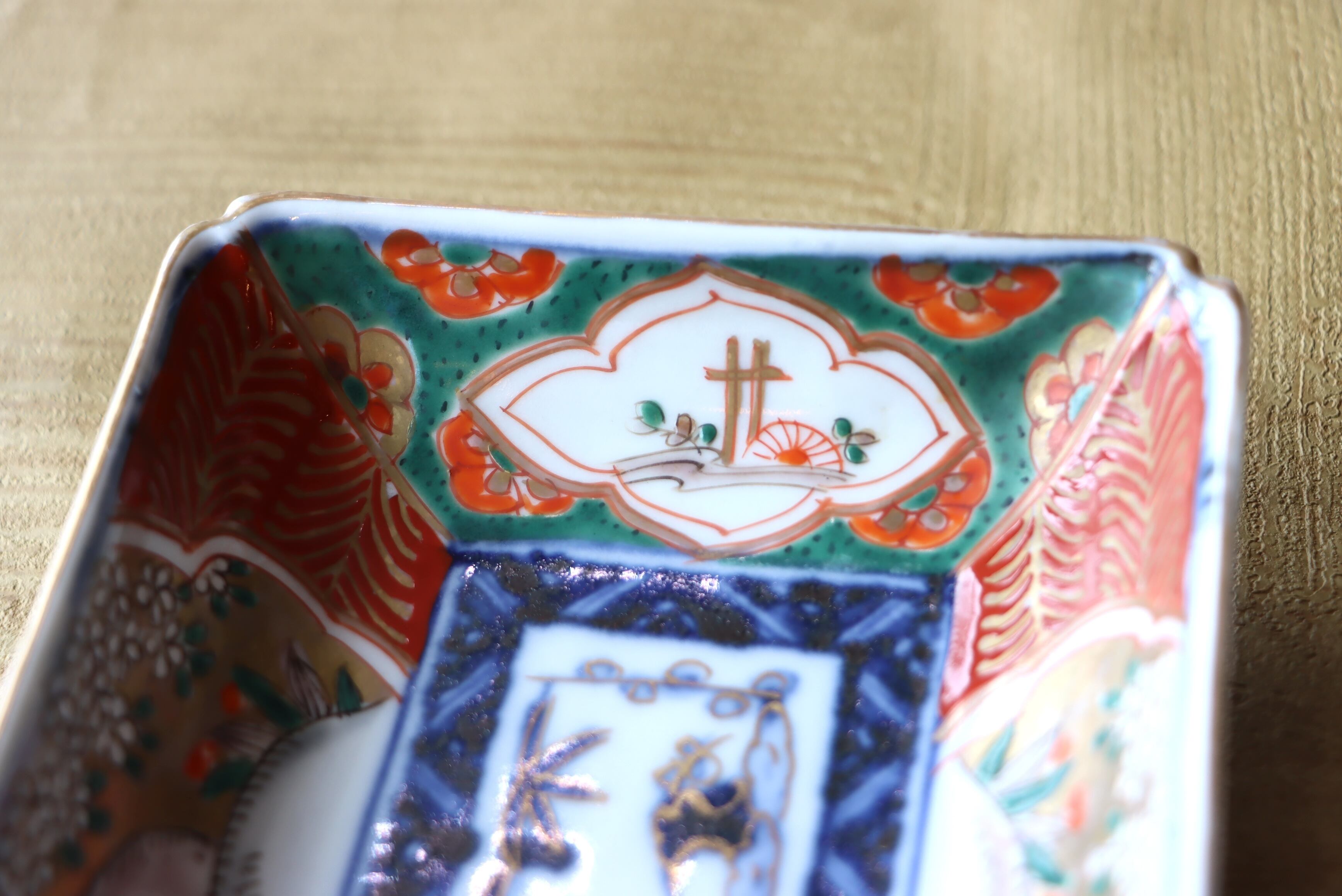 【Imari rectangular plate with flower design in overglaze enamels.】
