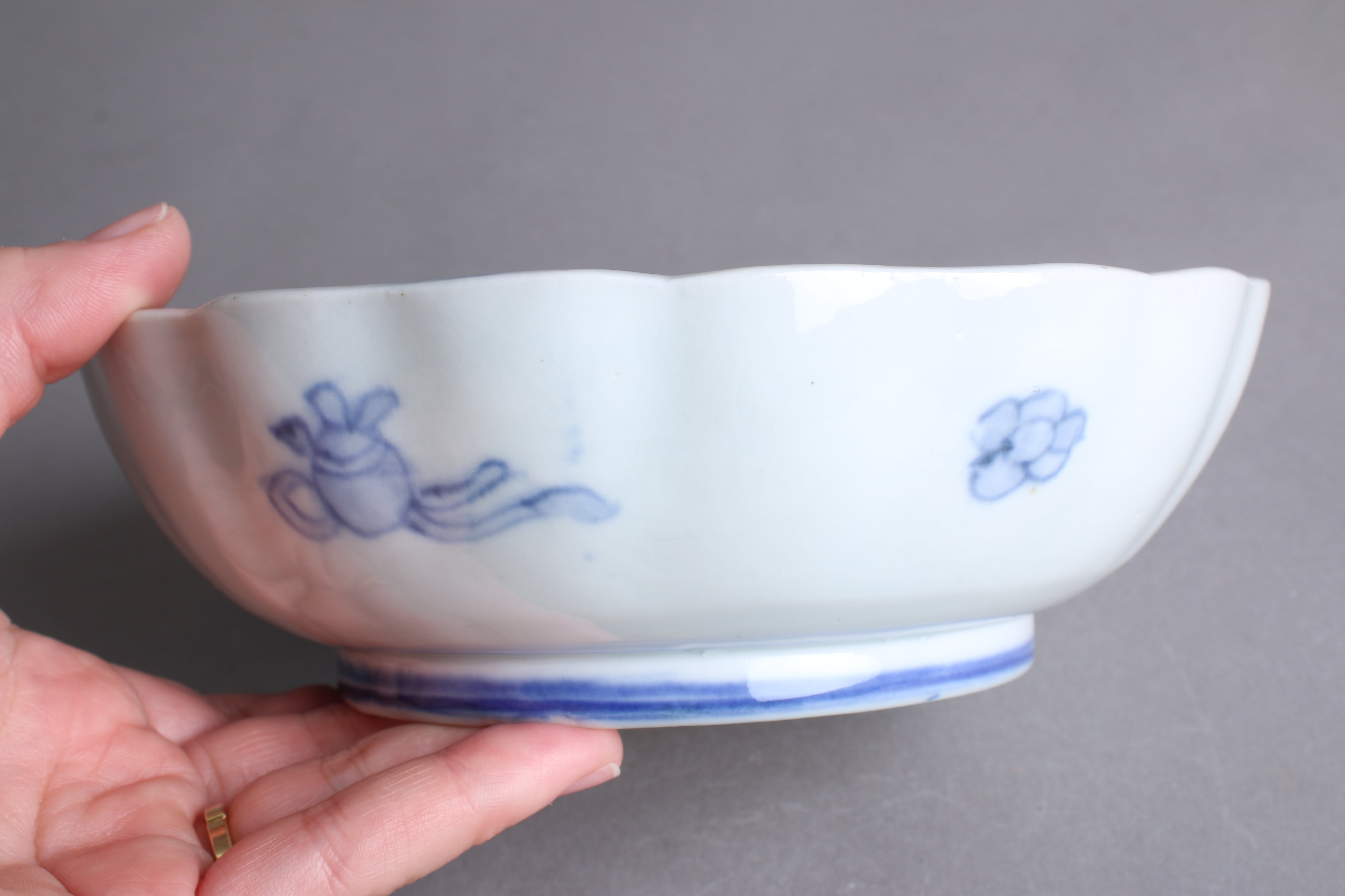 状態:口縁、高台裏にフチソゲあり。普段使い可能、もしくは金継ぎ用に。