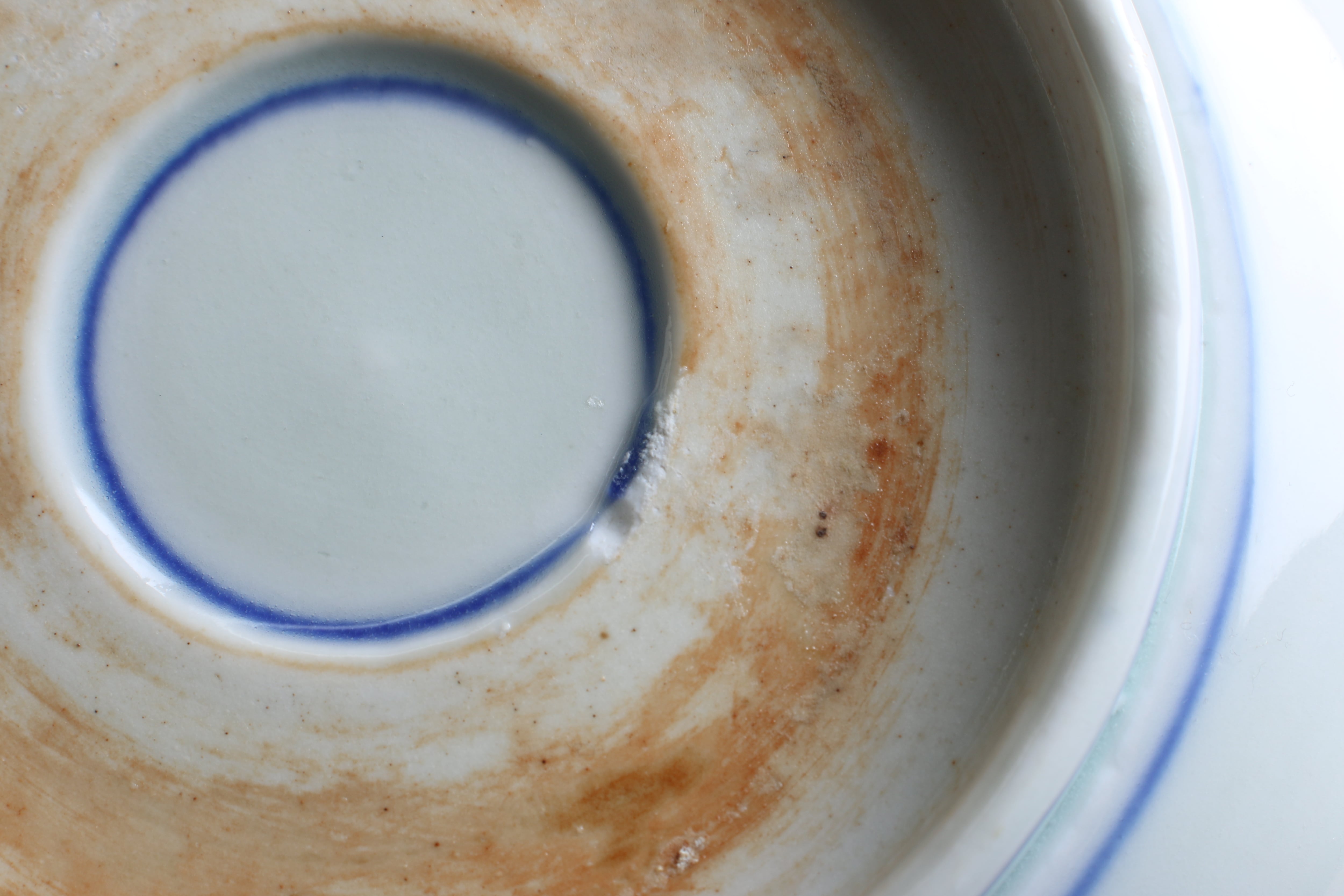 焼成時に窯の中でできる鉄分、くっつき、かまきず、ピンホール、経年による釉薬の薄れがございます。また、一枚一枚手描き、手作りですので器のサイズ(ミリ)、色味、描かれている文様の大きさなど個体差があり、ひとつとして同じものはございません。そういった時代感、個性をご理解いただき、楽しんでくだされば幸いです。電子レンジや食器洗い乾燥機のご使用はお控えください。