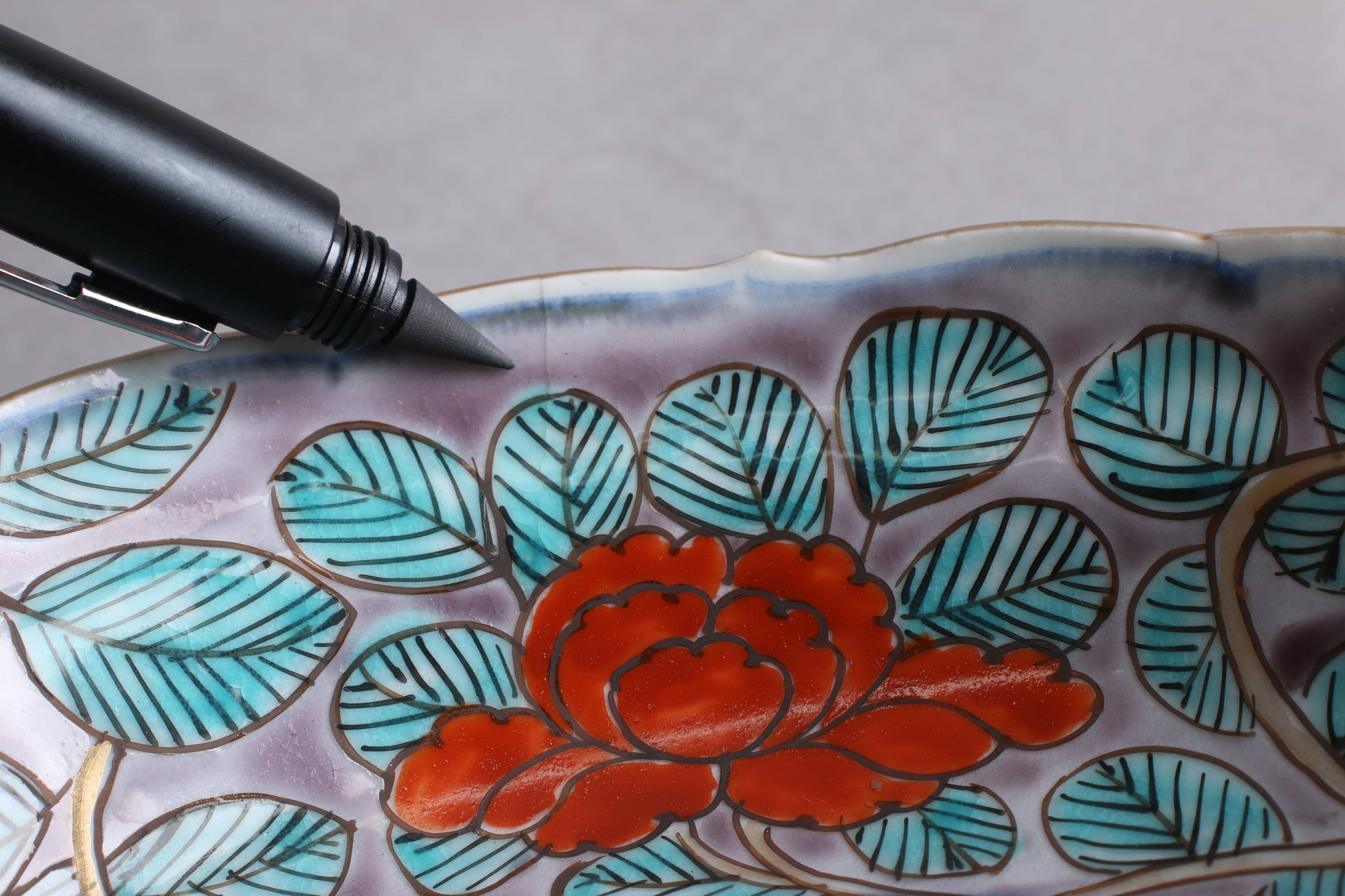 焼成時に窯の中でできる鉄分、くっつき、かまきず、ピンホール、経年による釉薬の薄れがございます。また、一枚一枚手描き、手作りですので器のサイズ(ミリ)、色味、描かれている文様の大きさなど個体差があり、ひとつとして同じものはございません。そういった時代感、個性をご理解いただき、楽しんでくだされば幸いです。電子レンジや食器洗い乾燥機のご使用はお控えください。