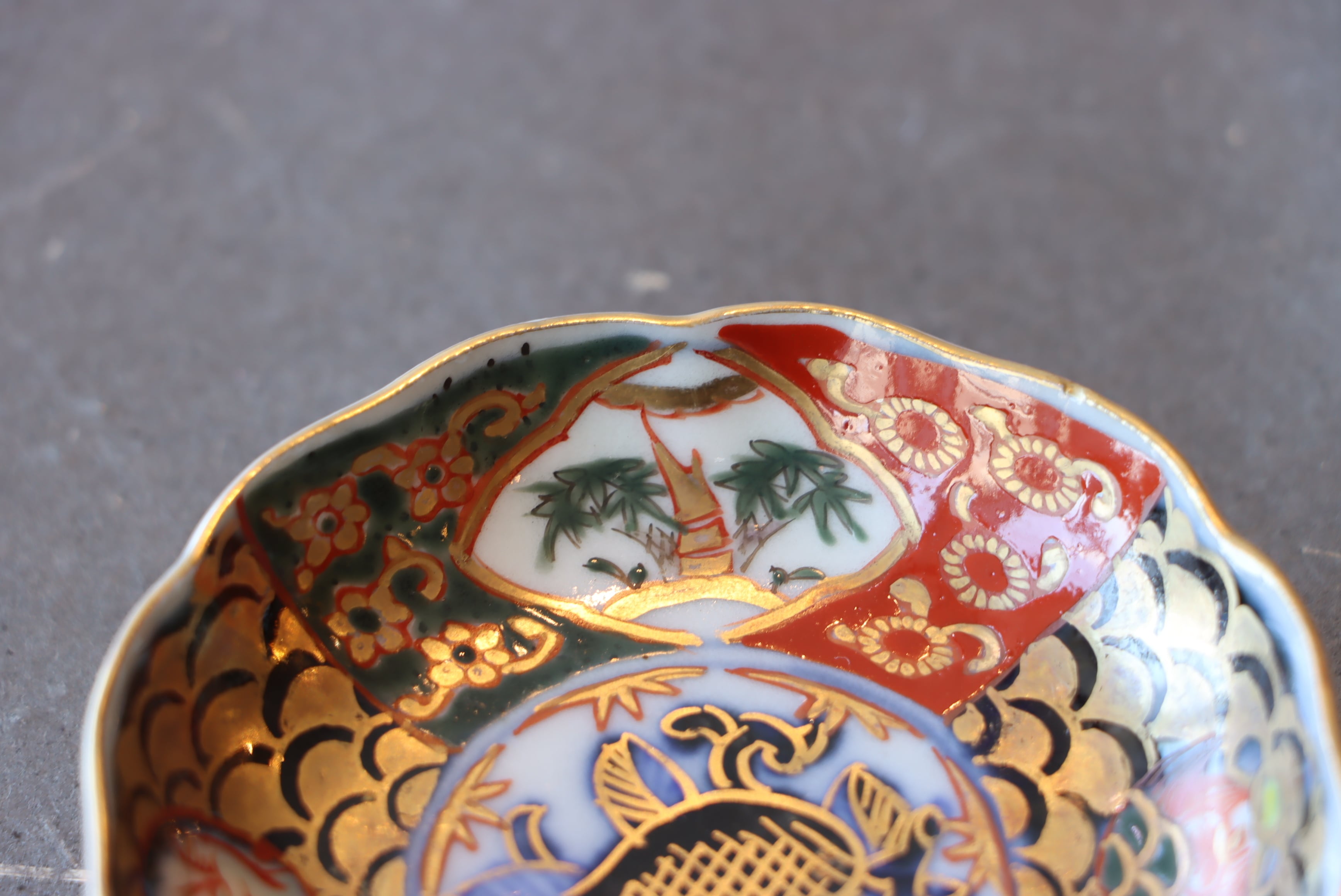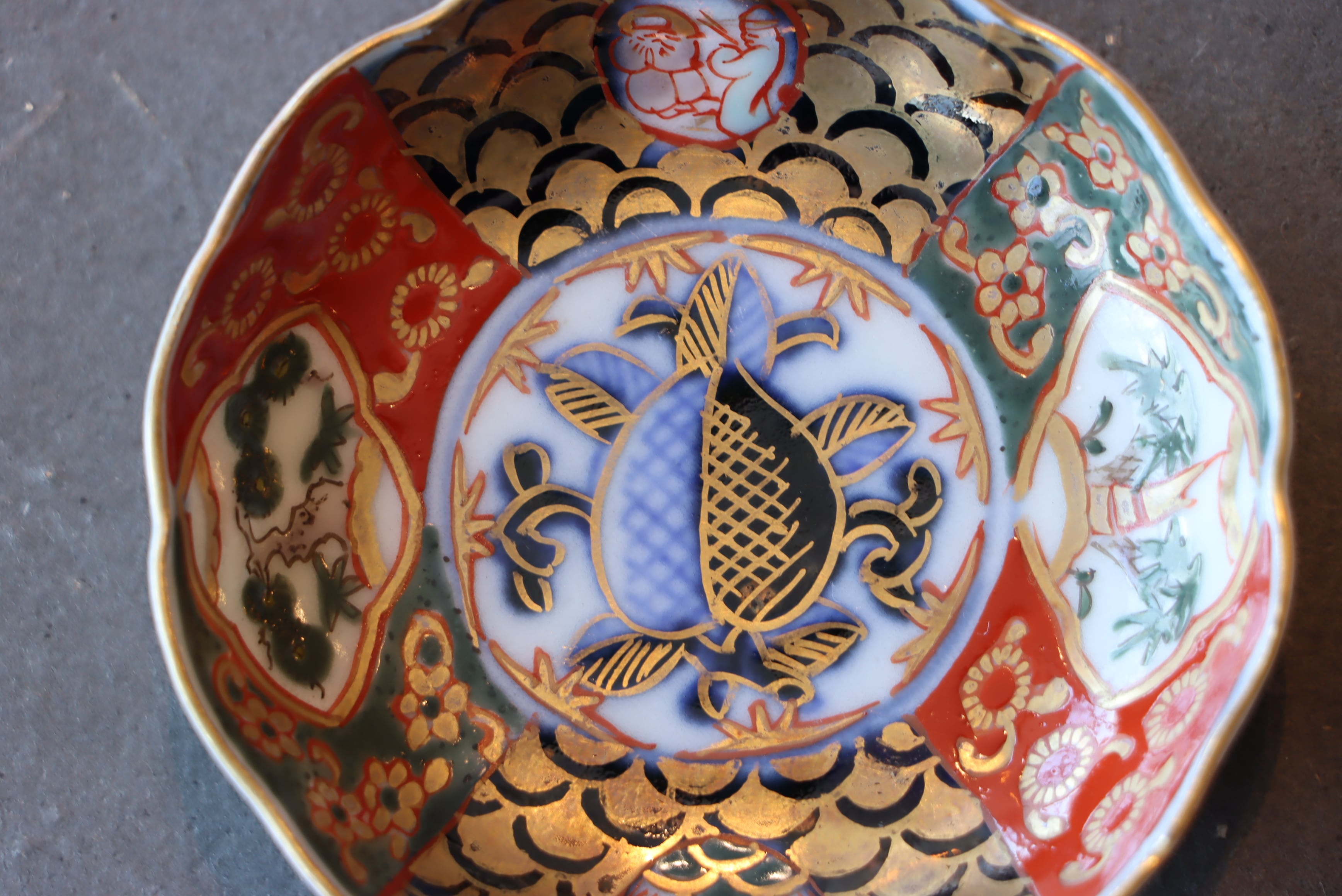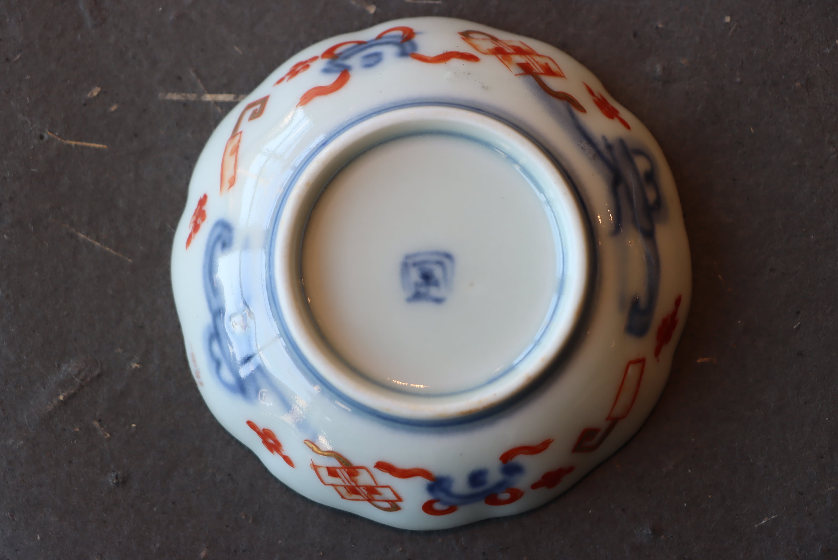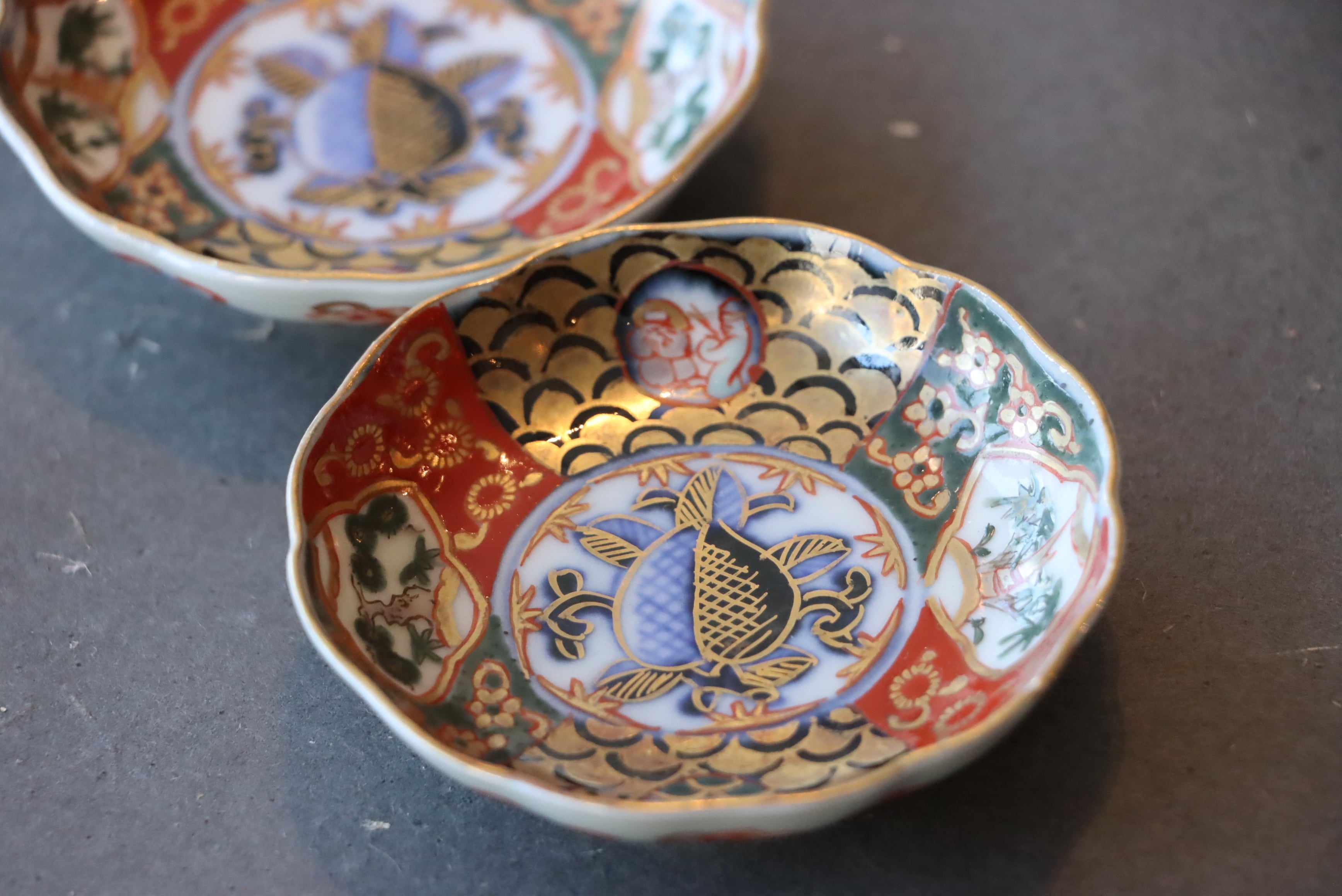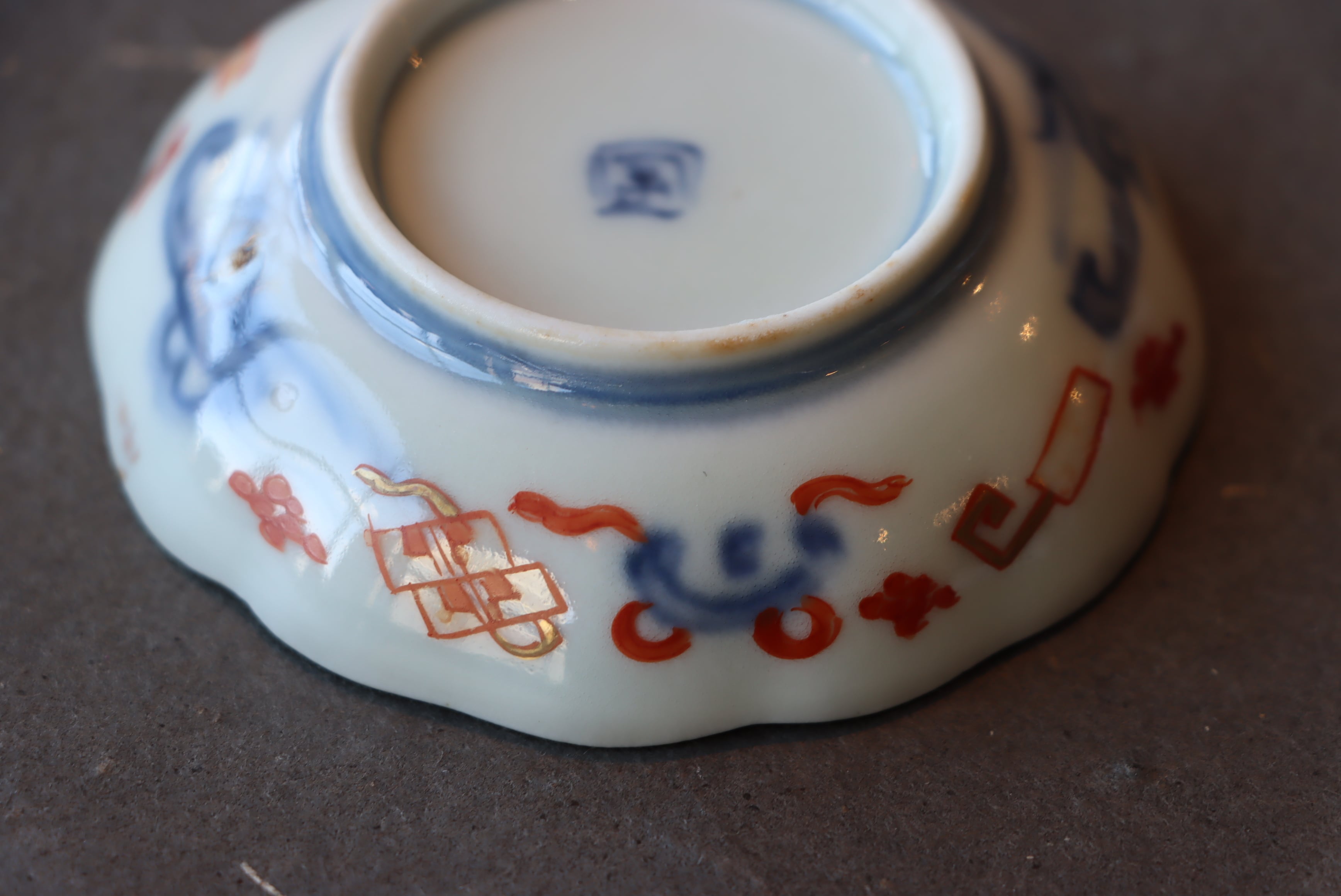 【Imari small plate less than 10 cm with venerable old man, crane and turtle design in overglaze enamels.】