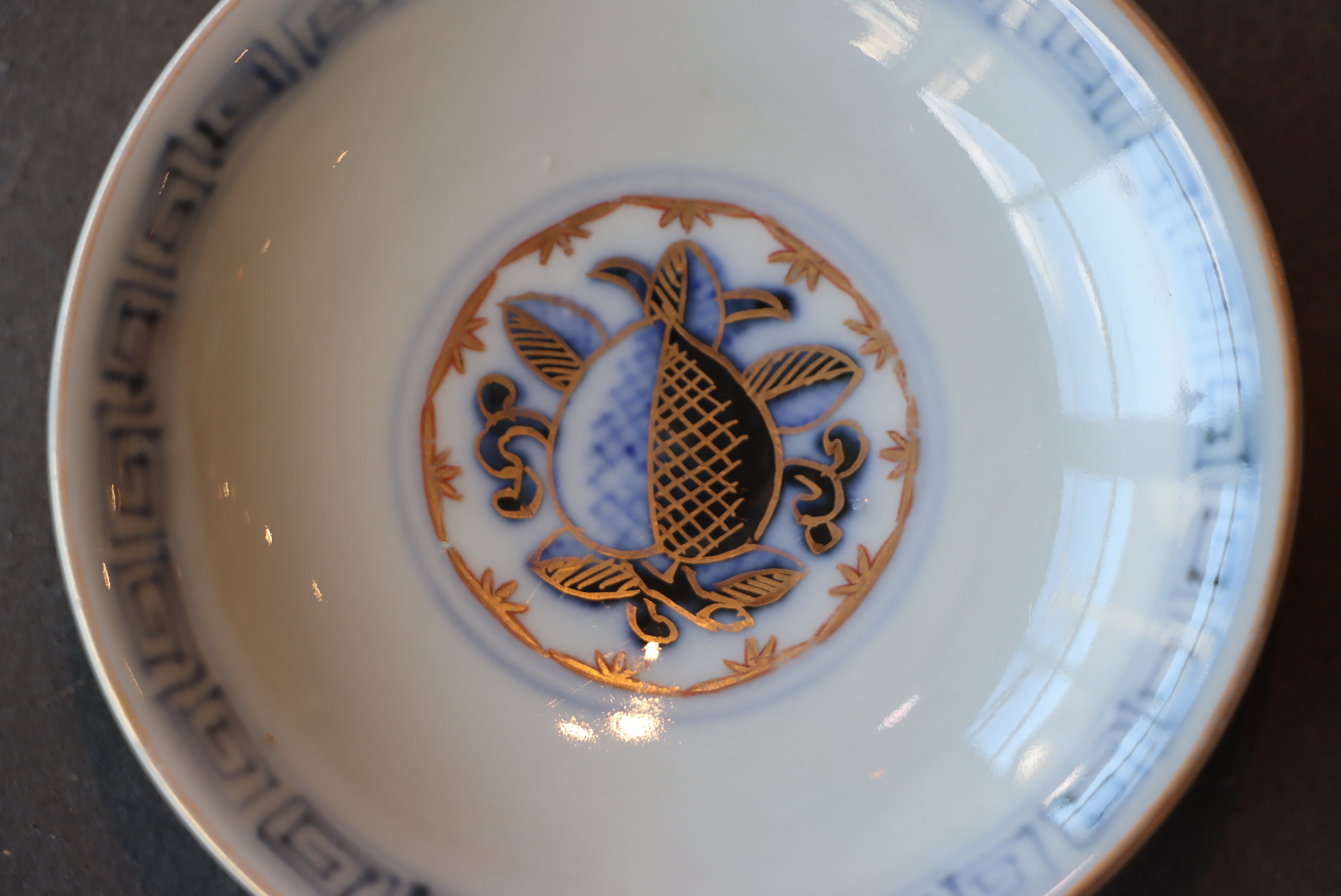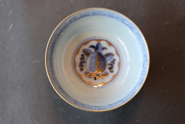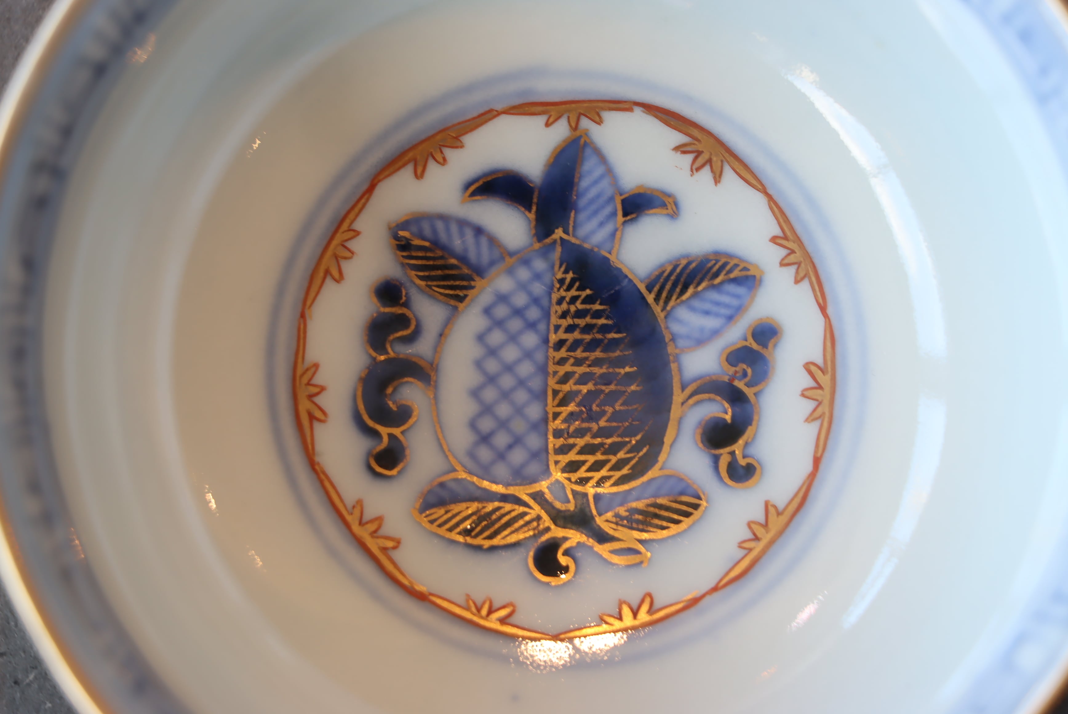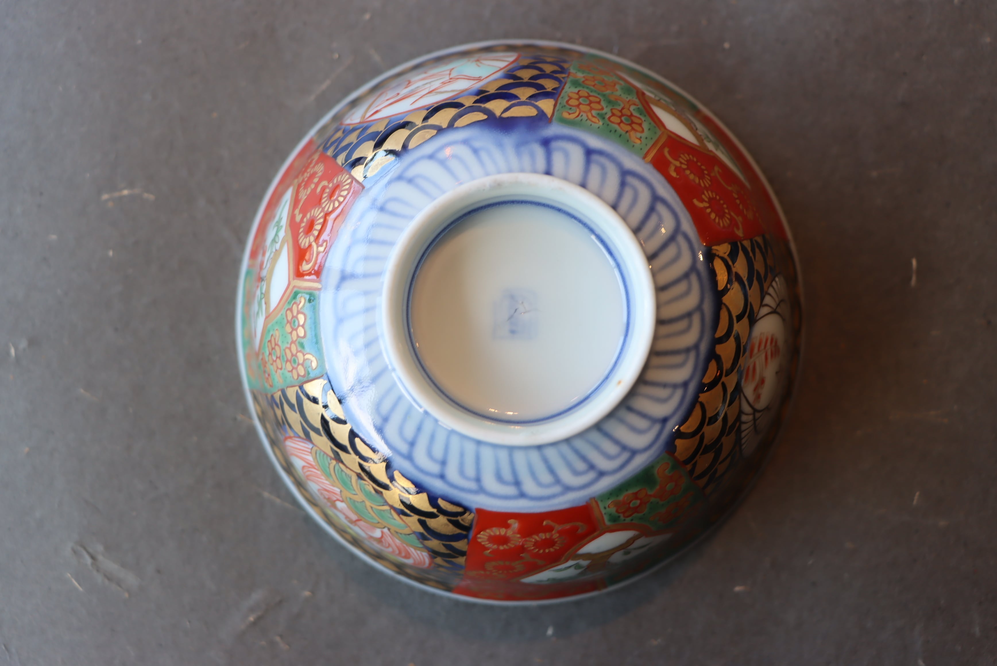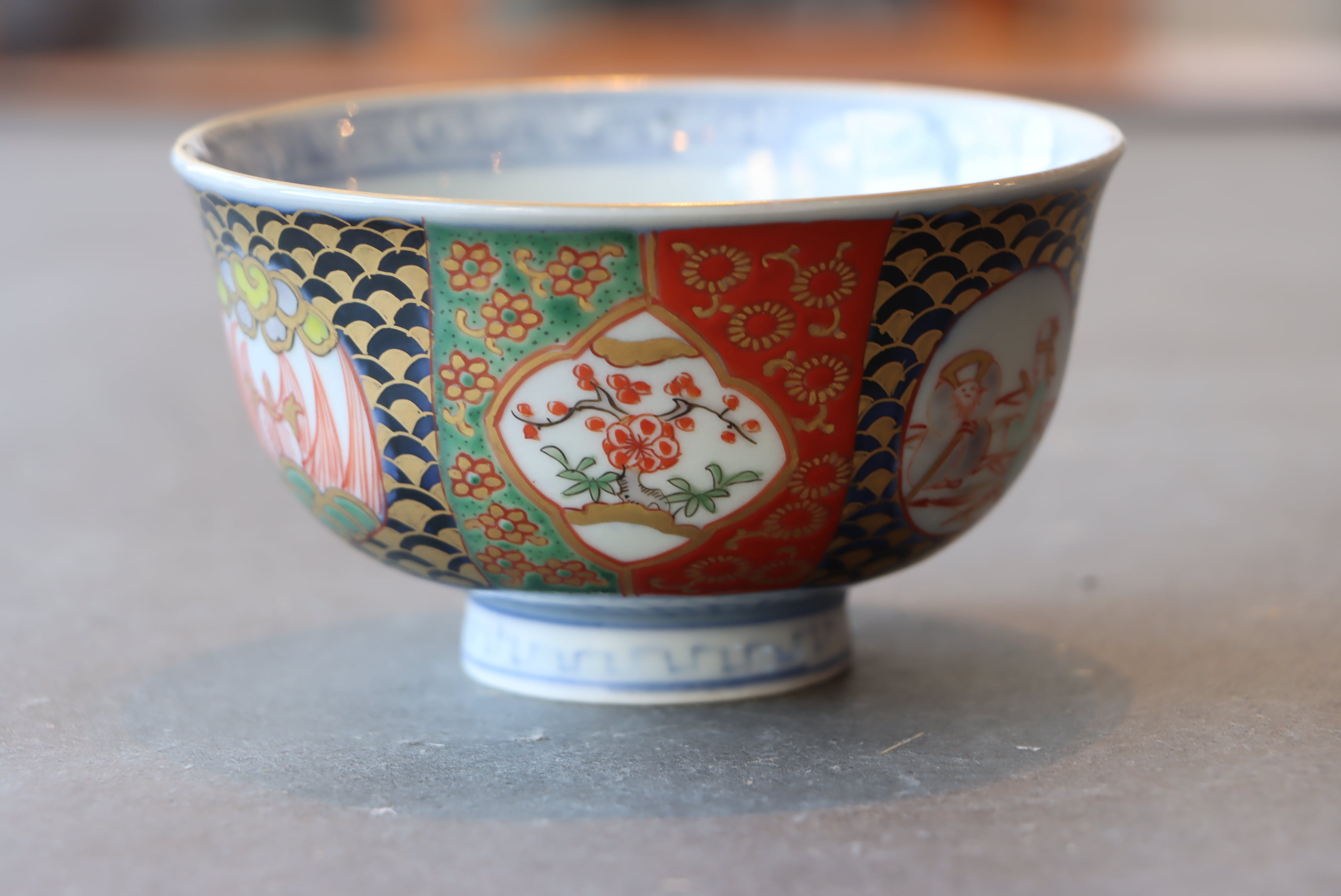【Imari covered bowl with venerable old man, crane and turtle design in overglaze enamels.】