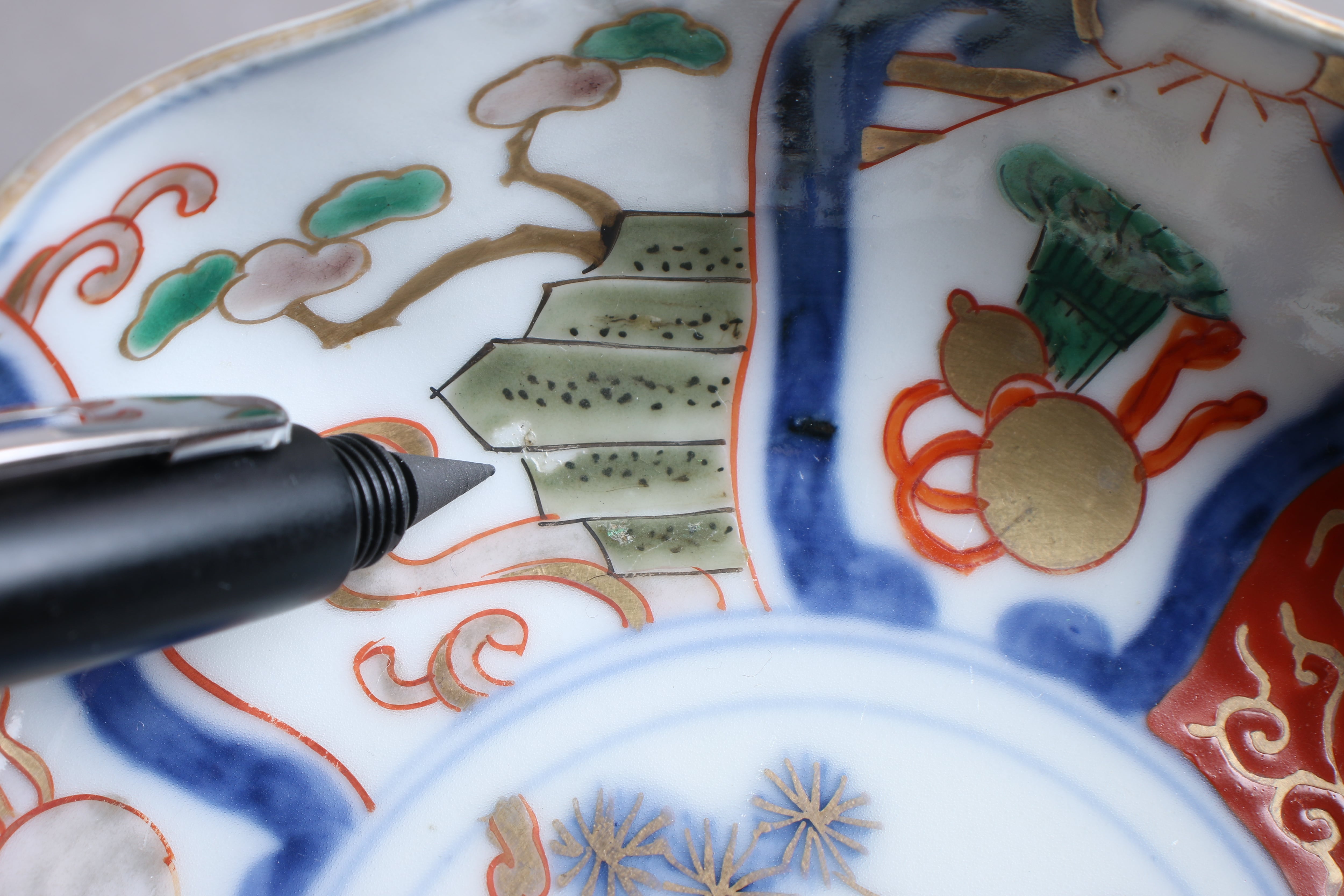 焼成時に窯の中でできる鉄分、くっつき、かまきず、ピンホール、経年による釉薬の薄れがございます。また、一枚一枚手描き、手作りですので器のサイズ(ミリ)、色味、描かれている文様の大きさなど個体差があり、ひとつとして同じものはございません。そういった時代感、個性をご理解いただき、楽しんでくだされば幸いです。電子レンジや食器洗い乾燥機のご使用はお控えください。
