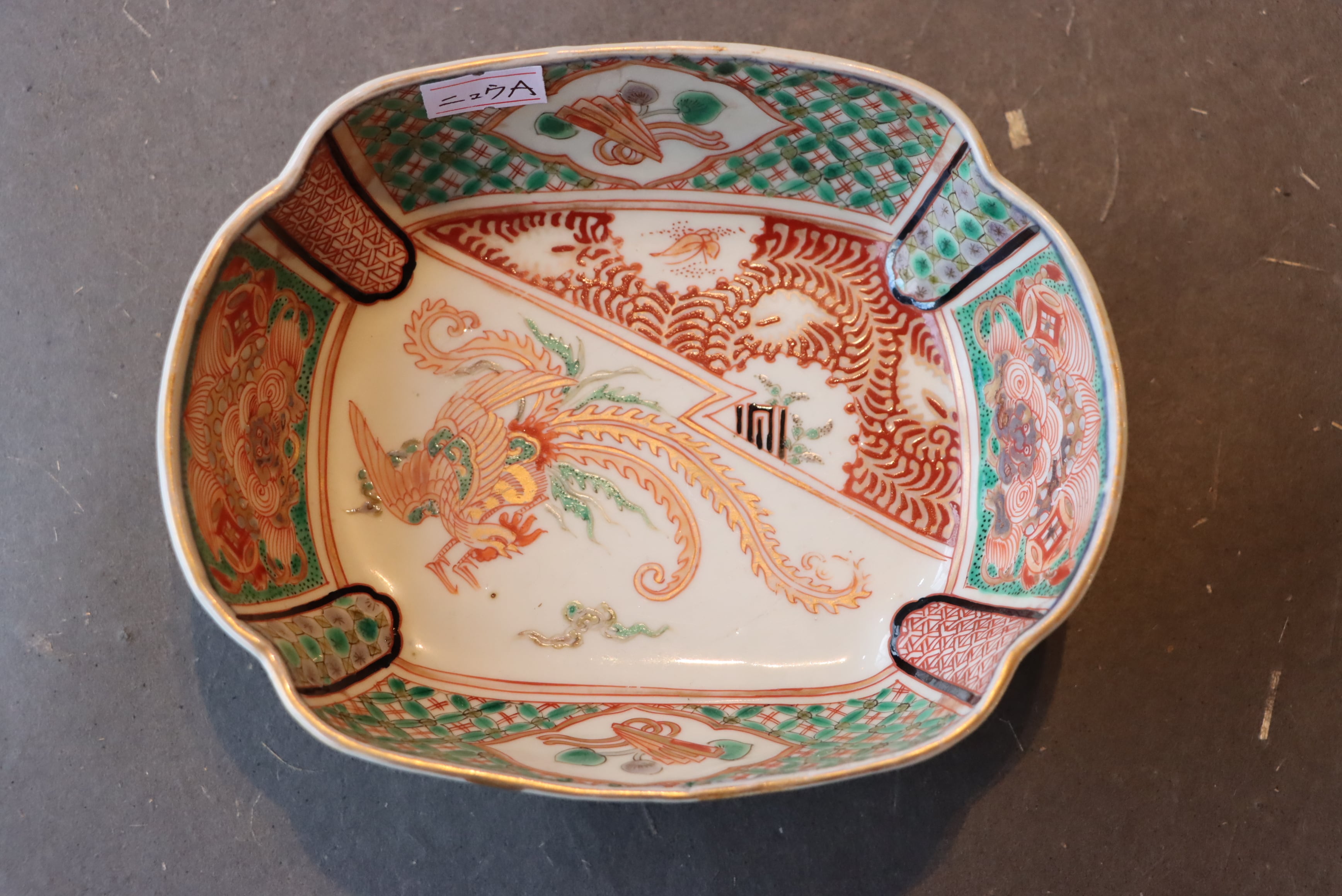 焼成時に窯の中でできる鉄分、くっつき、かまきず、経年による釉薬の薄れがございます。また、一枚一枚手描き、手作りです焼ので器のサイズ(ミリ)、色味、描かれている文様の大きさなど個体差があり、ひとつとして同じものはございません。そういった時代感、個性をご理解いただき、楽しんでくだされば幸いです。電子レンジや食器洗い乾燥機のご使用はお控えください。