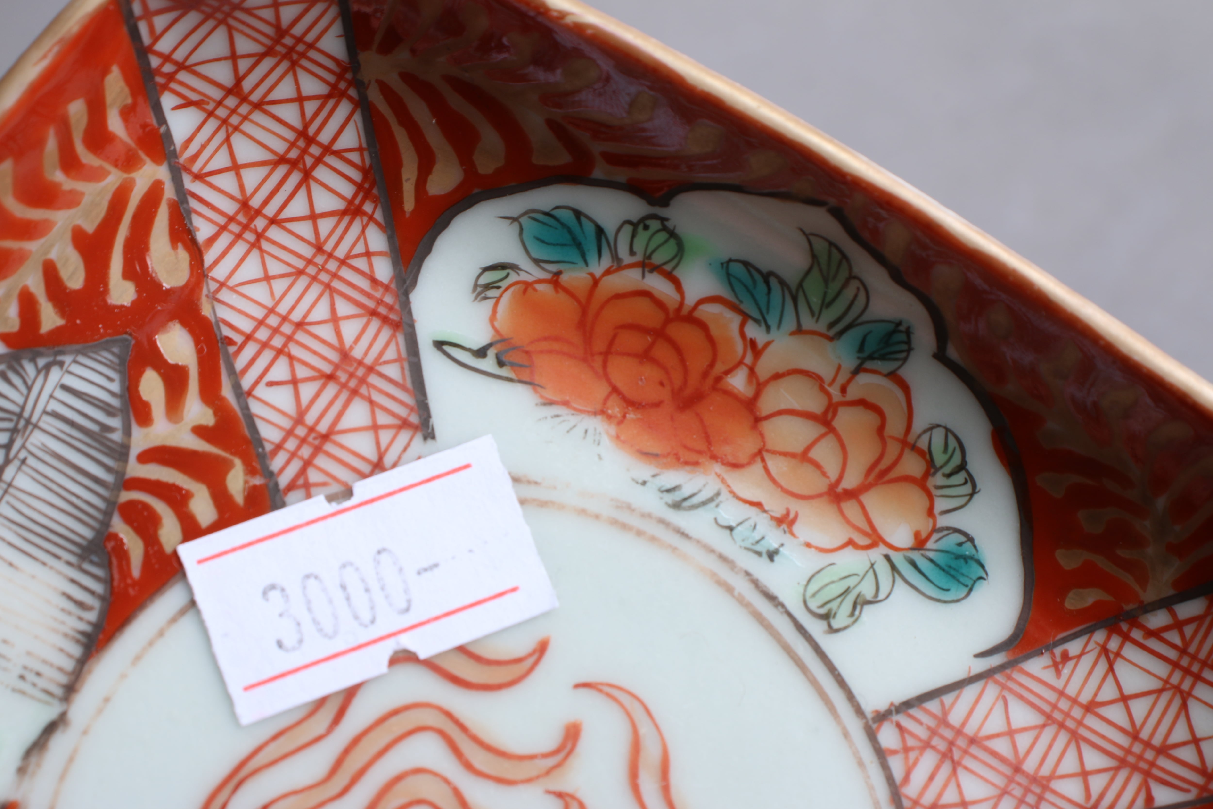 焼成時に窯の中でできる鉄分、くっつき、かまきず、ピンホール、経年による釉薬の薄れがございます。また、一枚一枚手描き、手作りですので器のサイズ(ミリ)、色味、描かれている文様の大きさなど個体差があり、ひとつとして同じものはございません。そういった時代感、個性をご理解いただき、楽しんでくだされば幸いです。電子レンジや食器洗い乾燥機のご使用はお控えください。