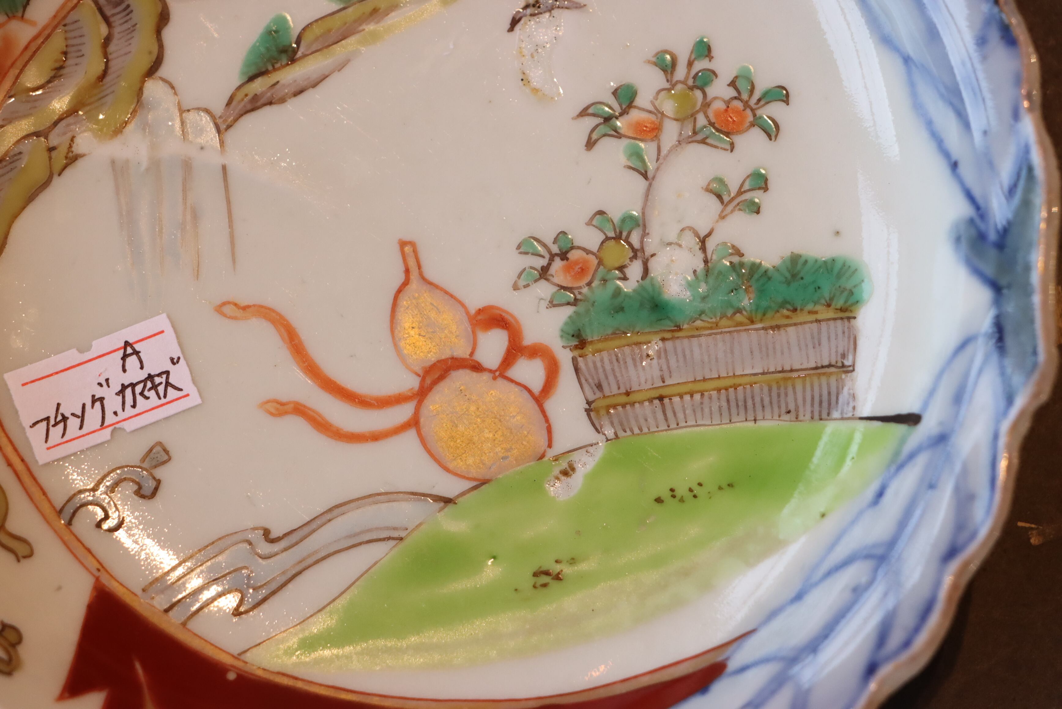状態:フチソゲ(最後から5枚目)、見込みにカマキズあり(写真3枚目)。