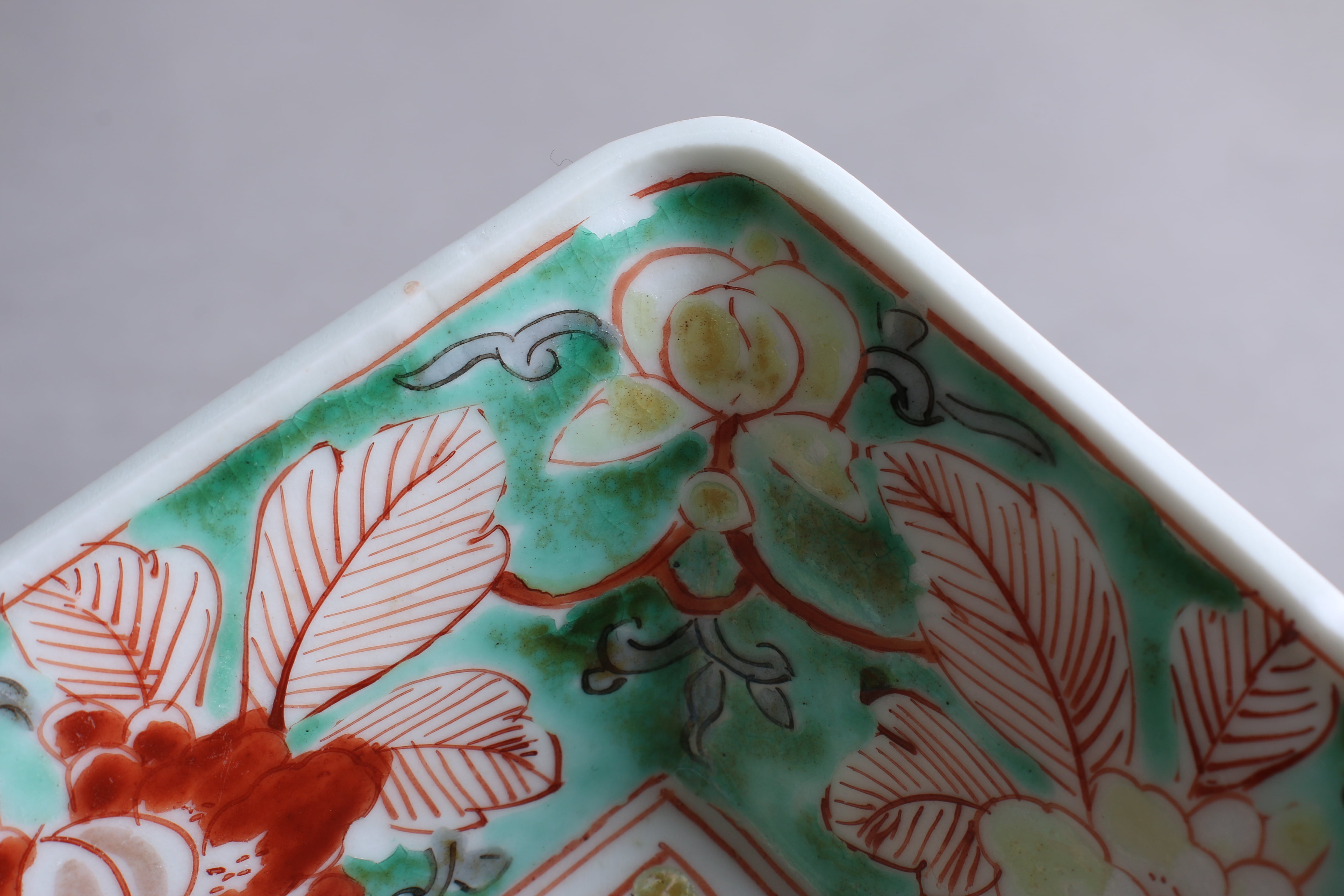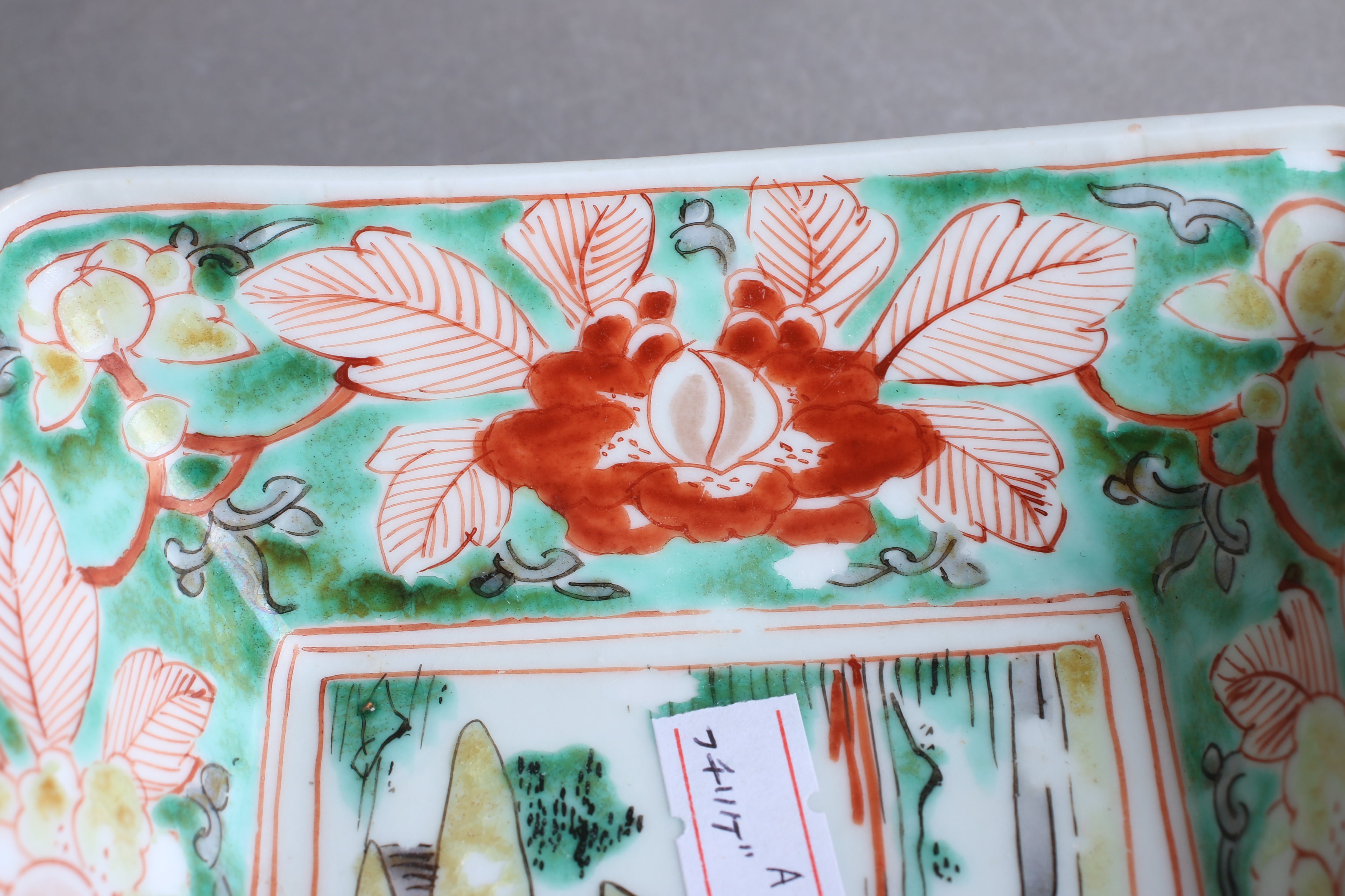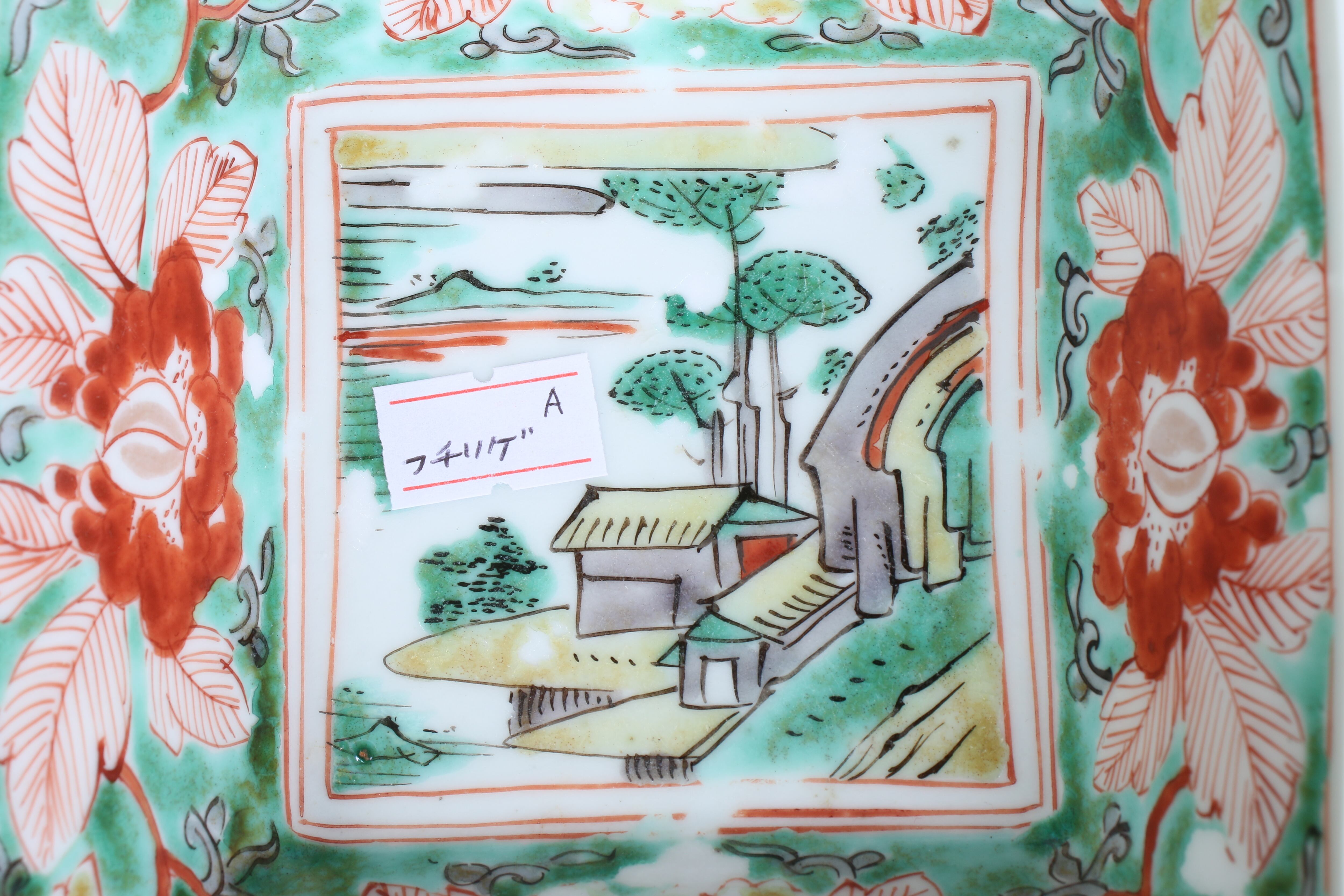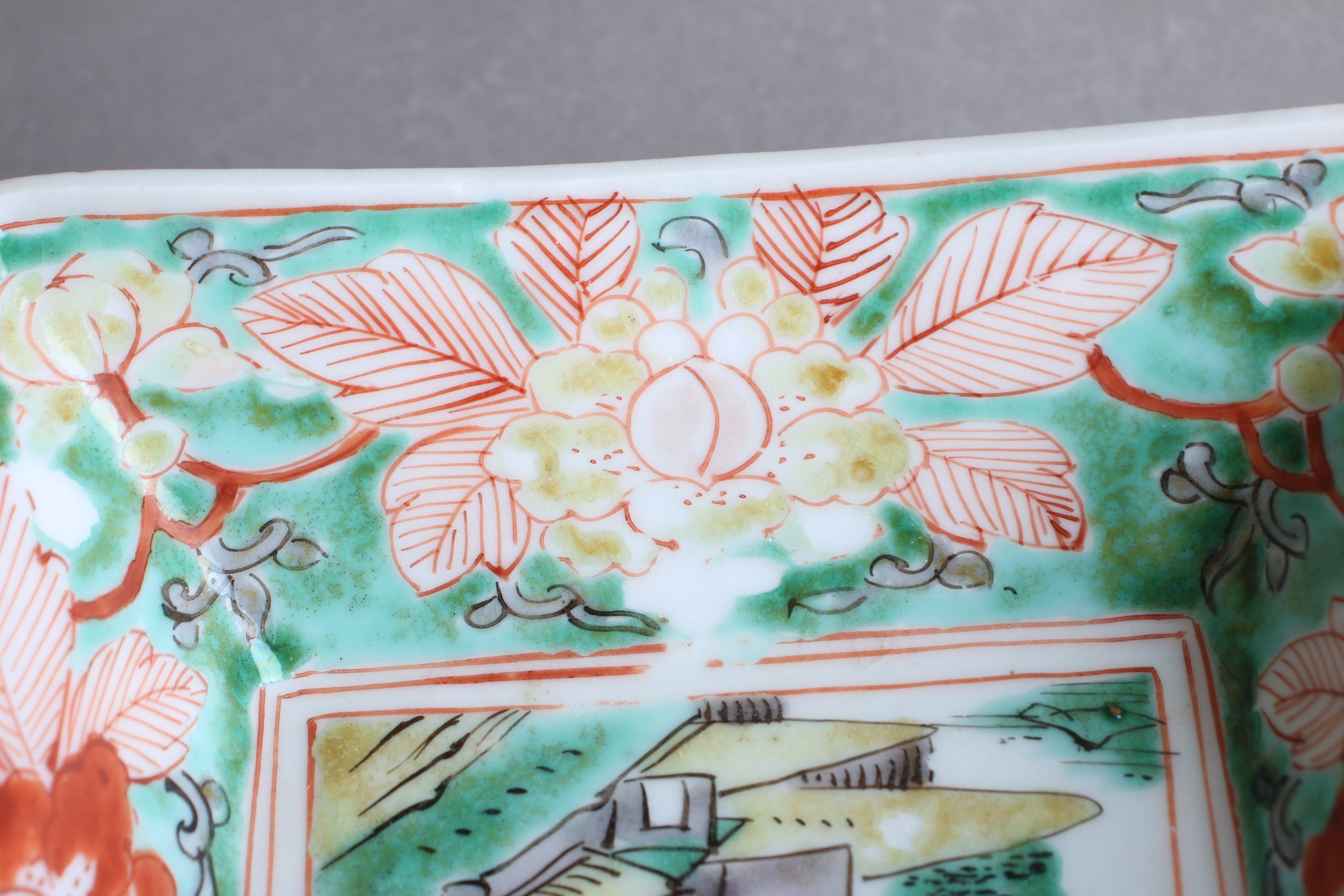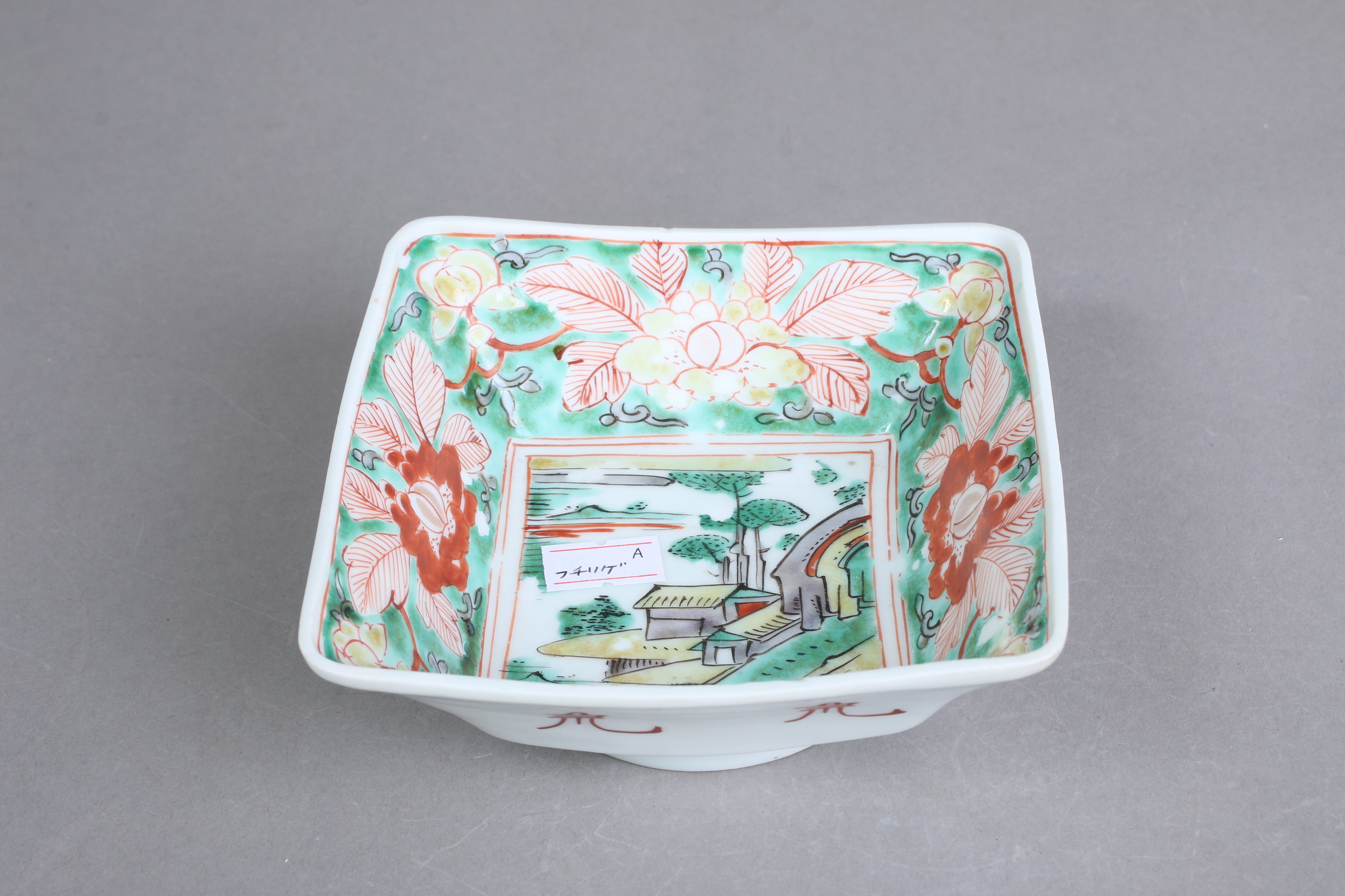 フチソゲ ×4 高台ソゲ 伊万里焼 色絵 花楼閣山水文 角向付 A アウトレット