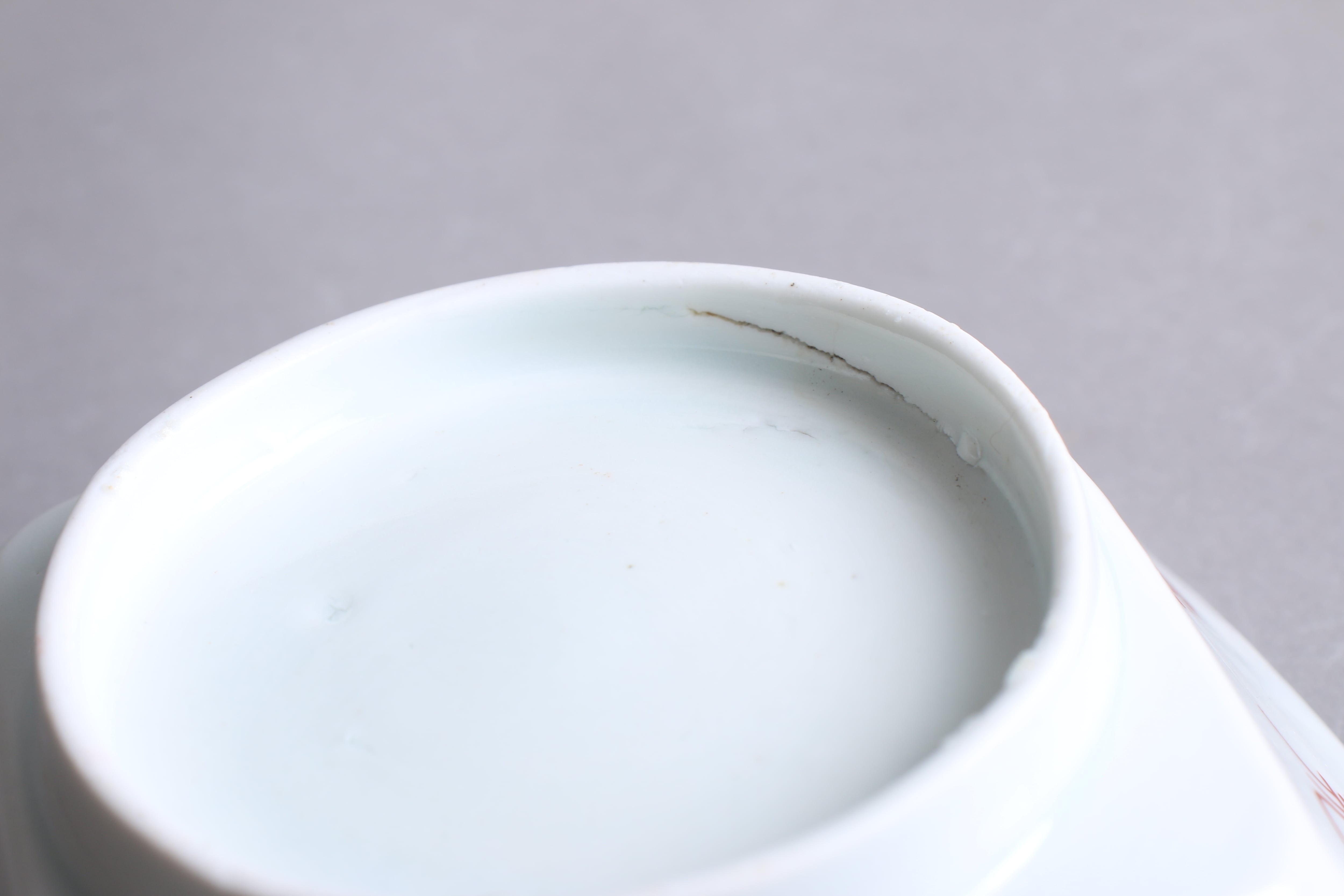 焼成時に窯の中でできる鉄分、くっつき、かまきず、ピンホール、経年による釉薬の薄れがございます。また、一枚一枚手描き、手作りですので器のサイズ(ミリ)、色味、描かれている文様の大きさなど個体差があり、ひとつとして同じものはございません。そういった時代感、個性をご理解いただき、楽しんでくだされば幸いです。電子レンジや食器洗い乾燥機のご使用はお控えください。