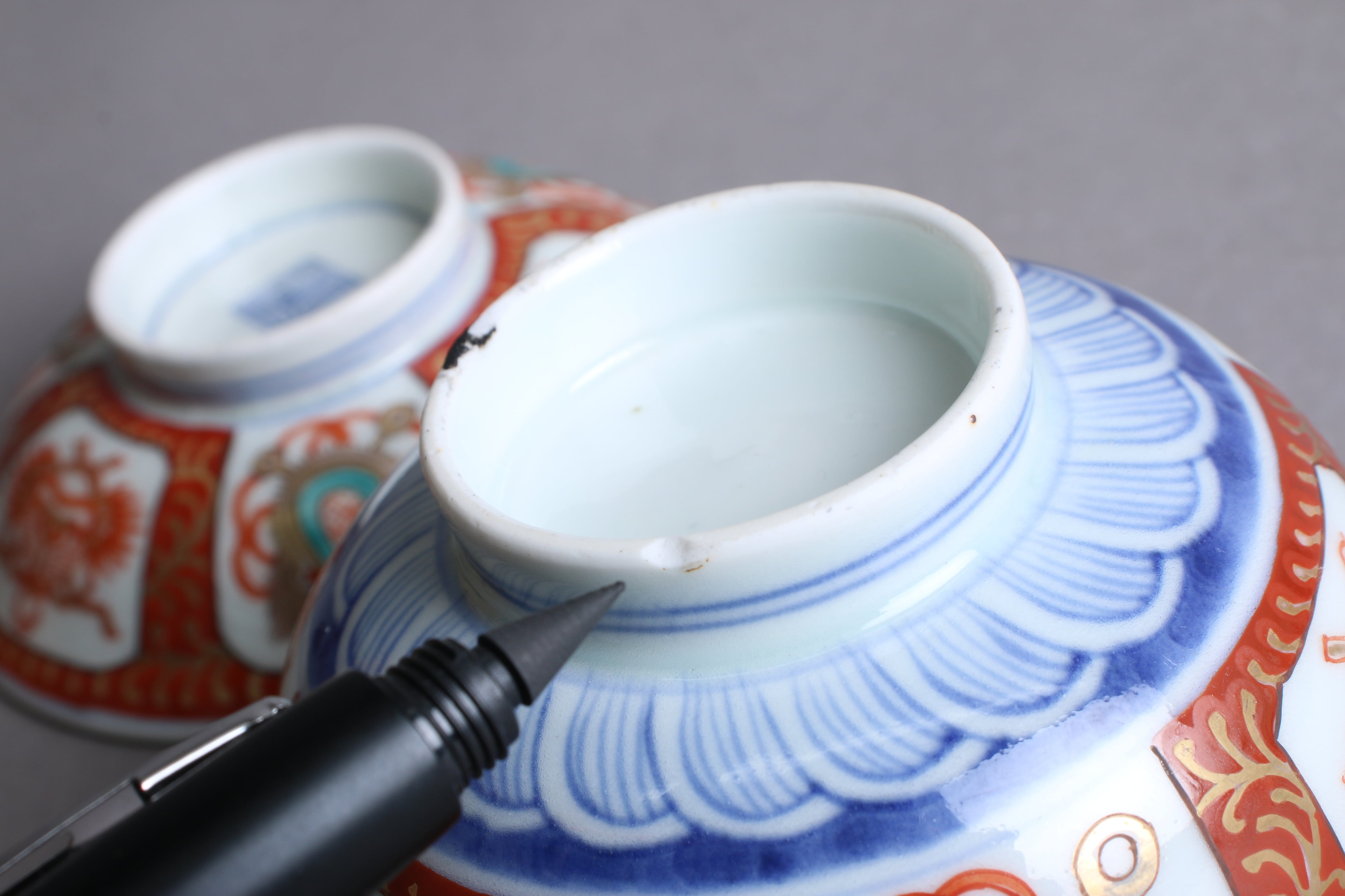 焼成時に窯の中でできる鉄分、くっつき、かまきず、ピンホール、経年による釉薬の薄れがございます。また、一枚一枚手描き、手作りですので器のサイズ(ミリ)、色味、描かれている文様の大きさなど個体差があり、ひとつとして同じものはございません。そういった時代感、個性をご理解いただき、楽しんでくだされば幸いです。電子レンジや食器洗い乾燥機のご使用はお控えください。
