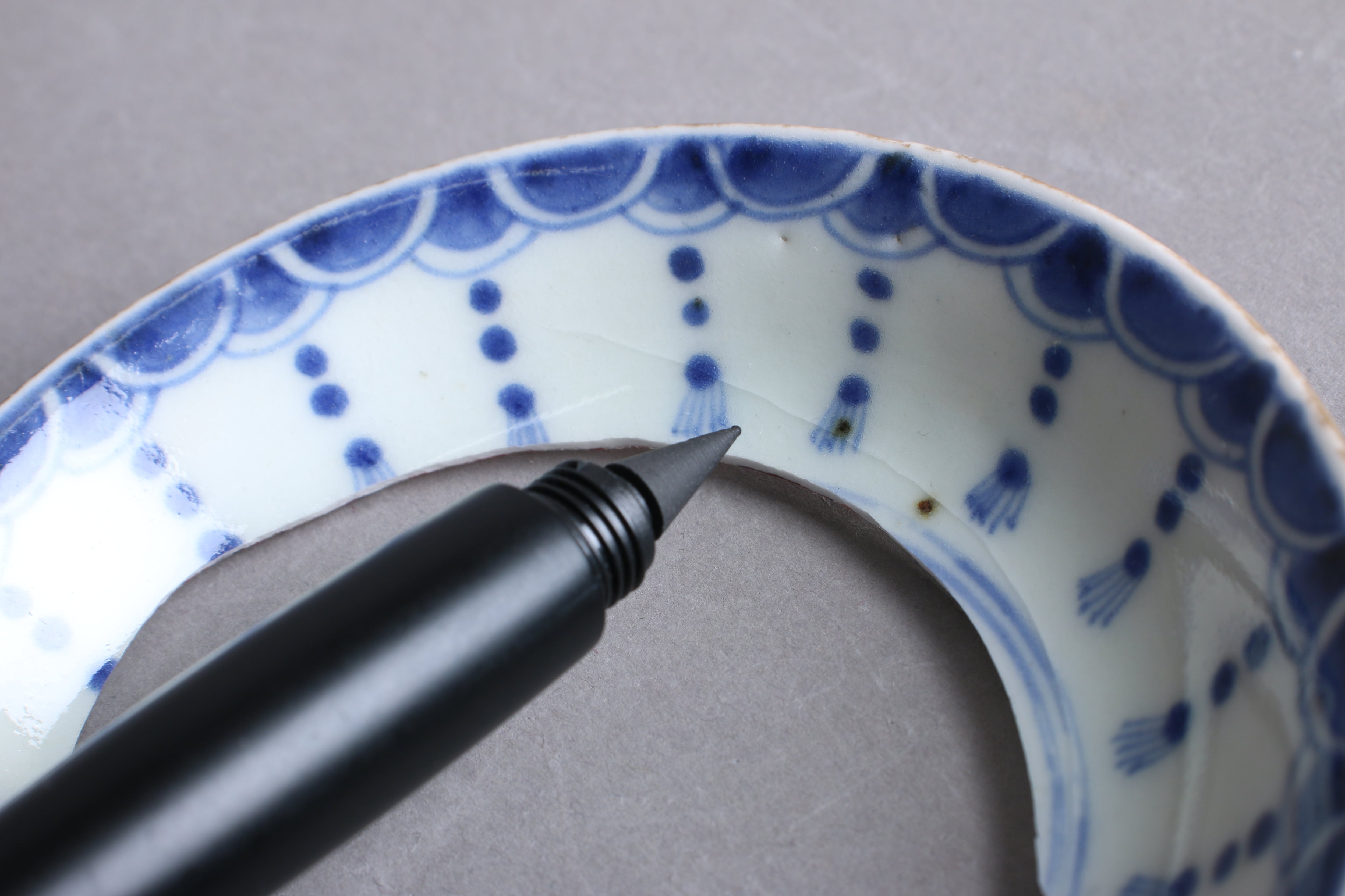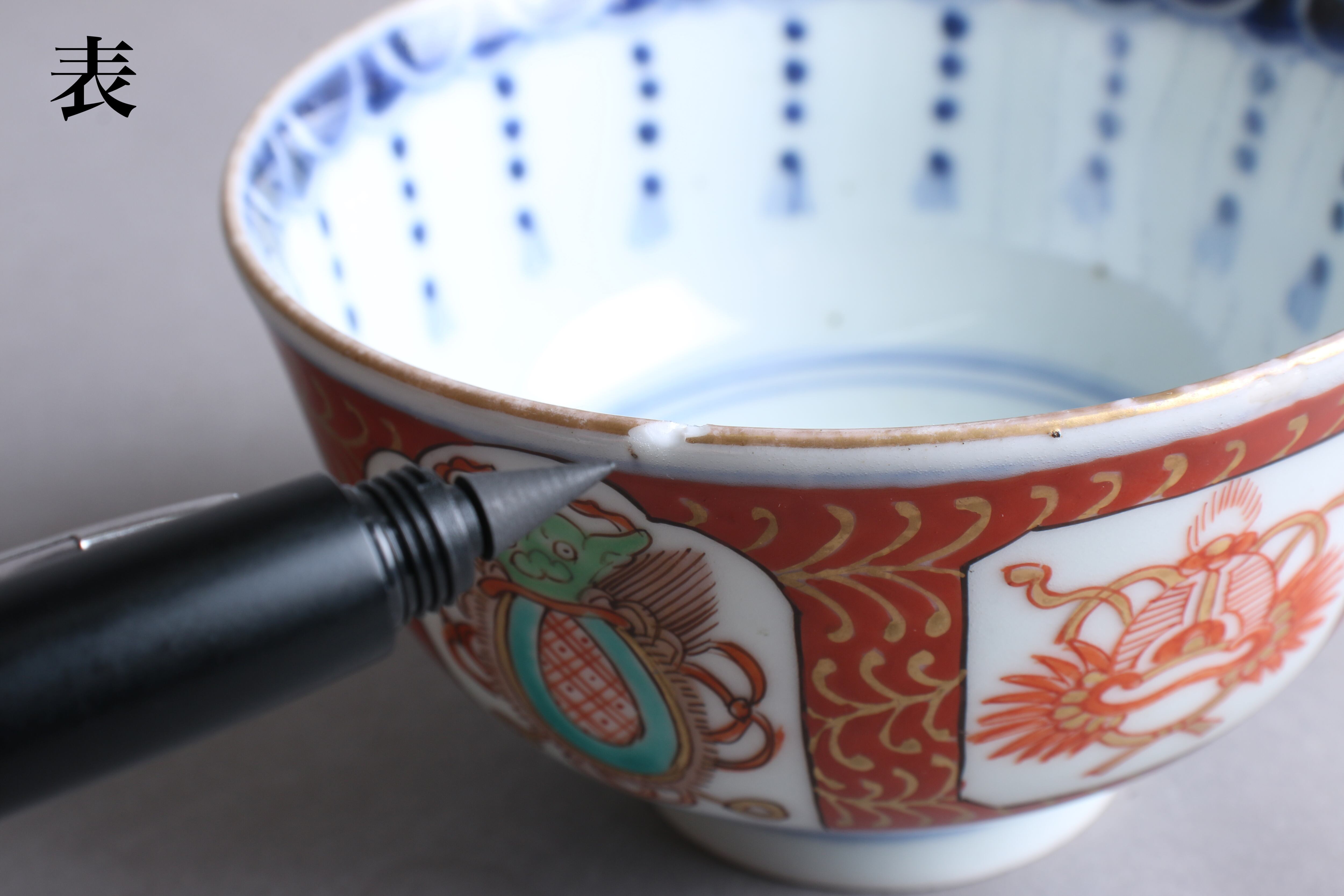 口縁に施されている金彩が剥離している箇所があります。金継ぎ用に。