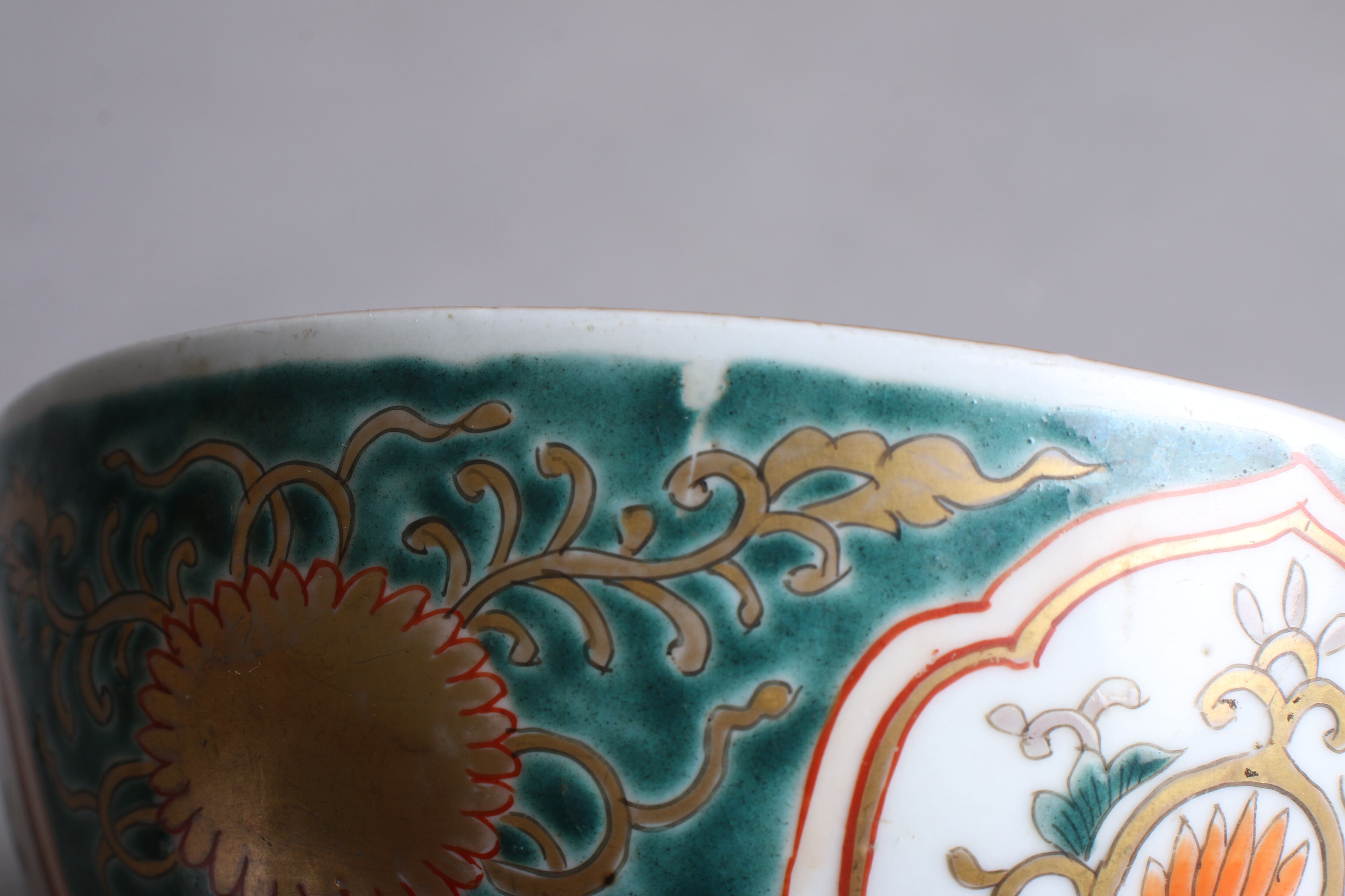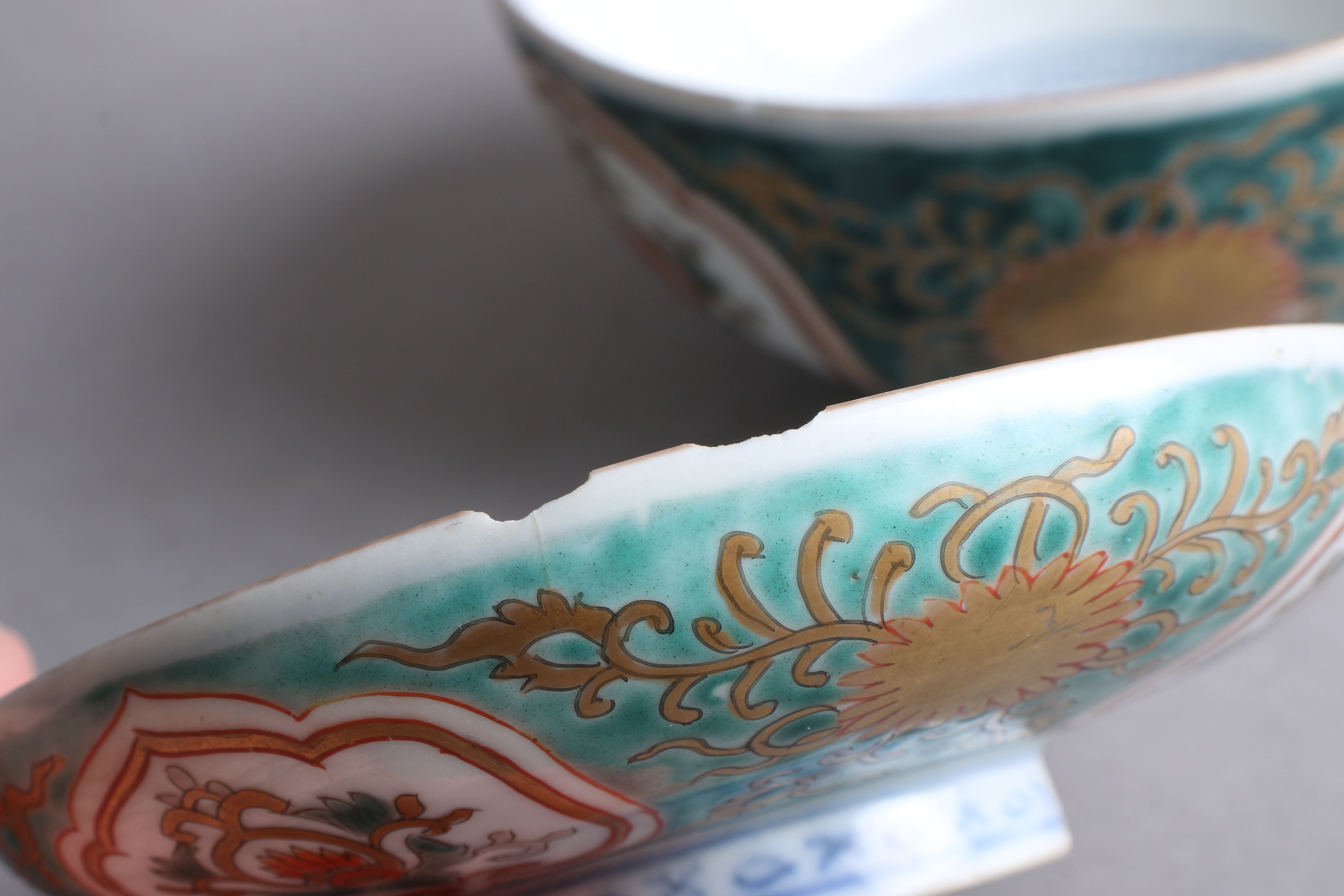 金彩の剥離、釉薬の剥がれている箇所があります。また蓋と身で緑の色合いが若干異なっております。