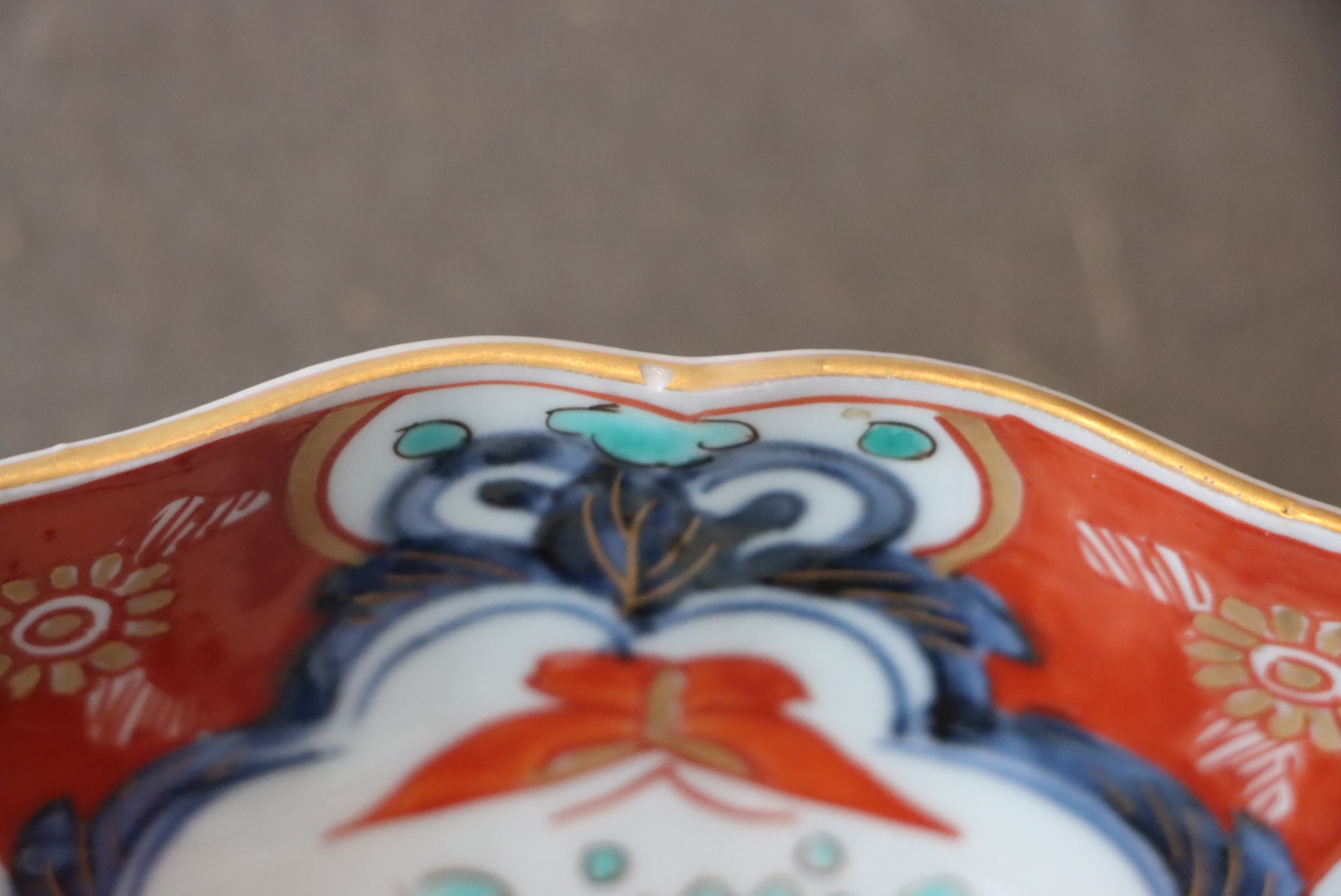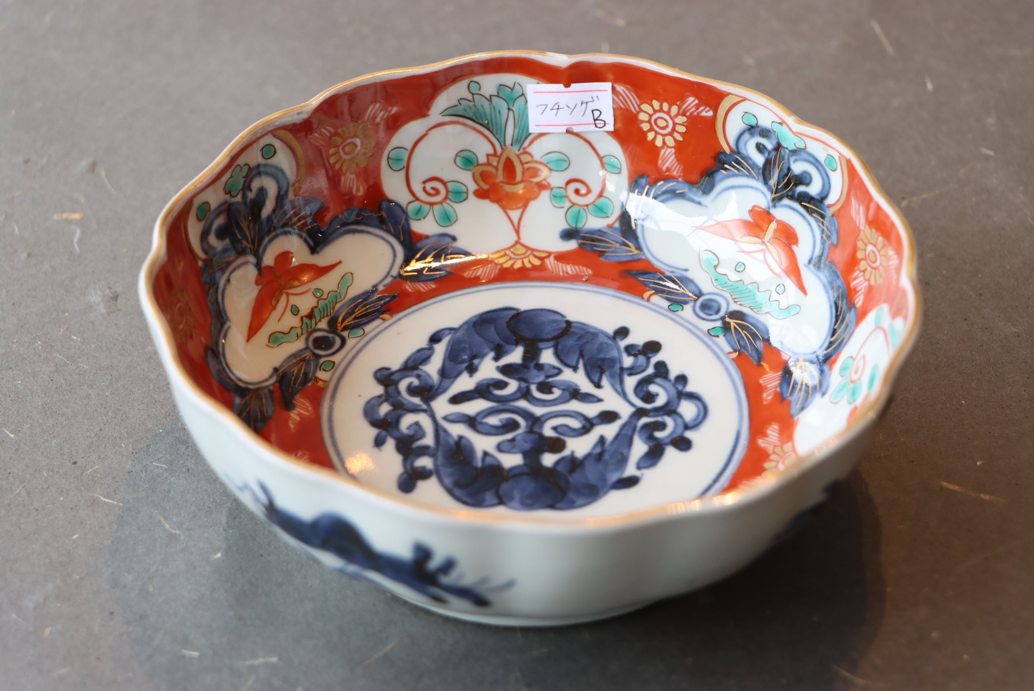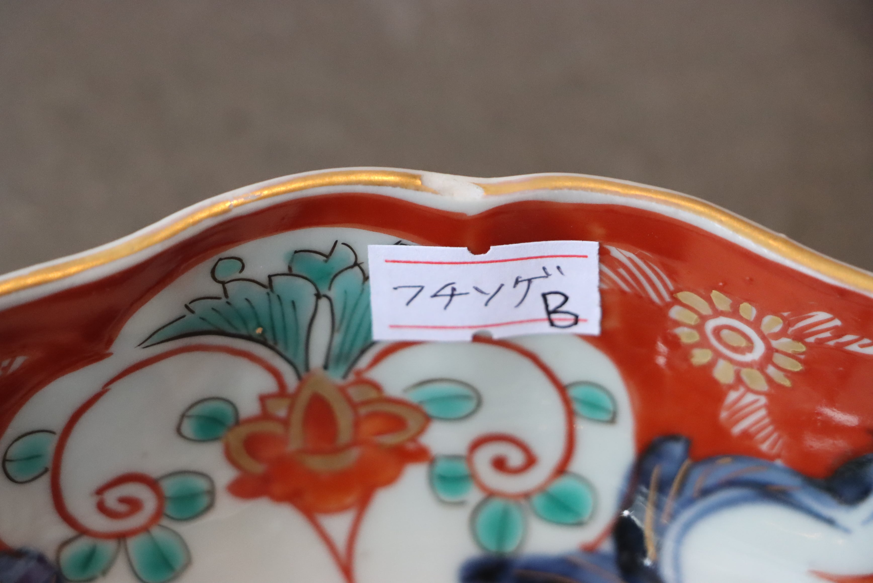 フチソゲ 伊万里焼 色絵 花蝶文 輪花 膾皿 B アウトレット