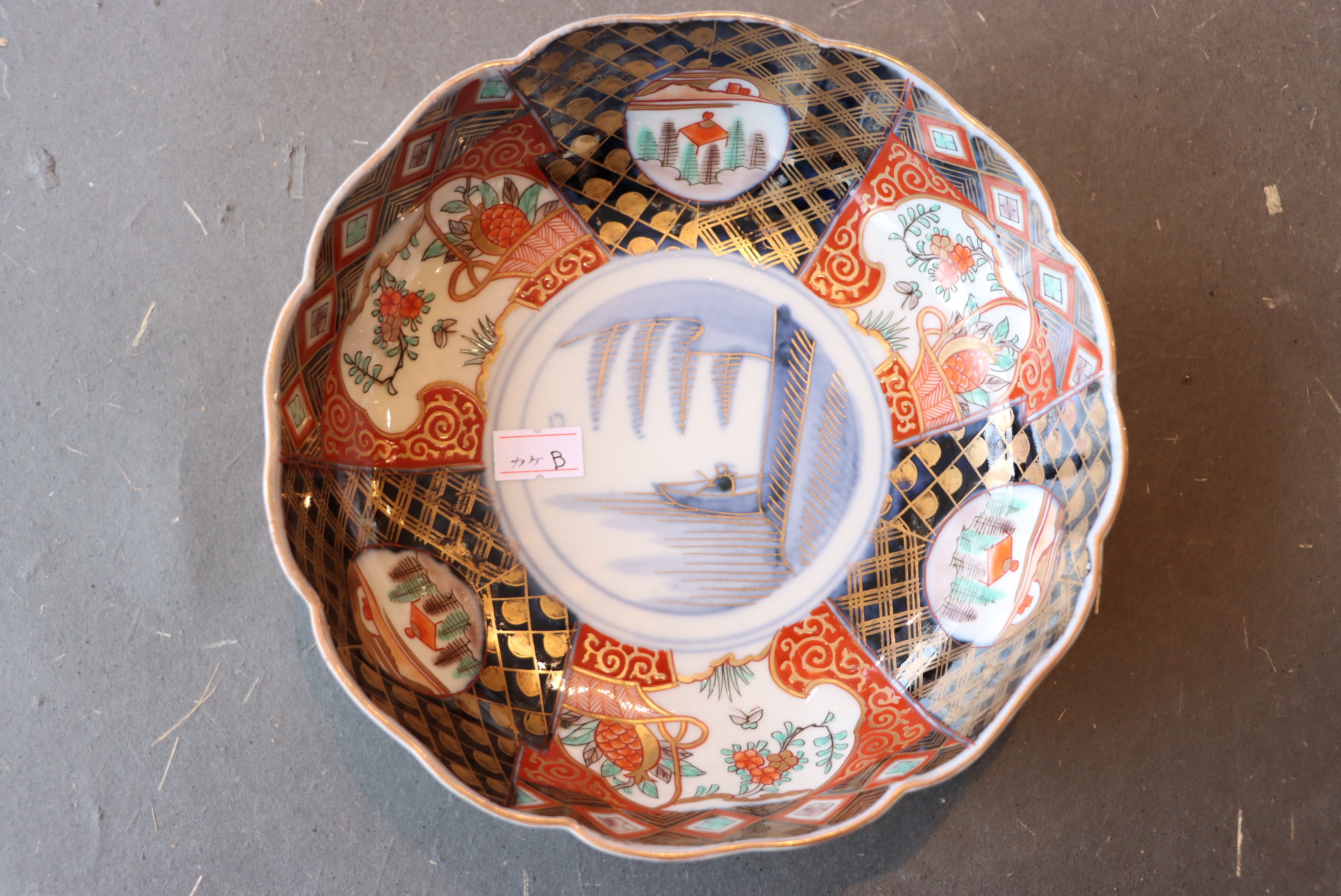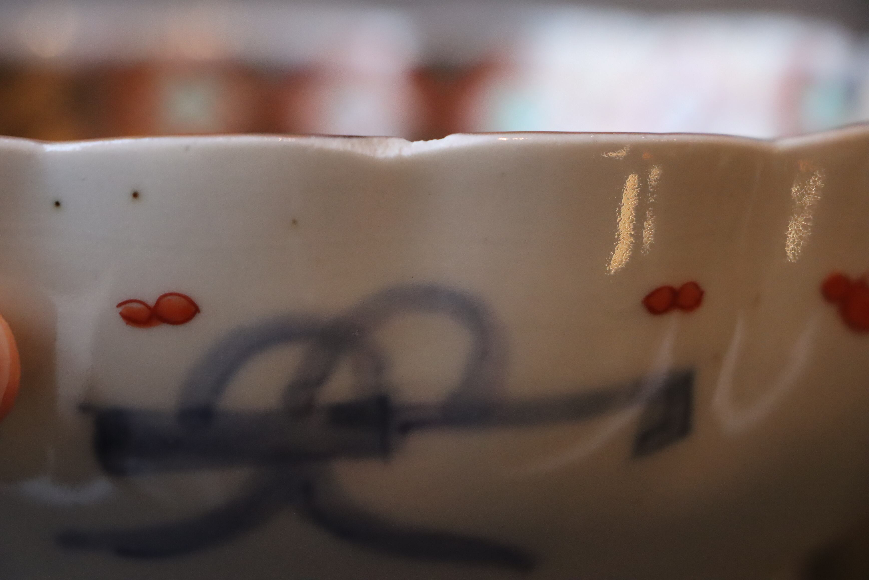 焼成時に窯の中でできる鉄分、くっつき、かまきず、経年による釉薬の薄れがございます。また、一枚一枚手描き、手作りです焼ので器のサイズ(ミリ)、色味、描かれている文様の大きさなど個体差があり、ひとつとして同じものはございません。そういった時代感、個性をご理解いただき、楽しんでくだされば幸いです。電子レンジや食器洗い乾燥機のご使用はお控えください。