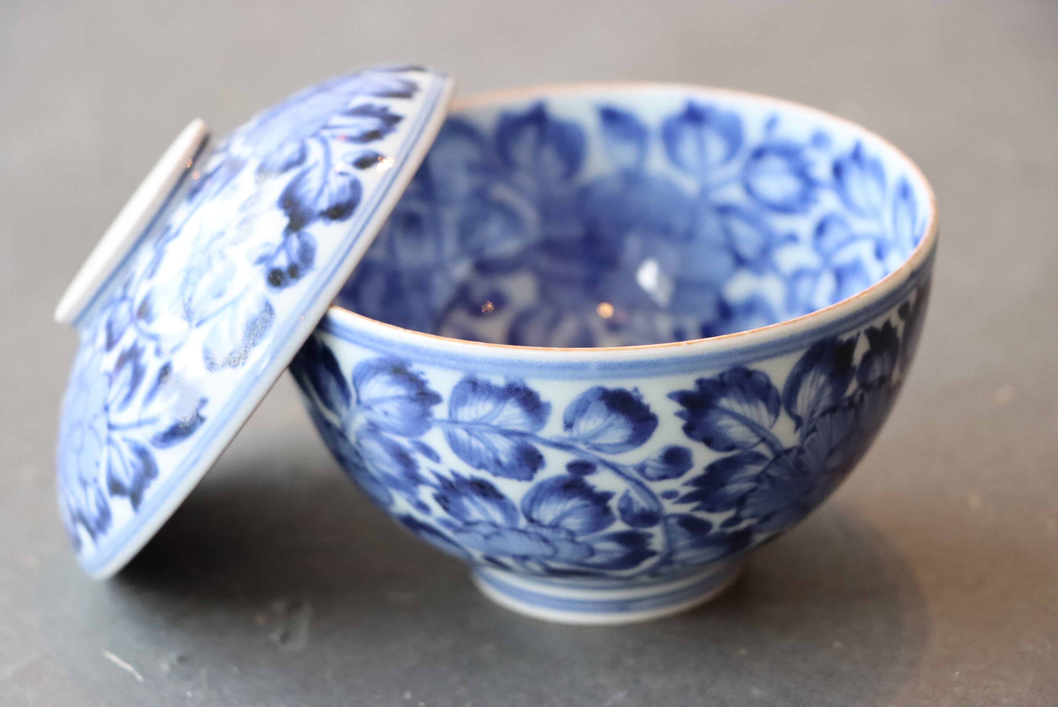 蓋を開けた瞬間、裏側にも、身の内側にも総柄で花唐草がふわりと広がり、思わず見入ってしまうほどの緻密さです✨