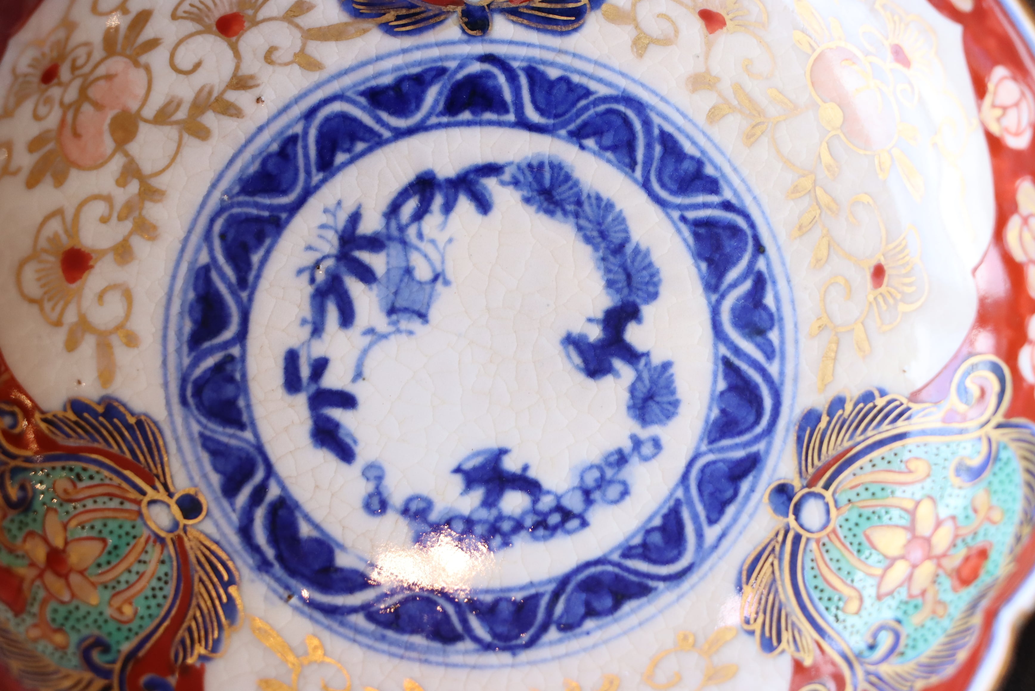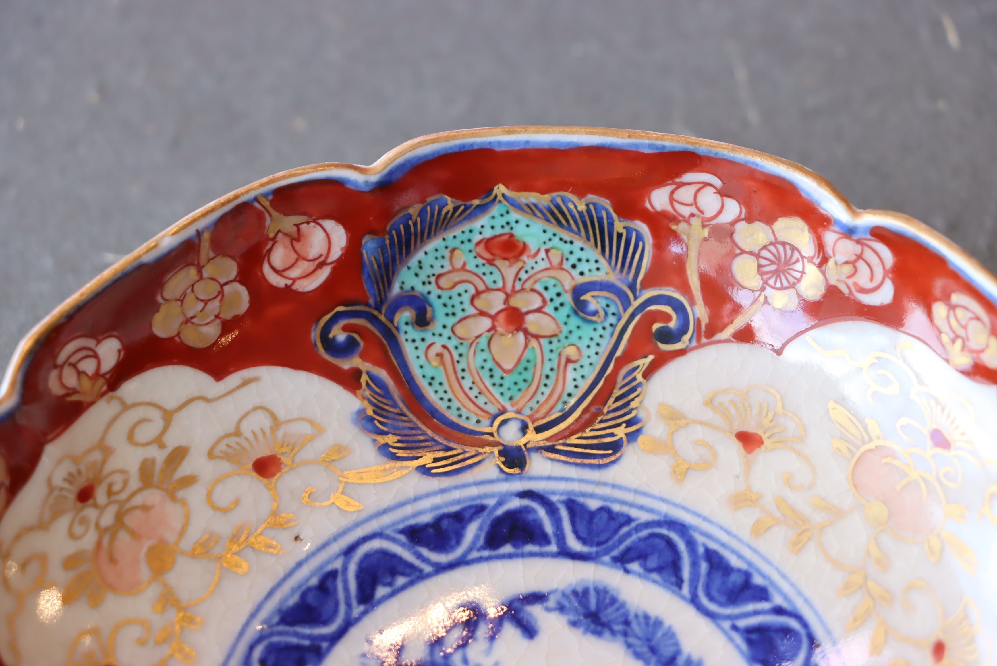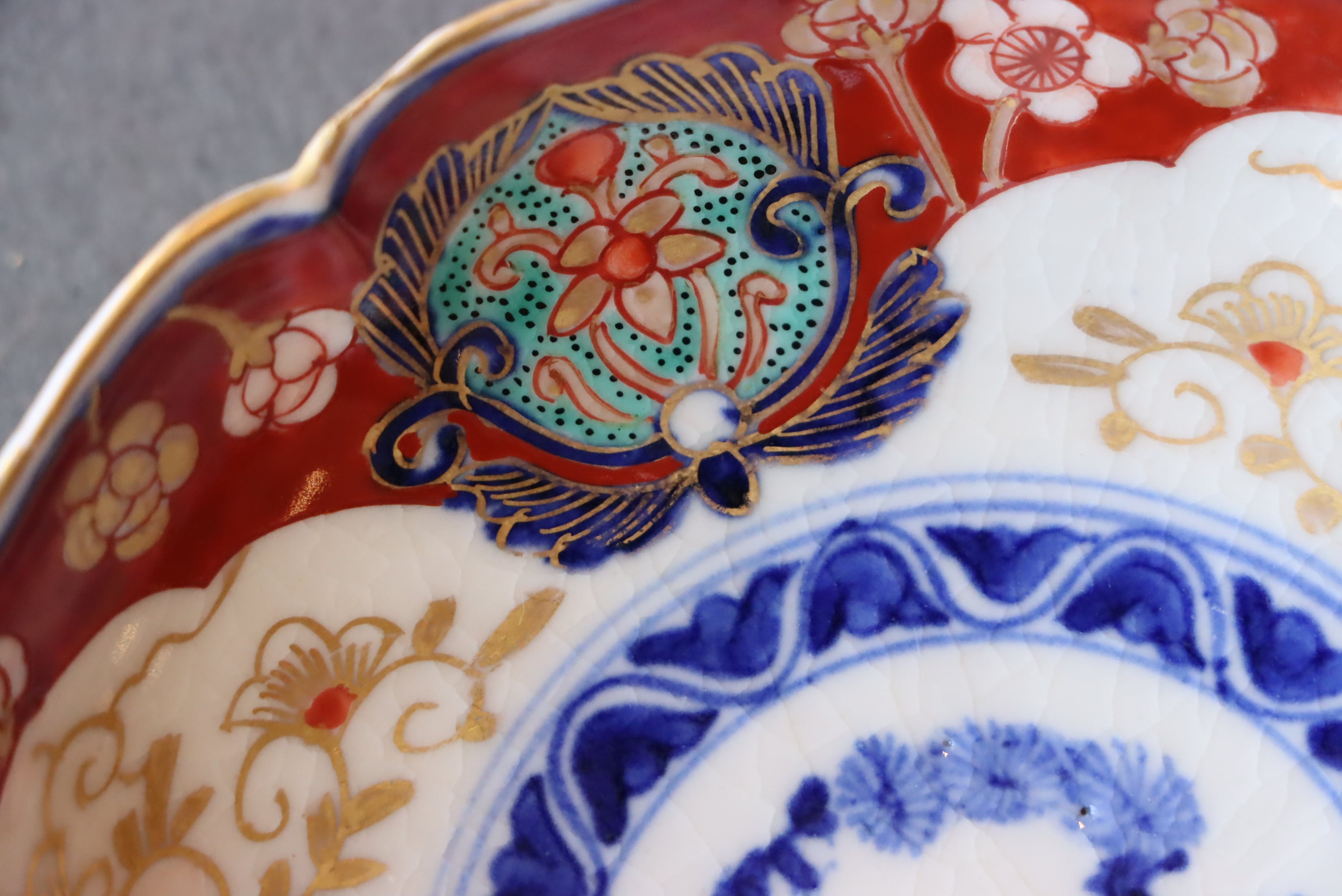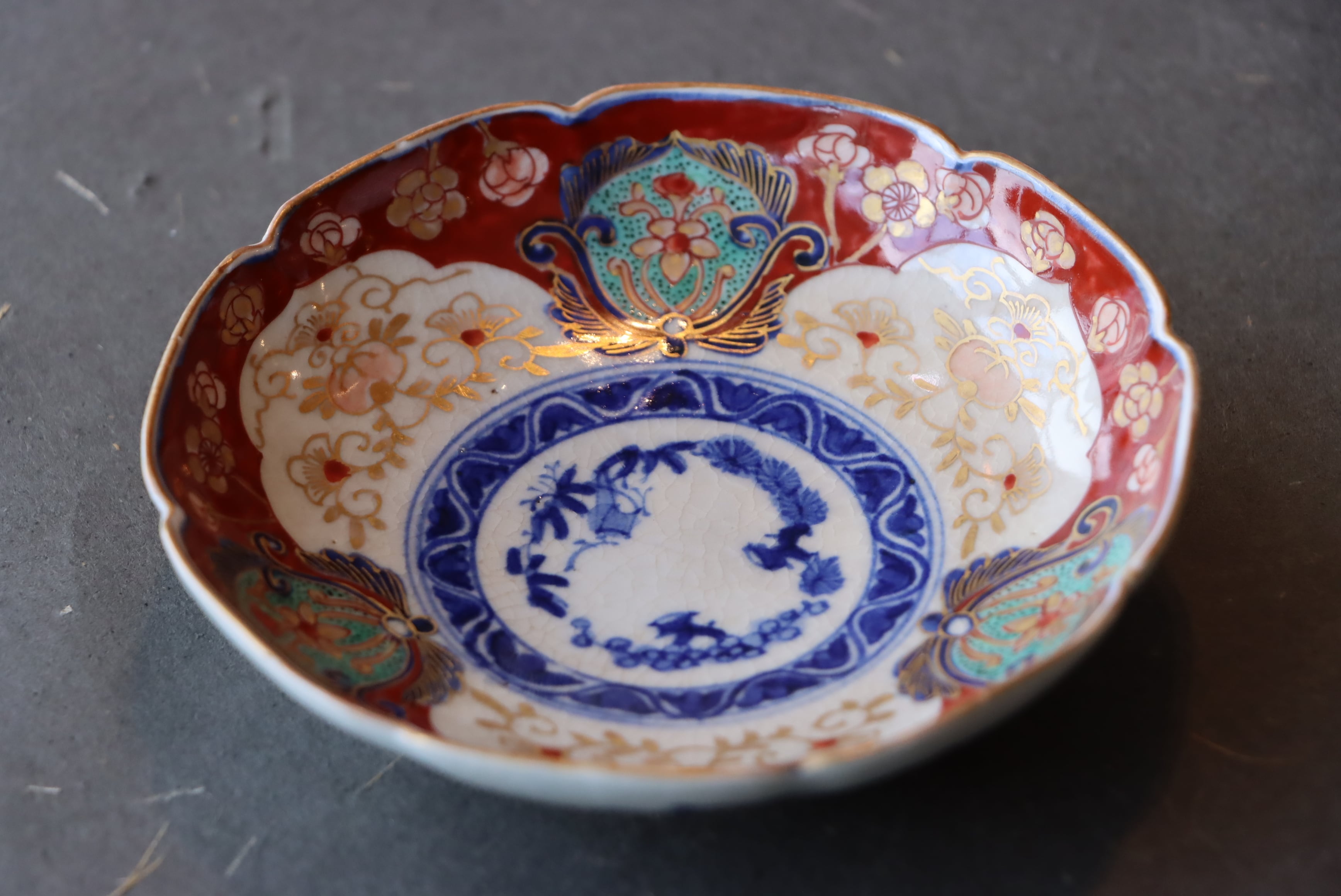 【Imari small plate with flower arabesque design in overglaze enamels.】