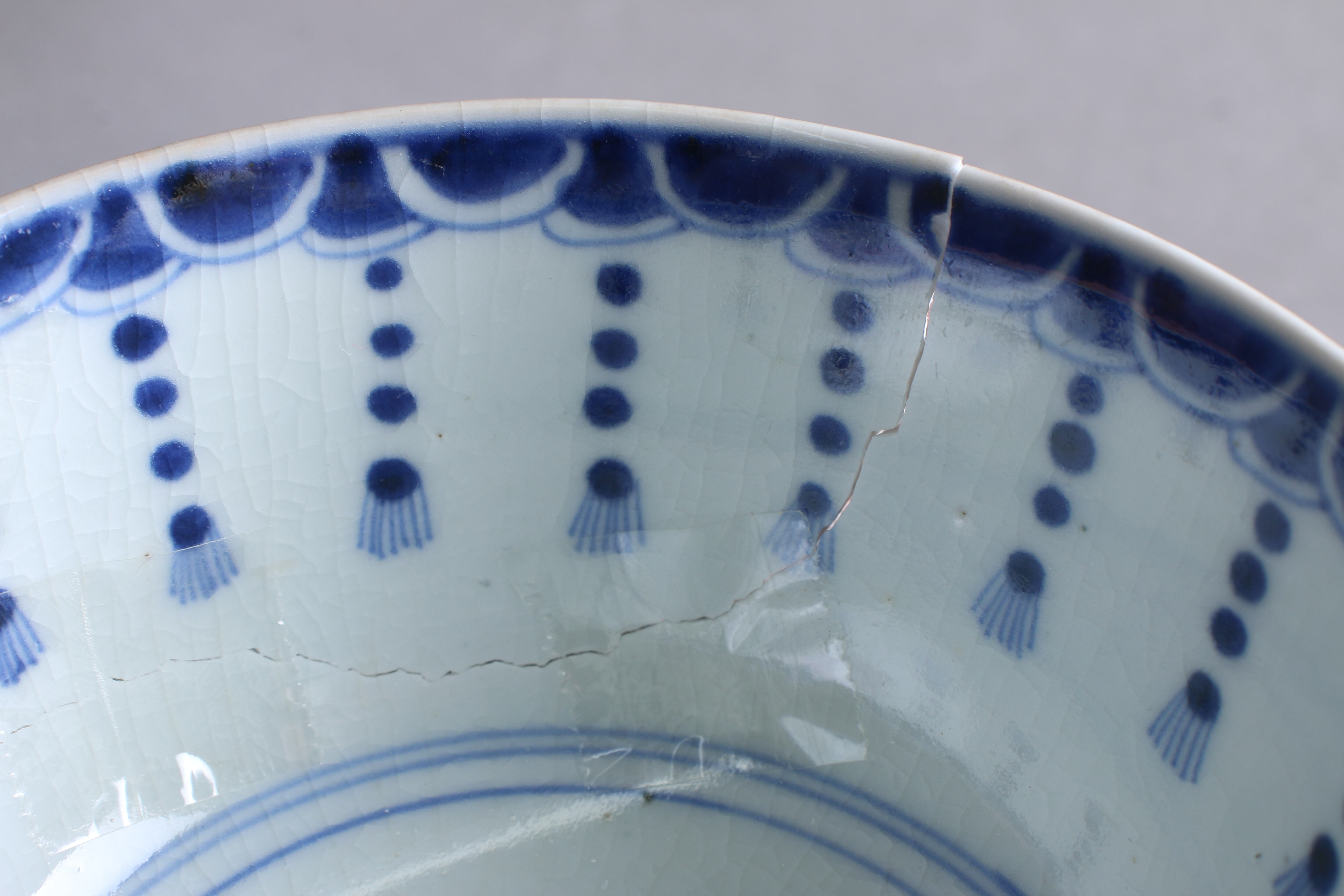 甘手→焼成が不十分なために、器の表面全体に貫入が入ってしまったこと。窯出しの時に、急激に温度が下がると素地と釉薬との収縮率の違いから、起こること。