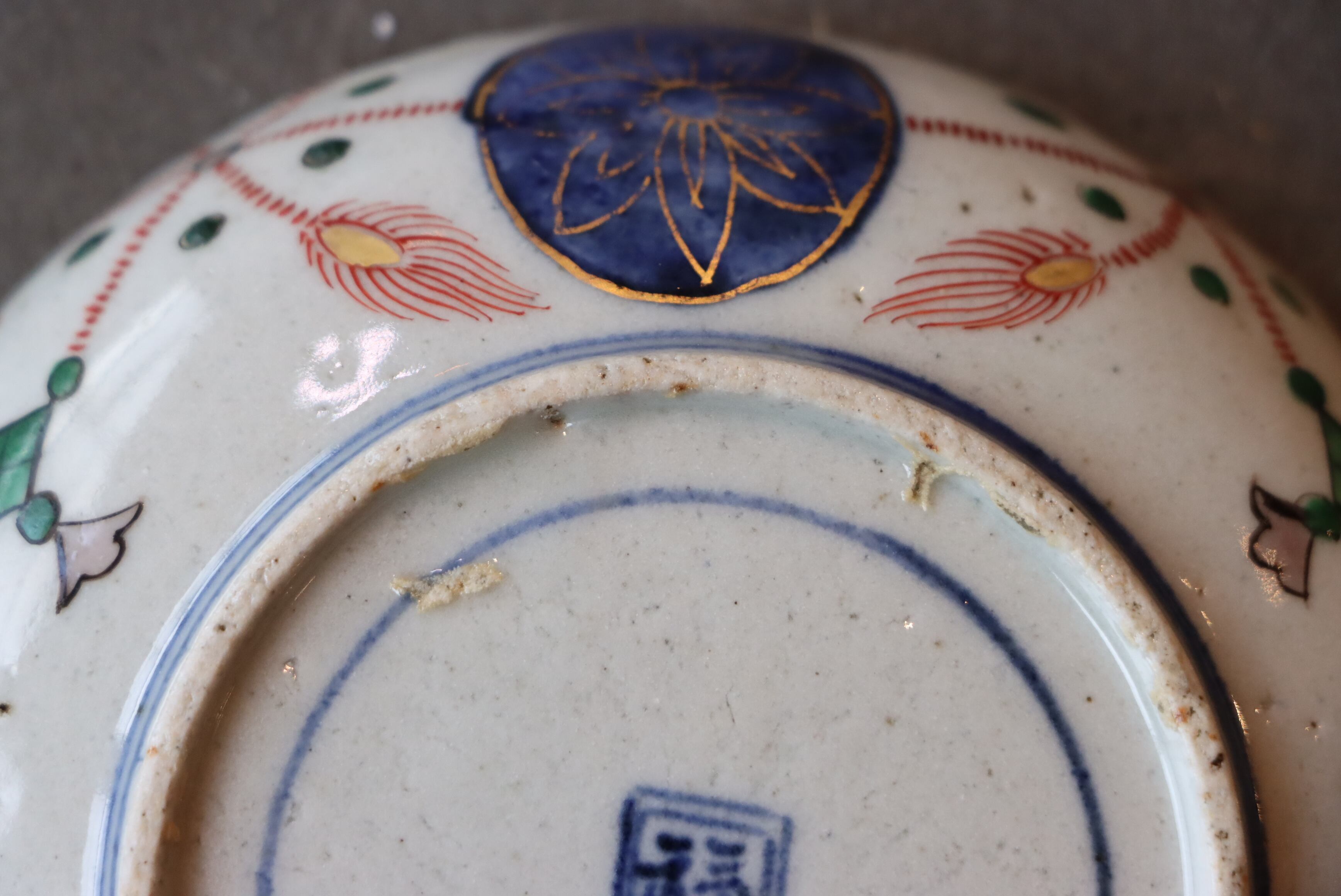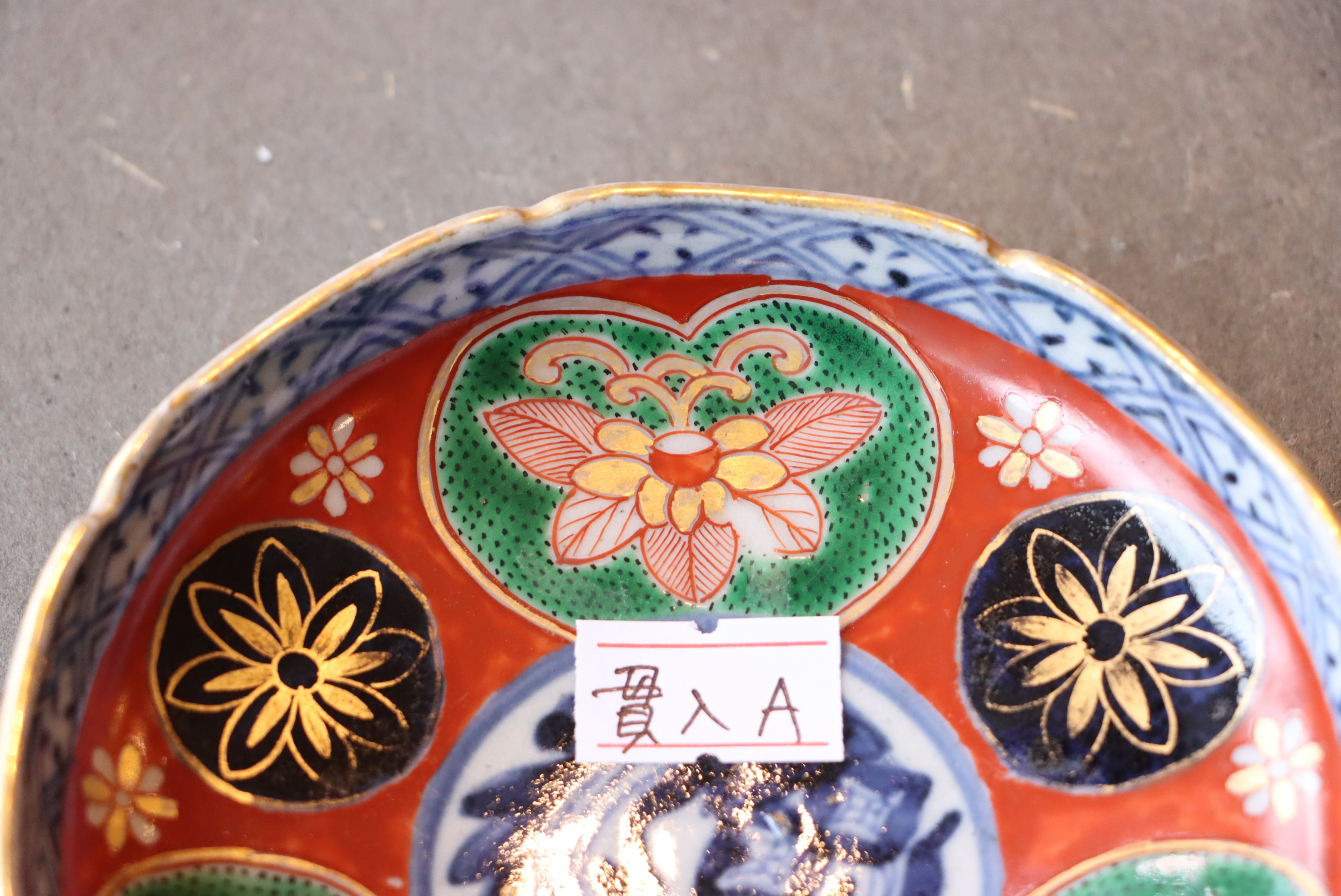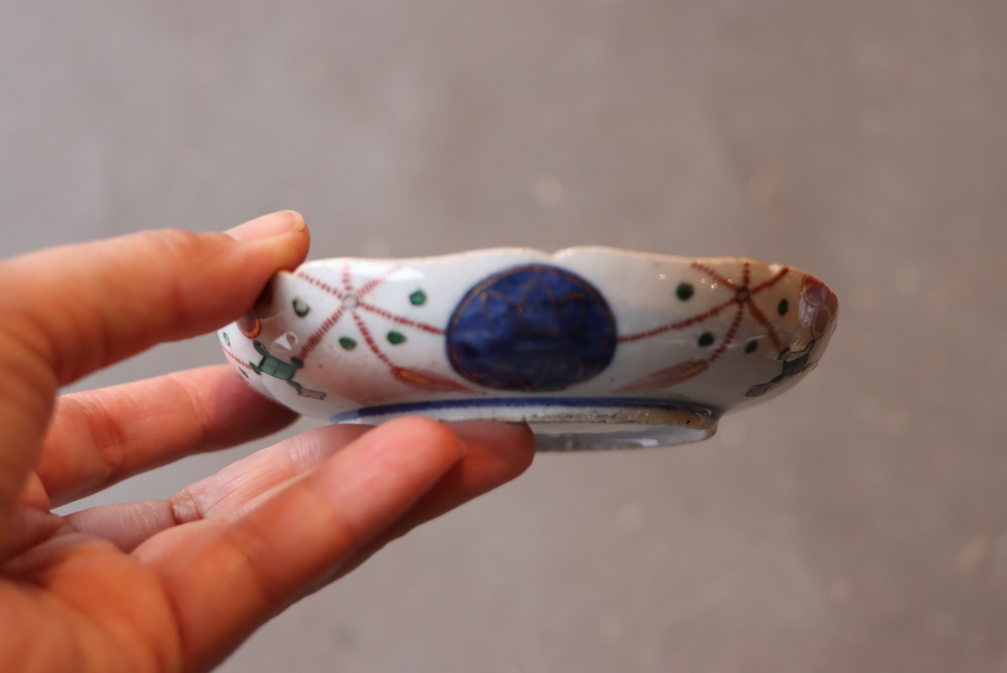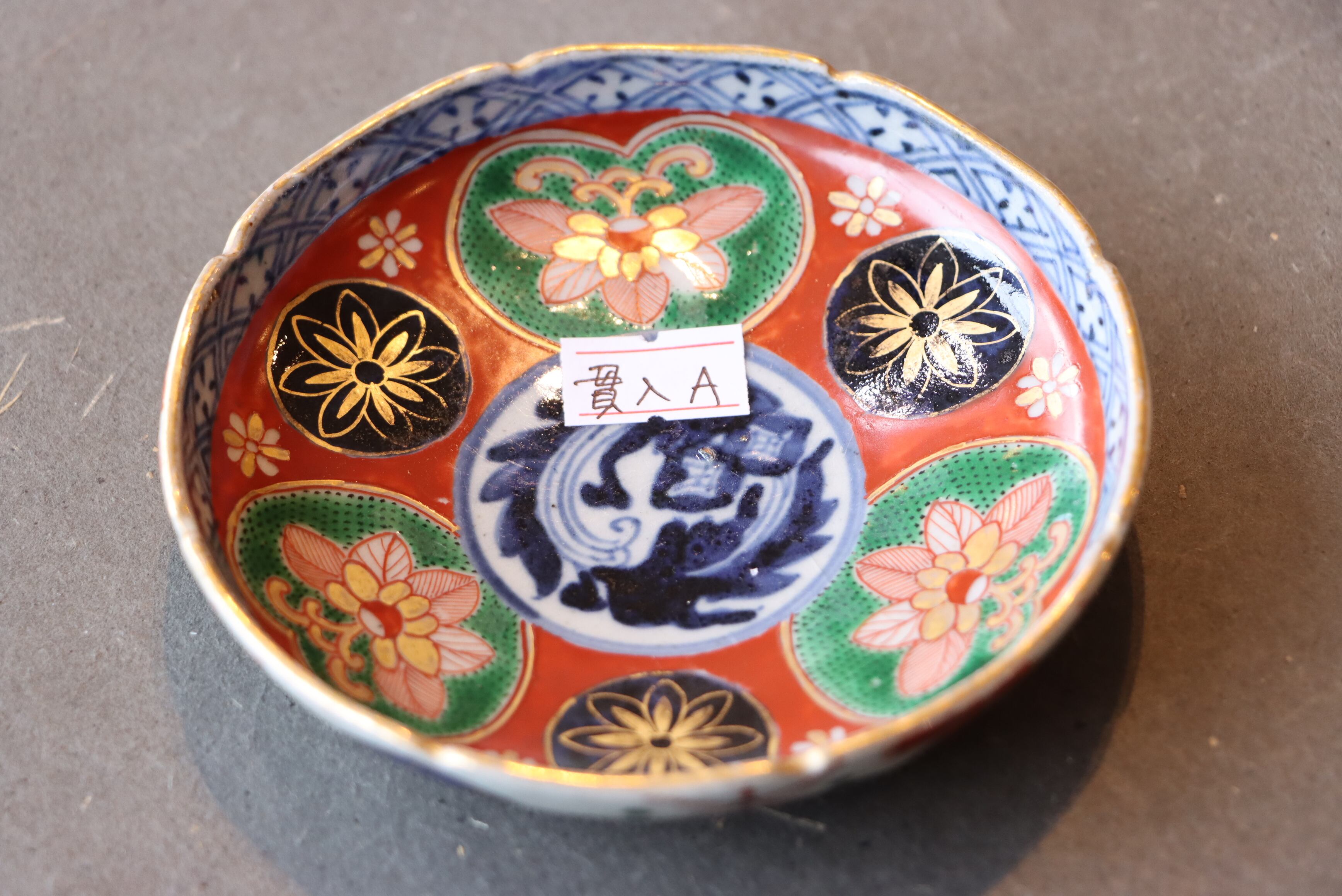 貫入 伊万里焼 色絵 花七宝瓔珞文 小皿 A アウトレット