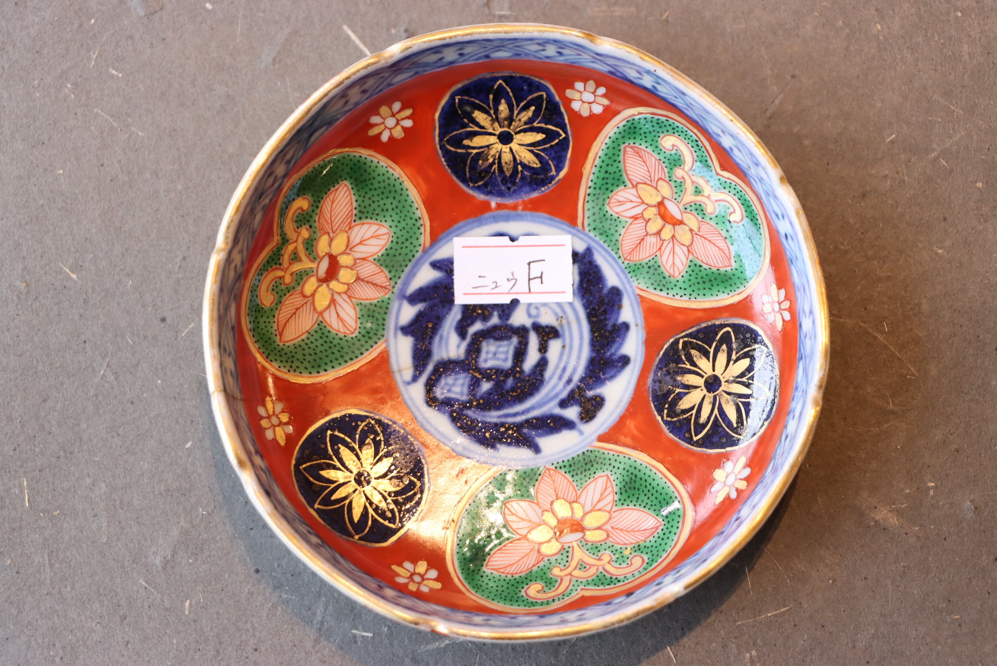 焼成時に窯の中でできる鉄分、くっつき、かまきず、ピンホール、経年による釉薬の薄れがございます。また、一枚一枚手描き、手作りですので器のサイズ(ミリ)、色味、描かれている文様の大きさなど個体差があり、ひとつとして同じものはございません。そういった時代感、個性をご理解いただき、楽しんでくだされば幸いです。電子レンジや食器洗い乾燥機のご使用はお控えください。