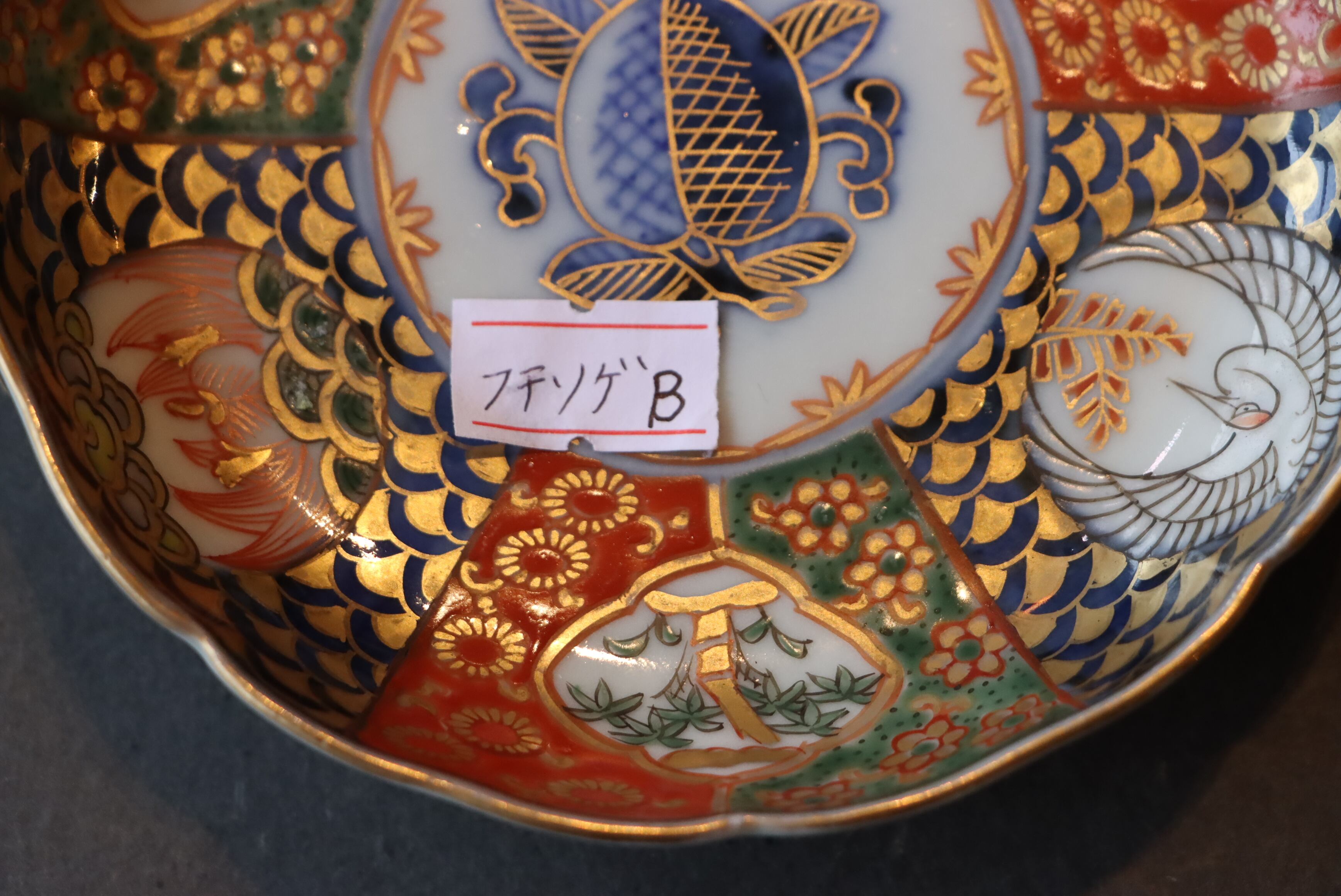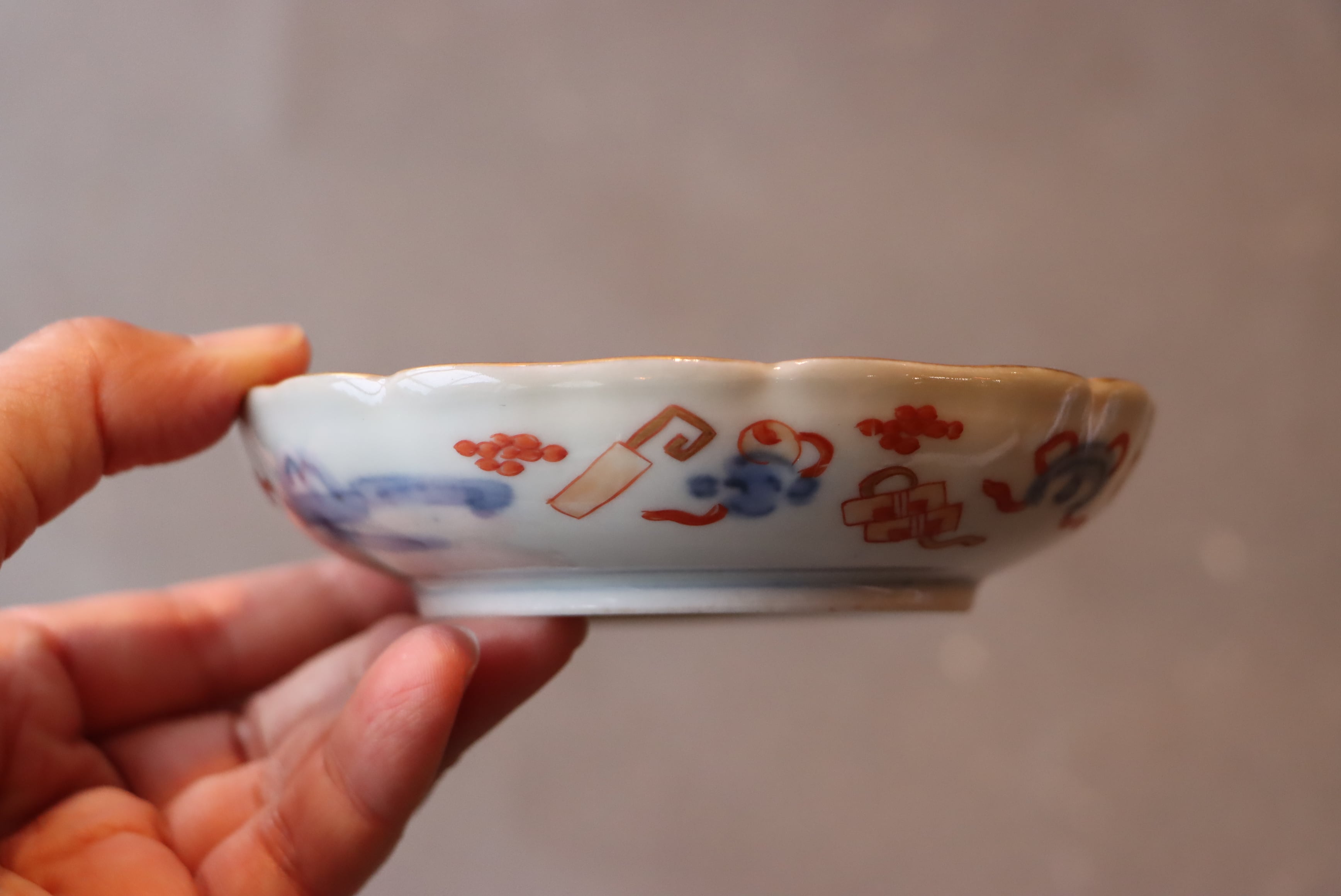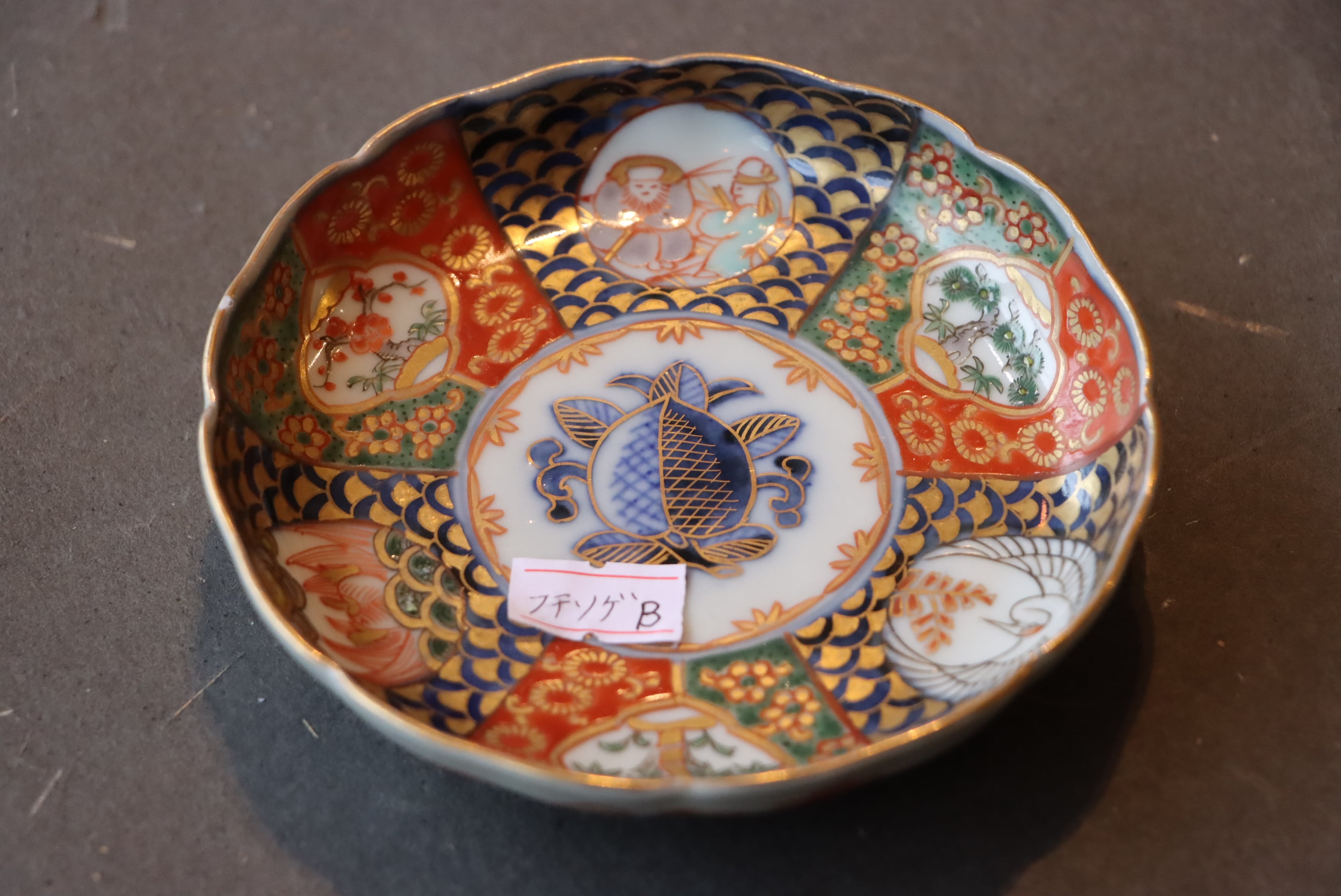 フチソゲ 伊万里焼 色絵 桃手 鶴亀翁文 小皿 通りもの B アウトレット