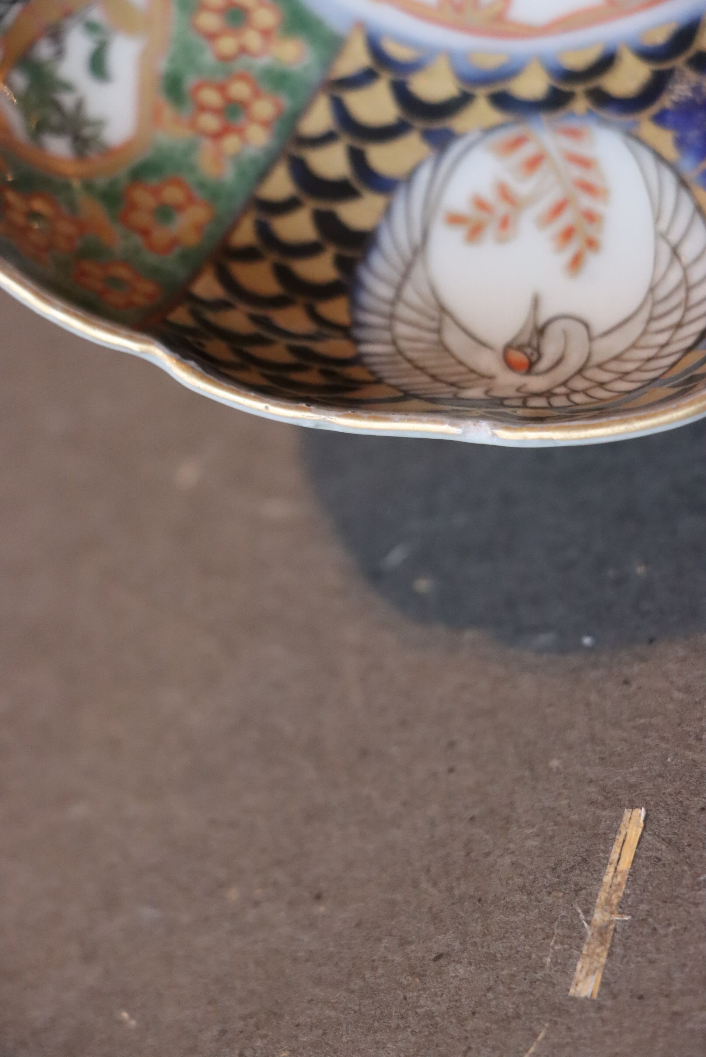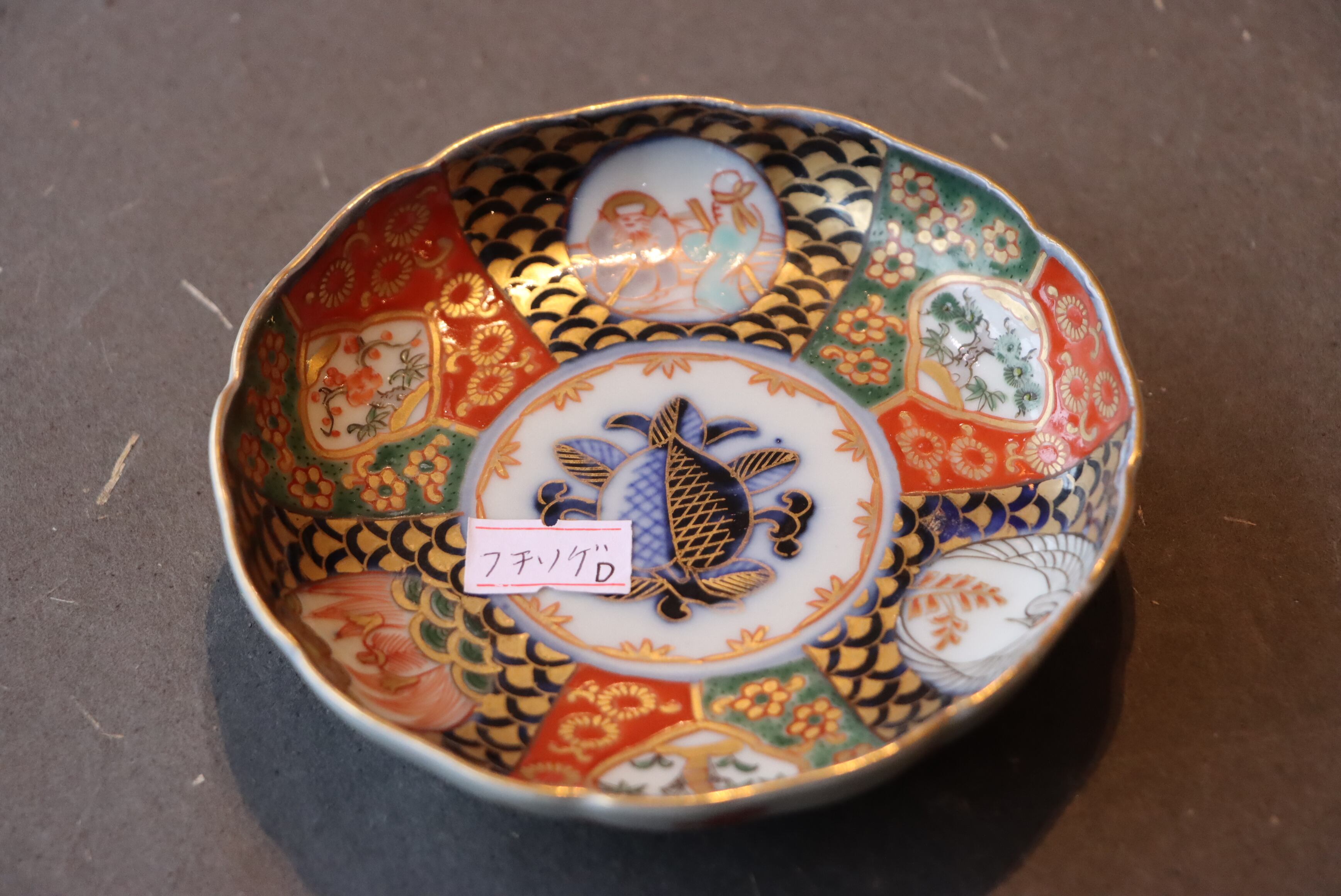 焼成時に窯の中でできる鉄分、くっつき、かまきず、ピンホール、経年による釉薬の薄れがございます。また、一枚一枚手描き、手作りですので器のサイズ(ミリ)、色味、描かれている文様の大きさなど個体差があり、ひとつとして同じものはございません。そういった時代感、個性をご理解いただき、楽しんでくだされば幸いです。電子レンジや食器洗い乾燥機のご使用はお控えください。