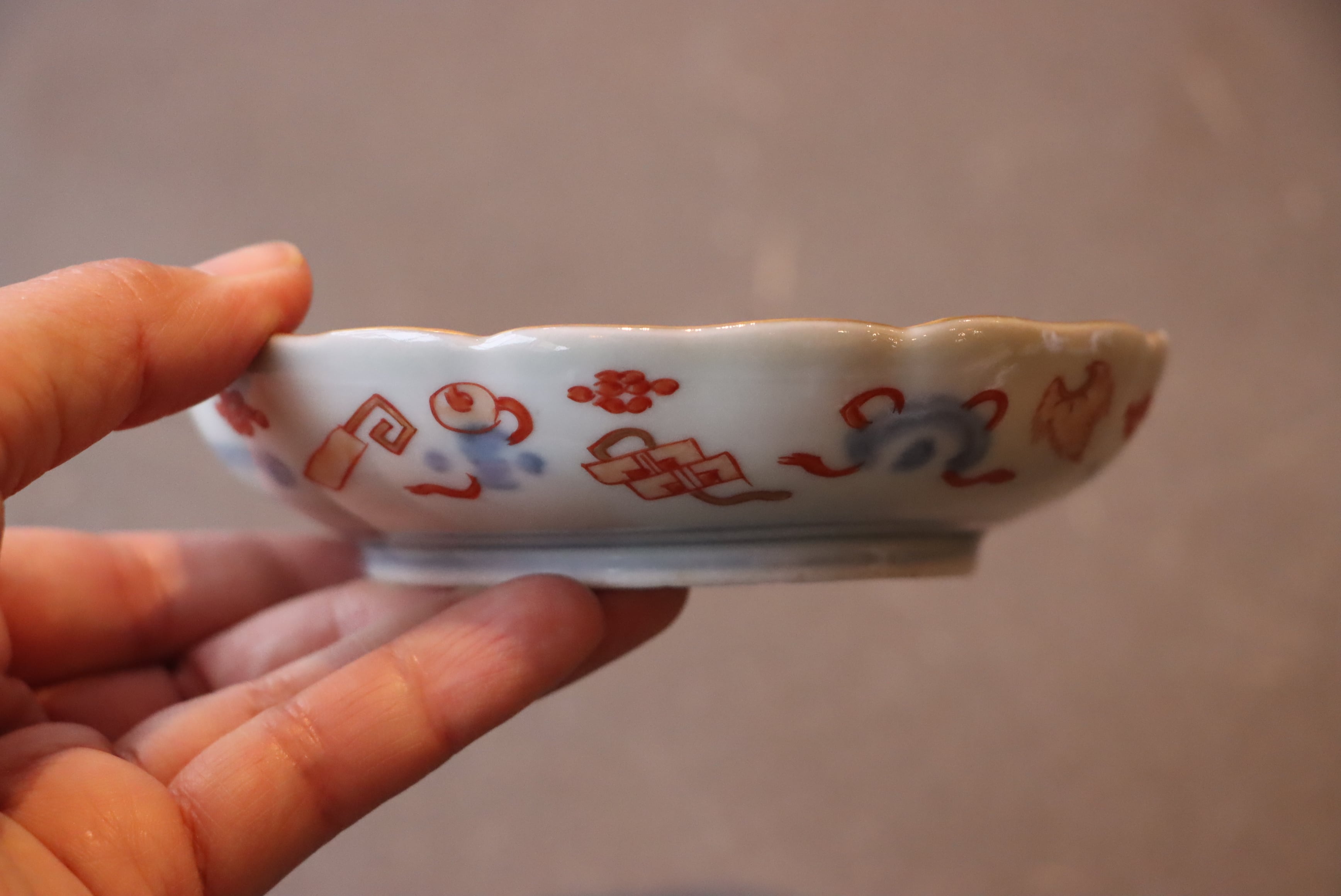 カケ 伊万里焼 色絵 桃手 鶴亀翁文 小皿 通りもの E アウトレット