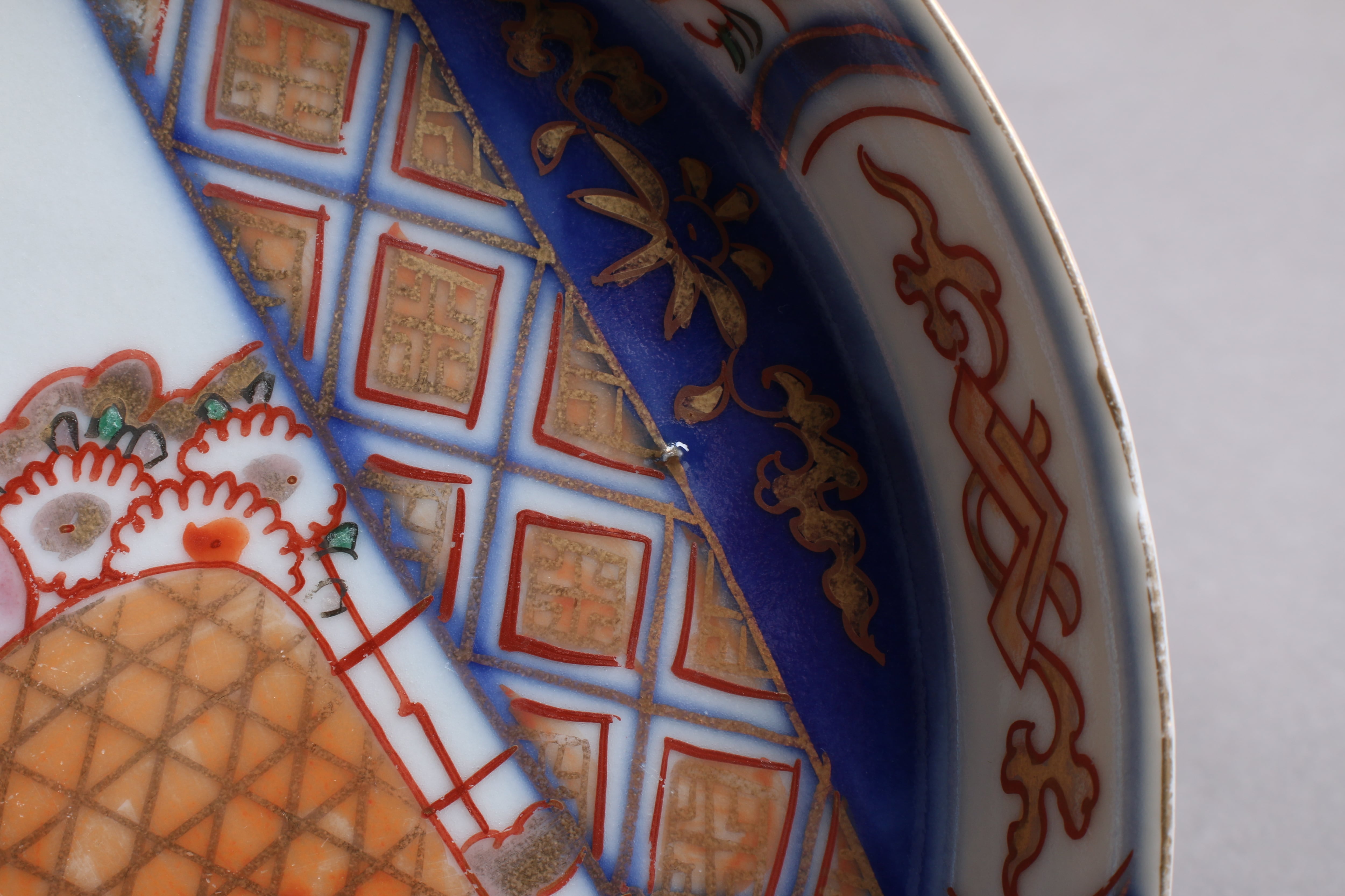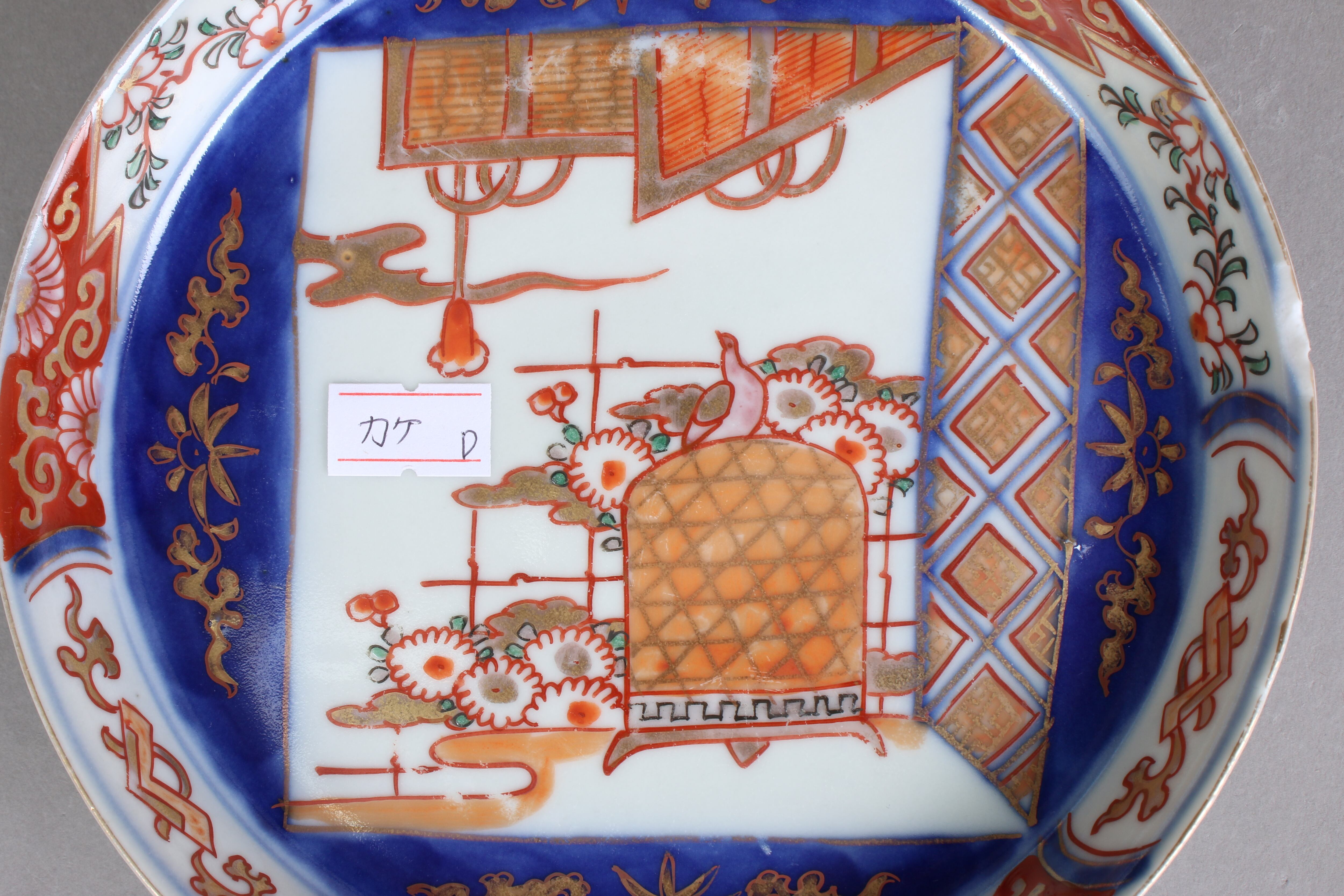 状態:カケ(約2センチ)、ソゲが2箇所あり。金継ぎ用にどうぞ。その他、金彩の薄れ、スレがございます。