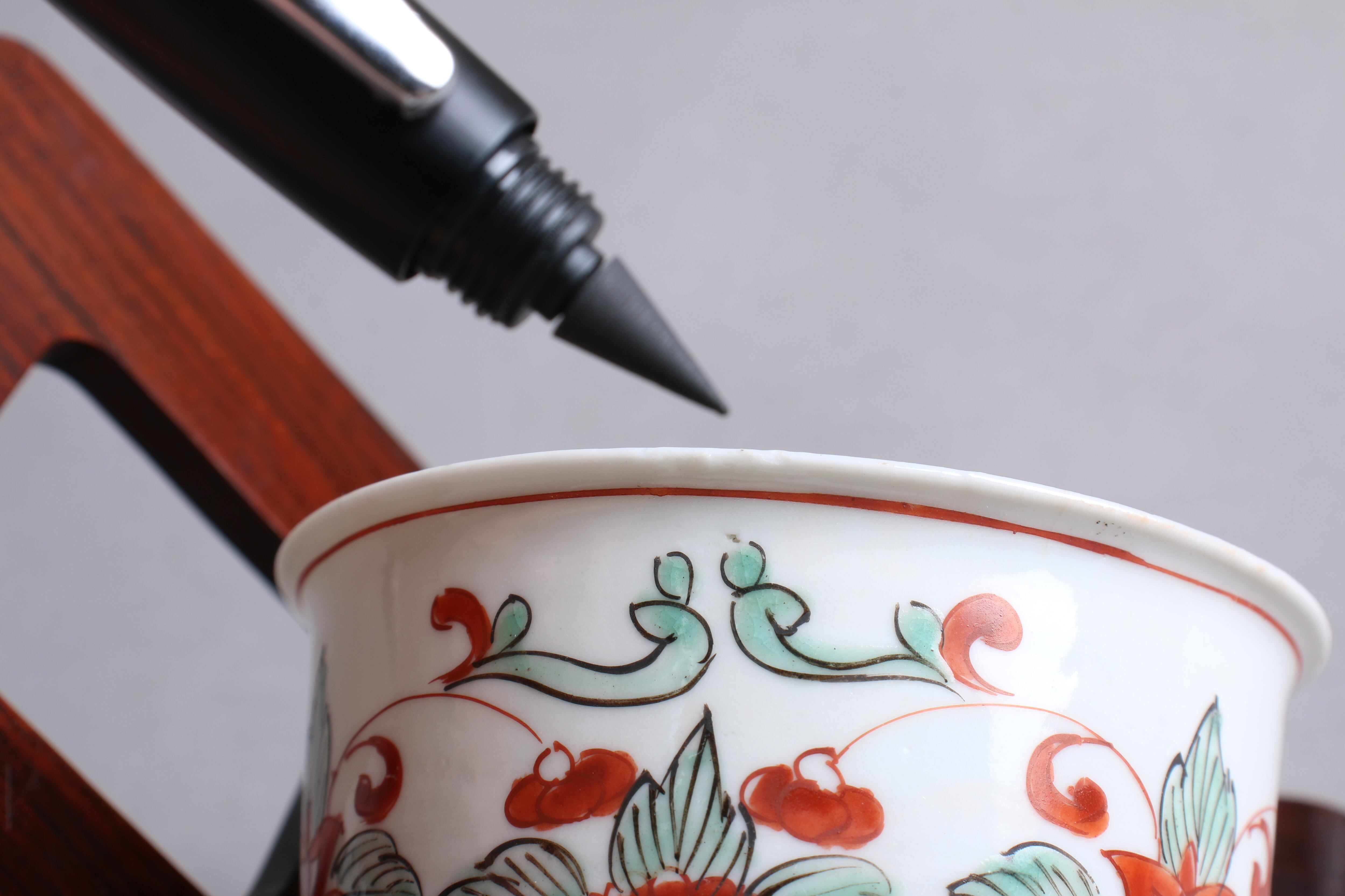 焼成時に窯の中でできる鉄分、くっつき、かまきず、ピンホール、経年による釉薬の薄れがございます。また、一枚一枚手描き、手作りですので器のサイズ(ミリ)、色味、描かれている文様の大きさなど個体差があり、ひとつとして同じものはございません。そういった時代感、個性をご理解いただき、楽しんでくだされば幸いです。電子レンジや食器洗い乾燥機のご使用はお控えください。