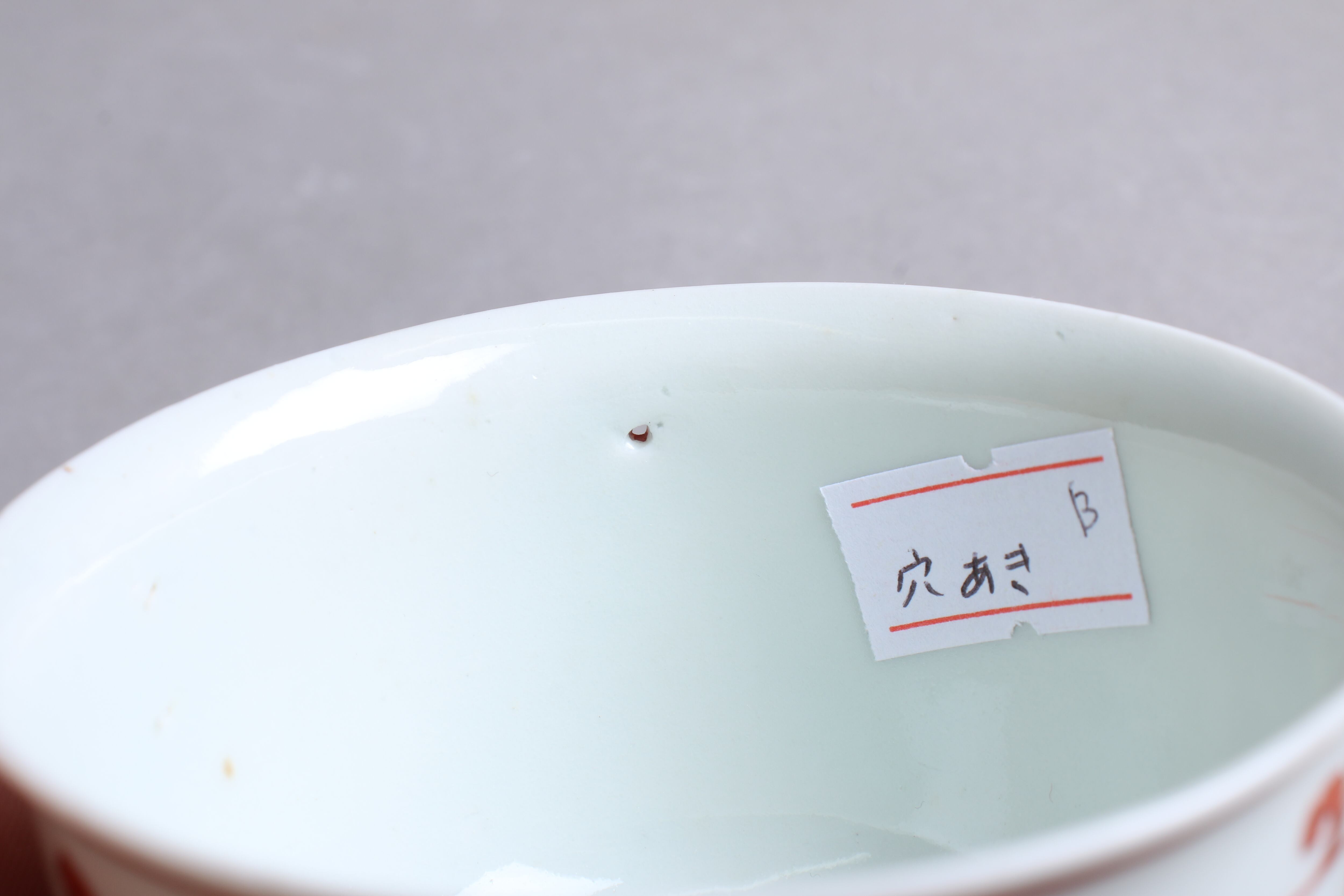 焼成時に窯の中でできる鉄分、くっつき、かまきず、ピンホール、経年による釉薬の薄れがございます。また、一枚一枚手描き、手作りですので器のサイズ(ミリ)、色味、描かれている文様の大きさなど個体差があり、ひとつとして同じものはございません。そういった時代感、個性をご理解いただき、楽しんでくだされば幸いです。電子レンジや食器洗い乾燥機のご使用はお控えください。