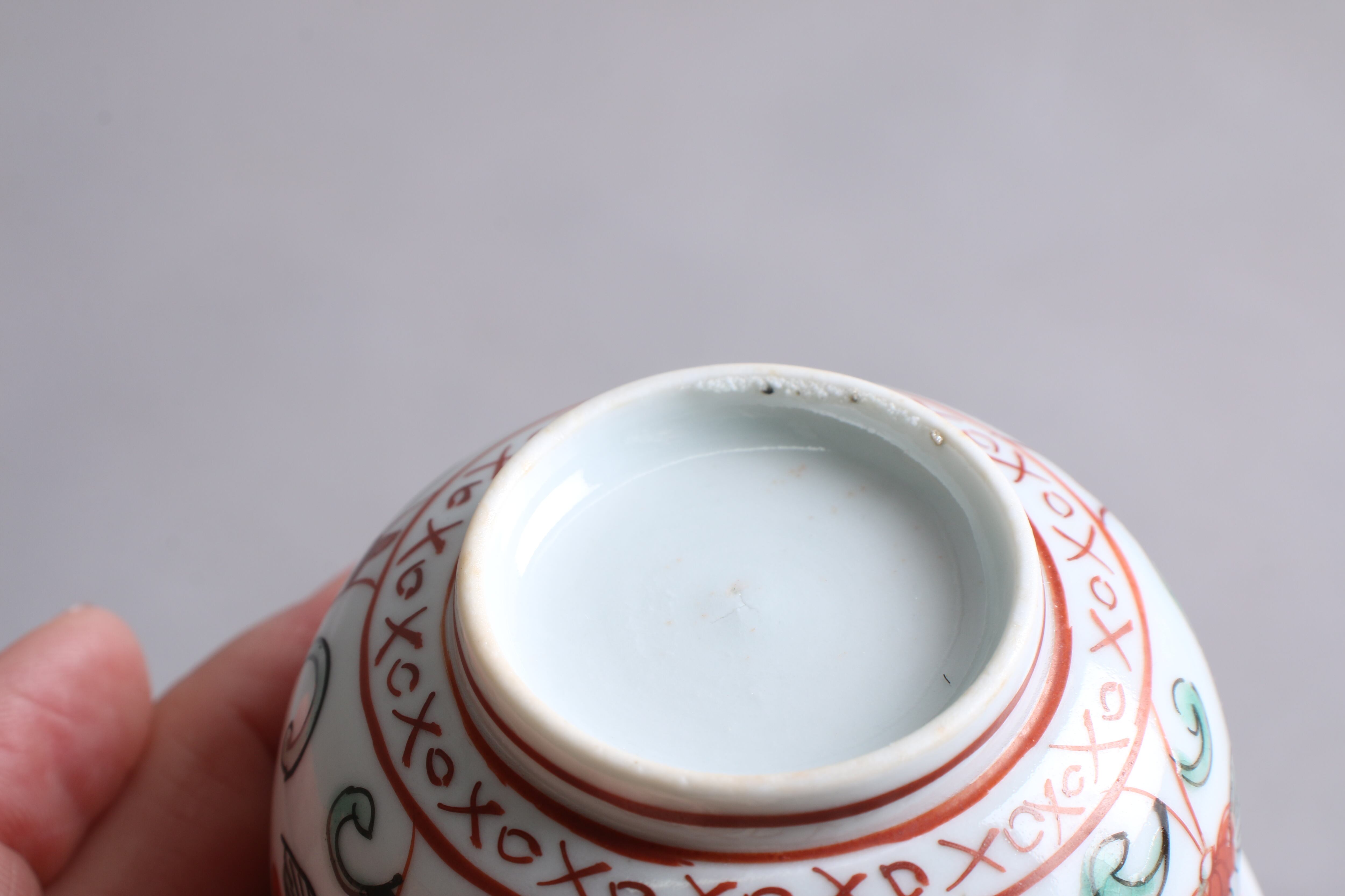 焼成時に窯の中でできる鉄分、くっつき、かまきず、ピンホール、経年による釉薬の薄れがございます。また、一枚一枚手描き、手作りですので器のサイズ(ミリ)、色味、描かれている文様の大きさなど個体差があり、ひとつとして同じものはございません。そういった時代感、個性をご理解いただき、楽しんでくだされば幸いです。電子レンジや食器洗い乾燥機のご使用はお控えください。