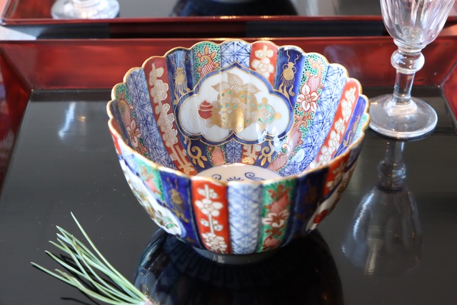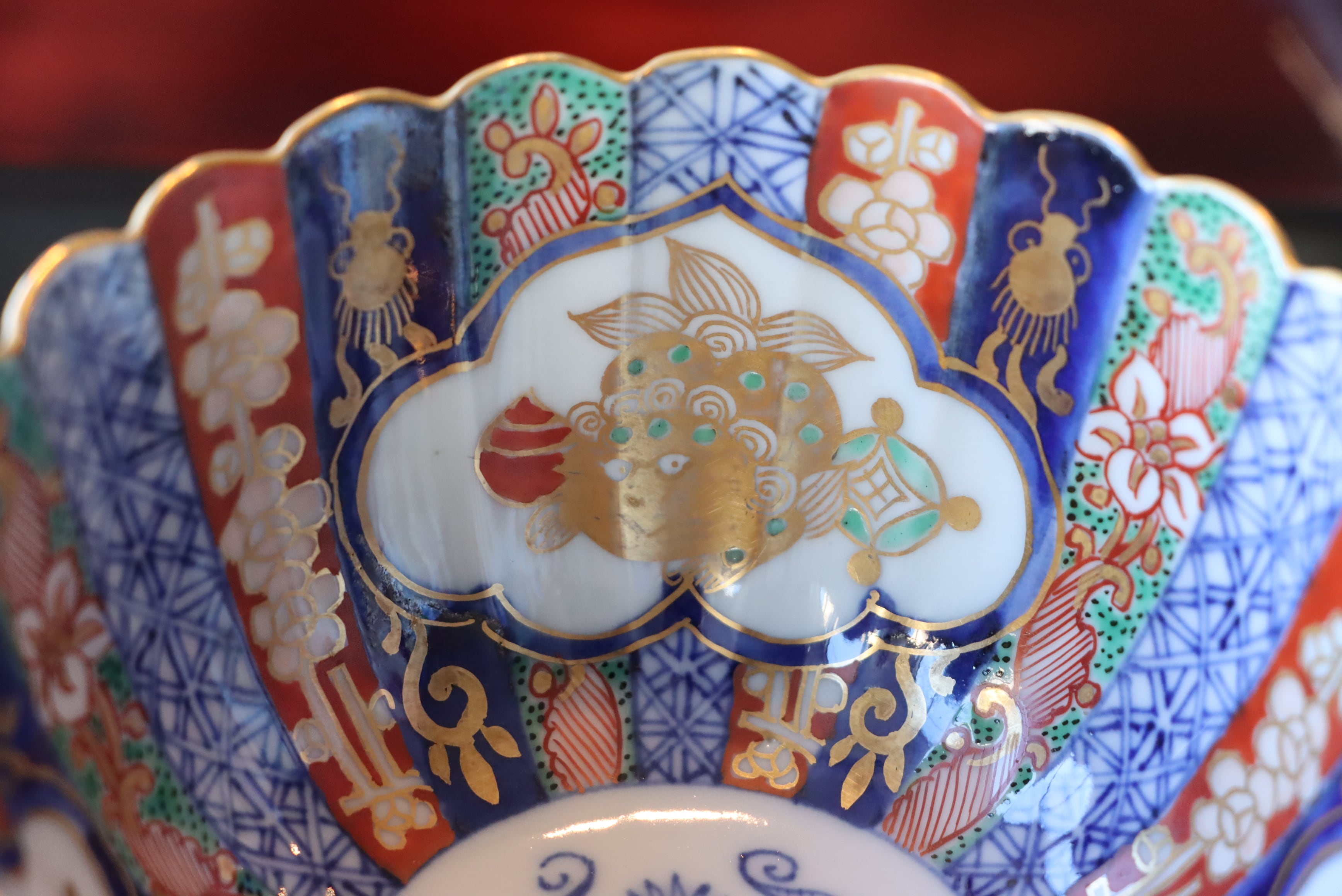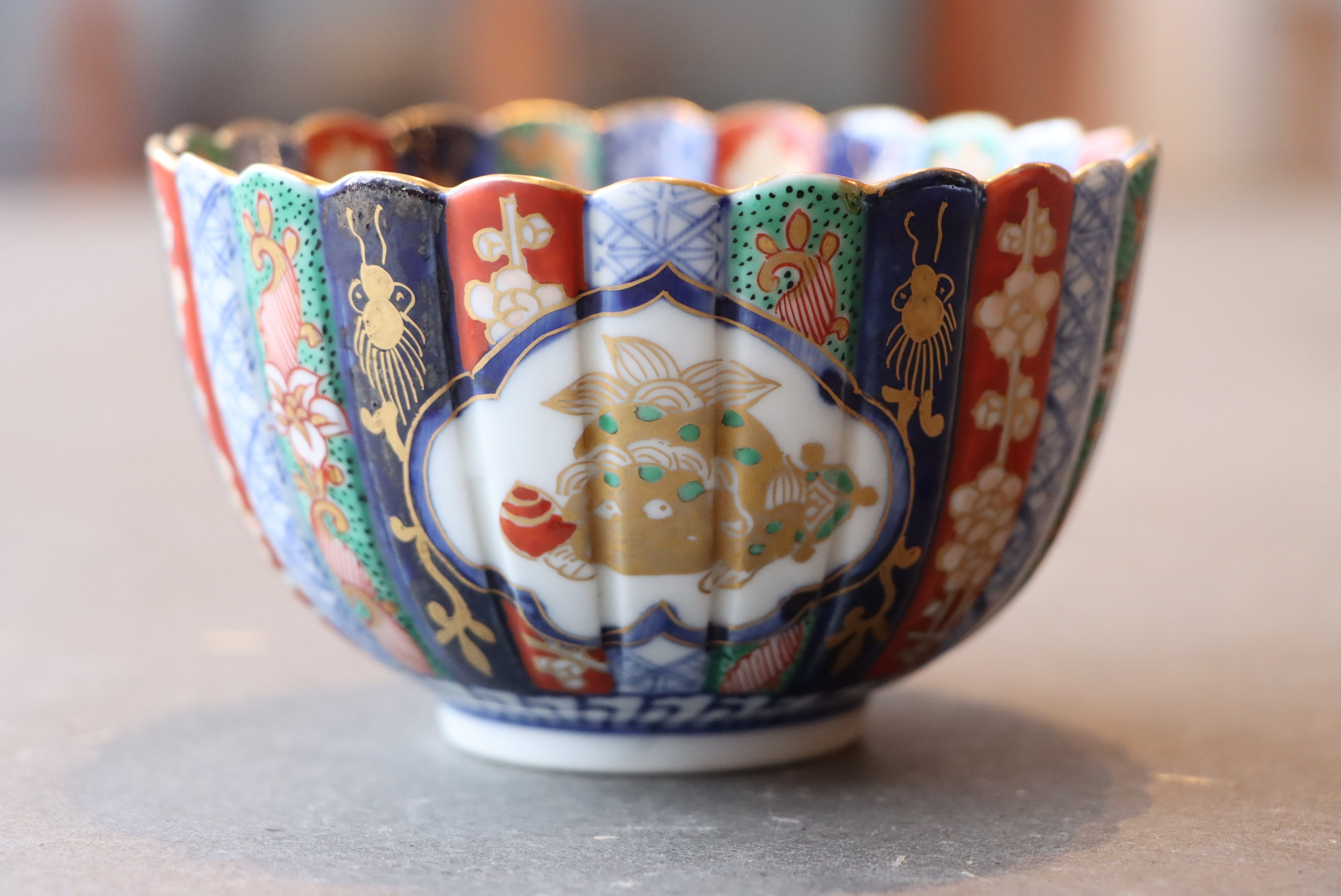 【Daisyo-ji Imari "Mukouzuke" cup with lion and jewel design in overglaze enamels.】