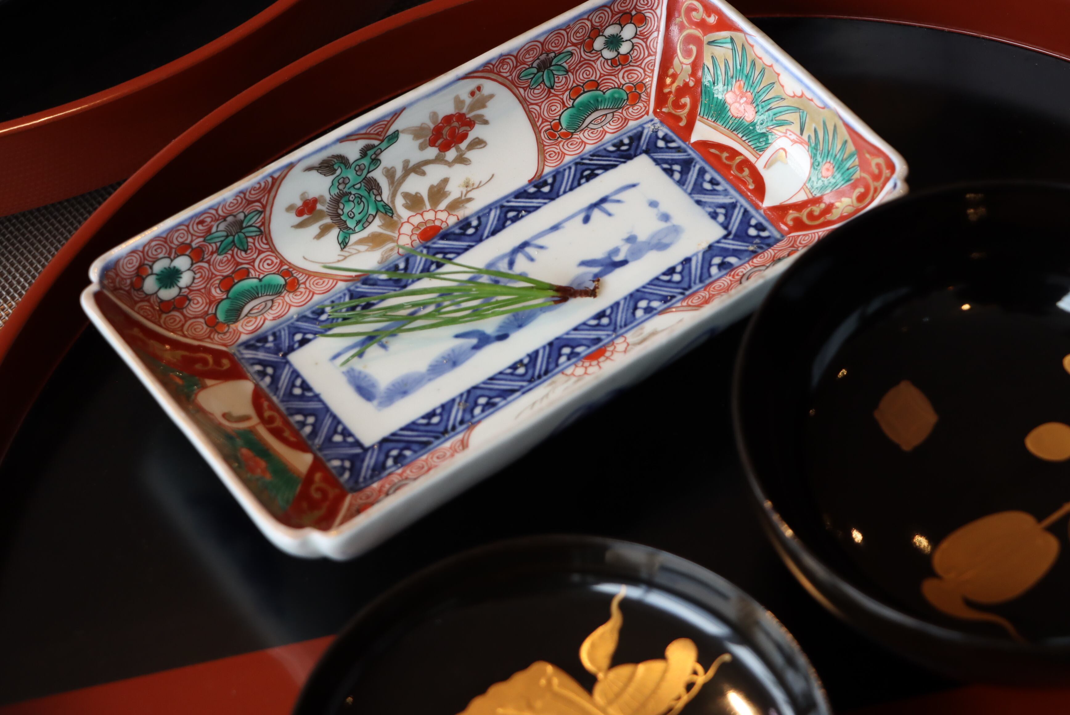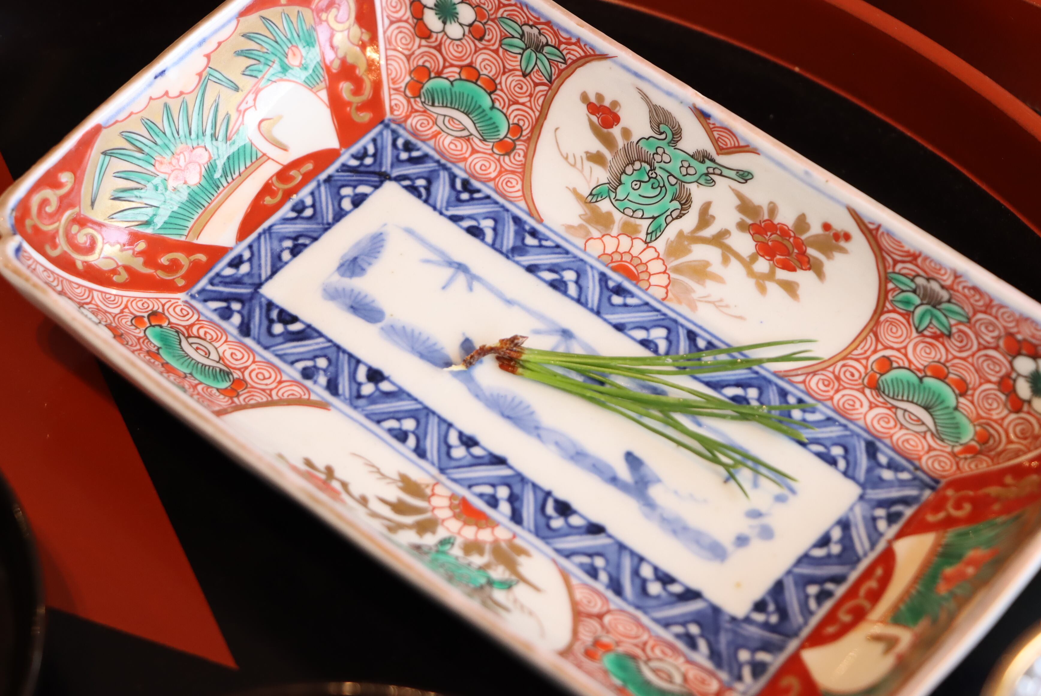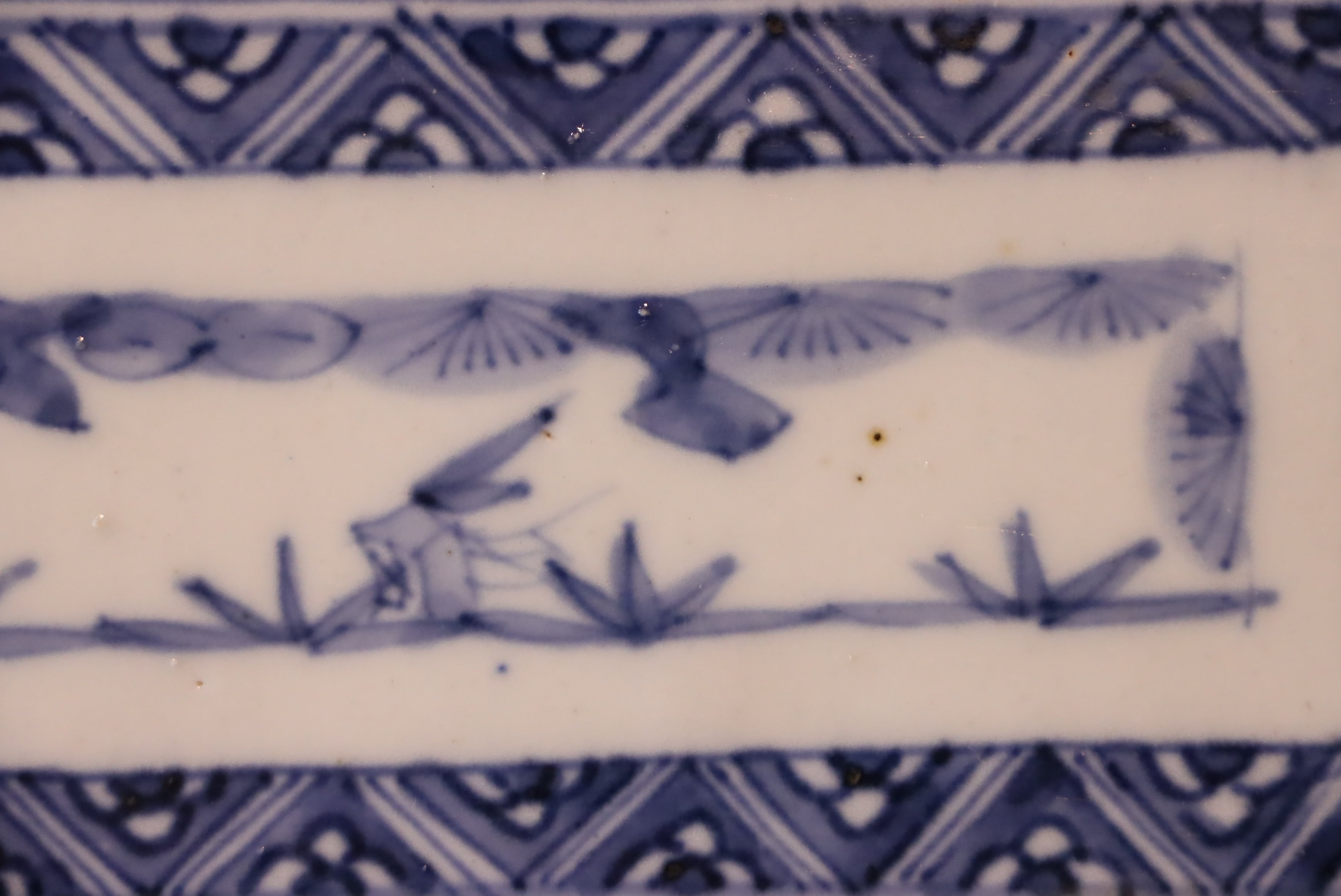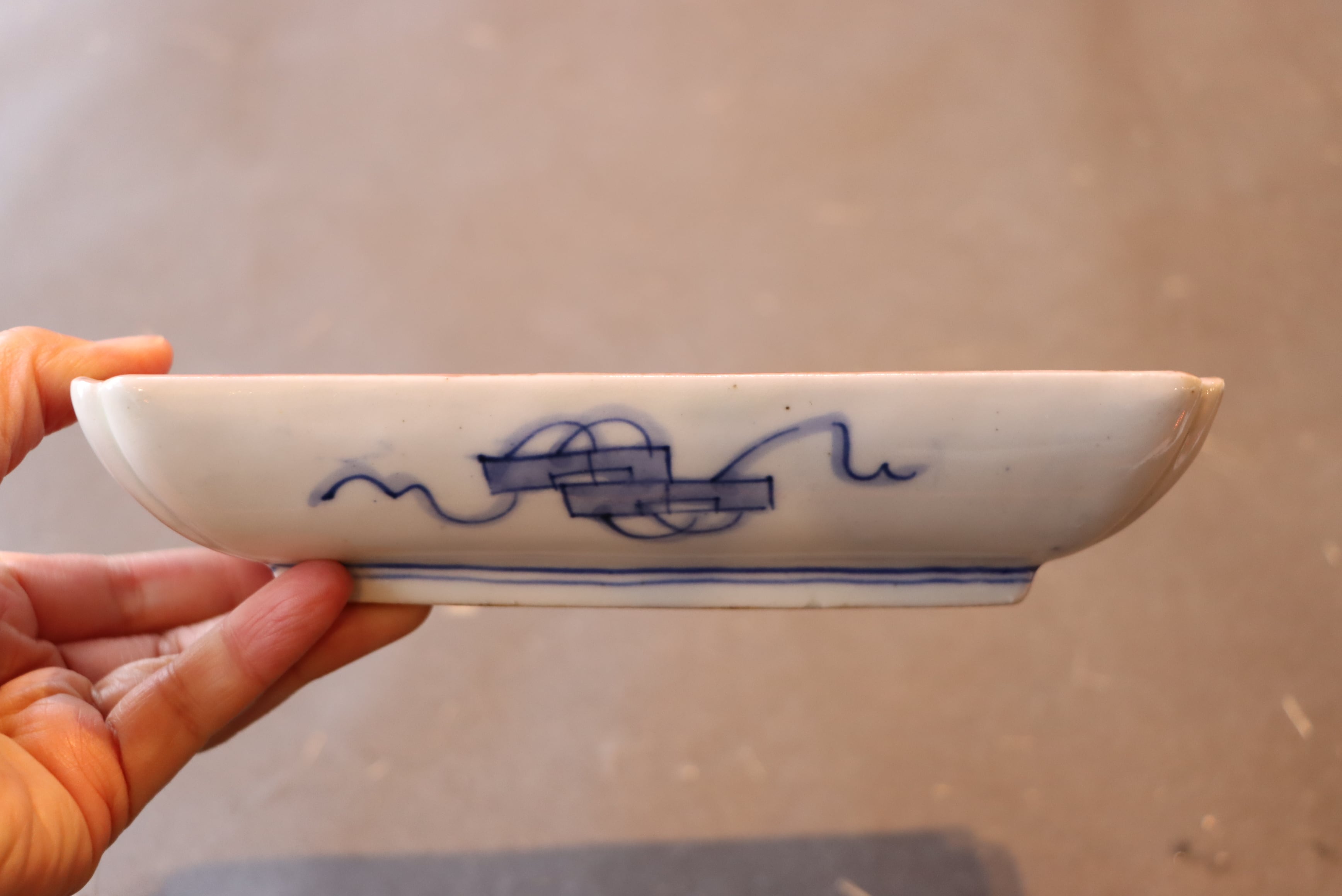 【Imari rectangular plate with lion, peony and white heron design in overglaze enamels.】