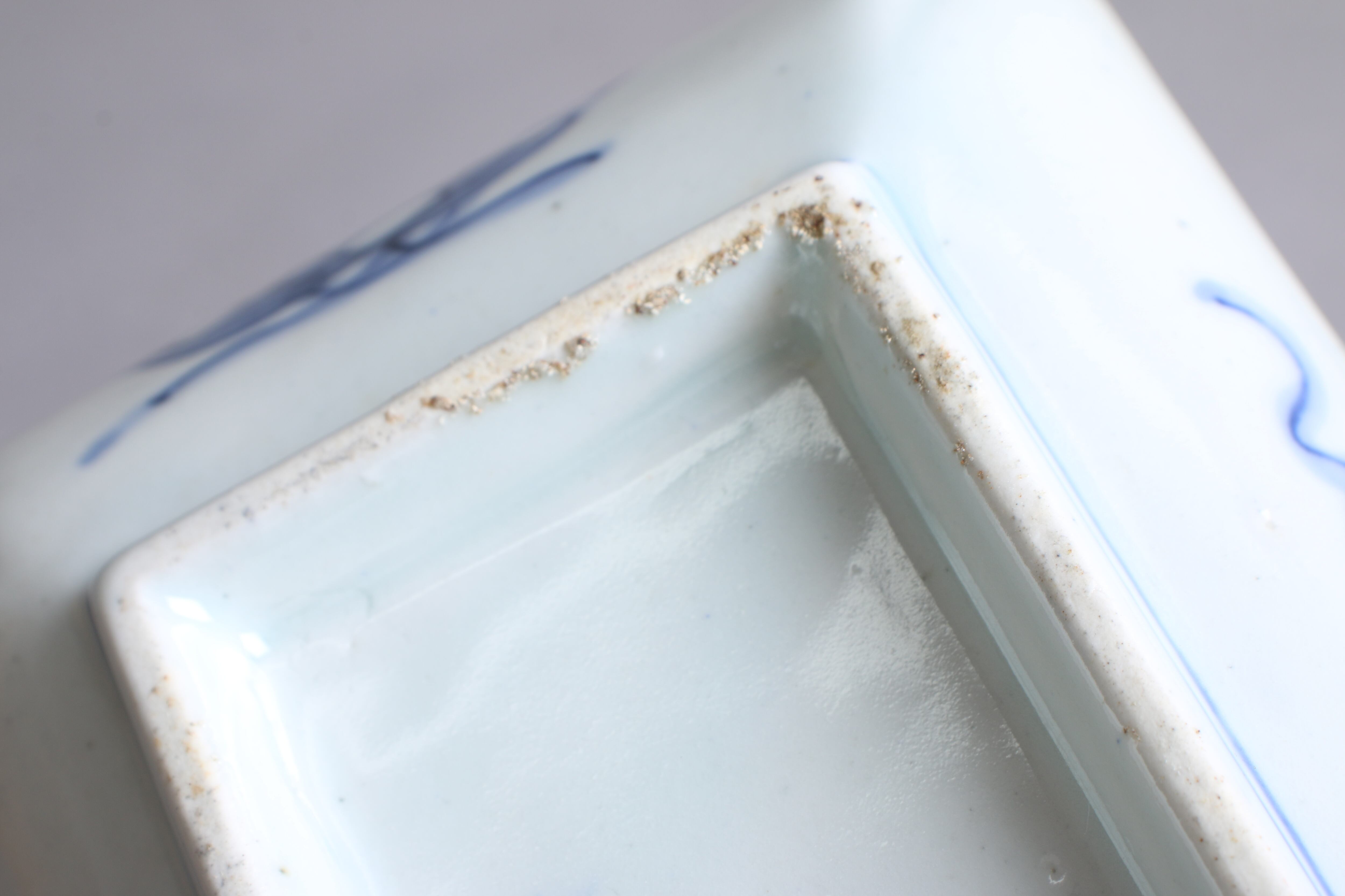 焼成時に窯の中でできる鉄分、くっつき、かまきず、ピンホール、経年による釉薬の薄れがございます。また、一枚一枚手描き、手作りですので器のサイズ(ミリ)、色味、描かれている文様の大きさなど個体差があり、ひとつとして同じものはございません。そういった時代感、個性をご理解いただき、楽しんでくだされば幸いです。電子レンジや食器洗い乾燥機のご使用はお控えください。
