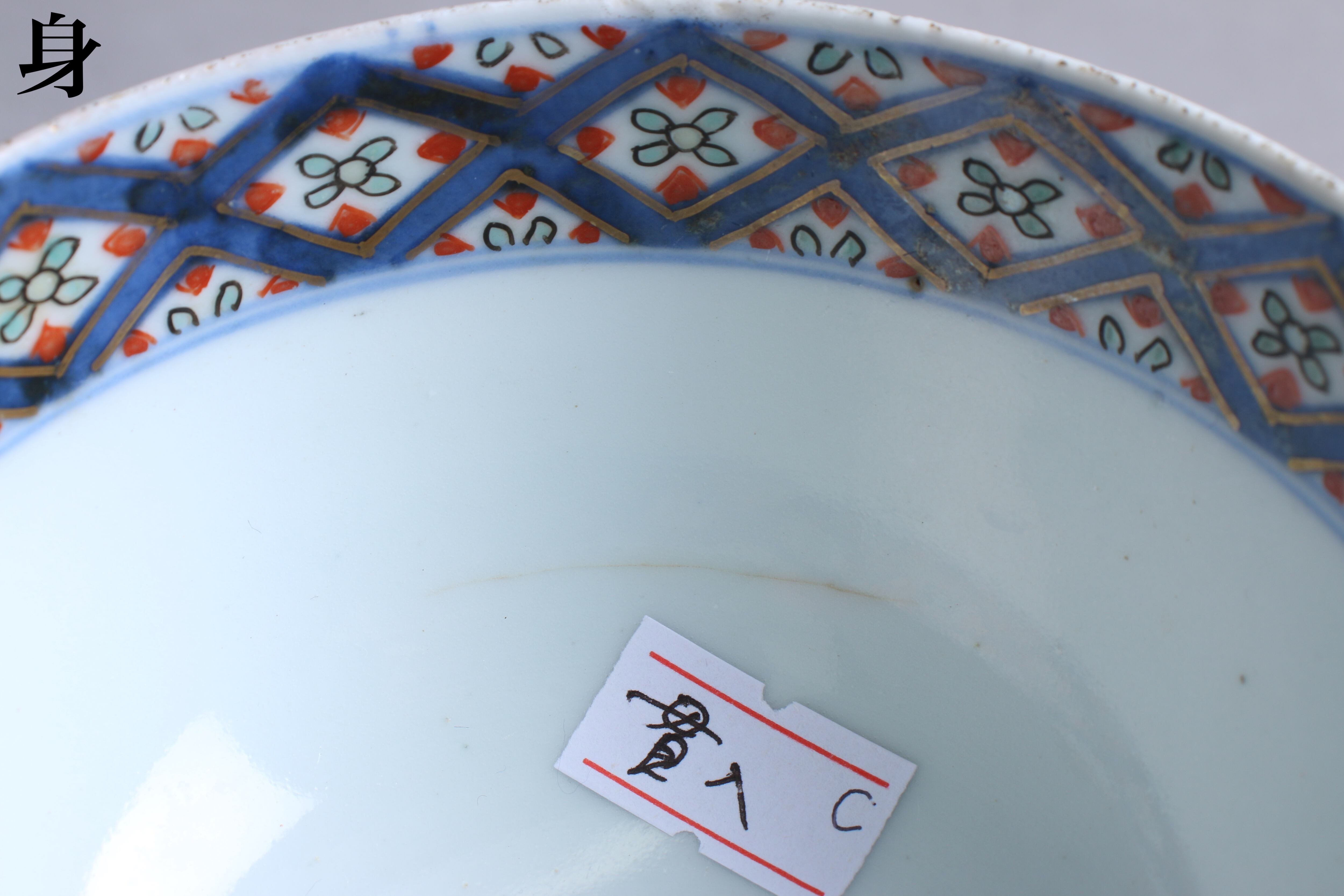 焼成時に窯の中でできる鉄分、くっつき、かまきず、ピンホール、経年による釉薬の薄れがございます。また、一枚一枚手描き、手作りですので器のサイズ(ミリ)、色味、描かれている文様の大きさなど個体差があり、ひとつとして同じものはございません。そういった時代感、個性をご理解いただき、楽しんでくだされば幸いです。電子レンジや食器洗い乾燥機のご使用はお控えください。