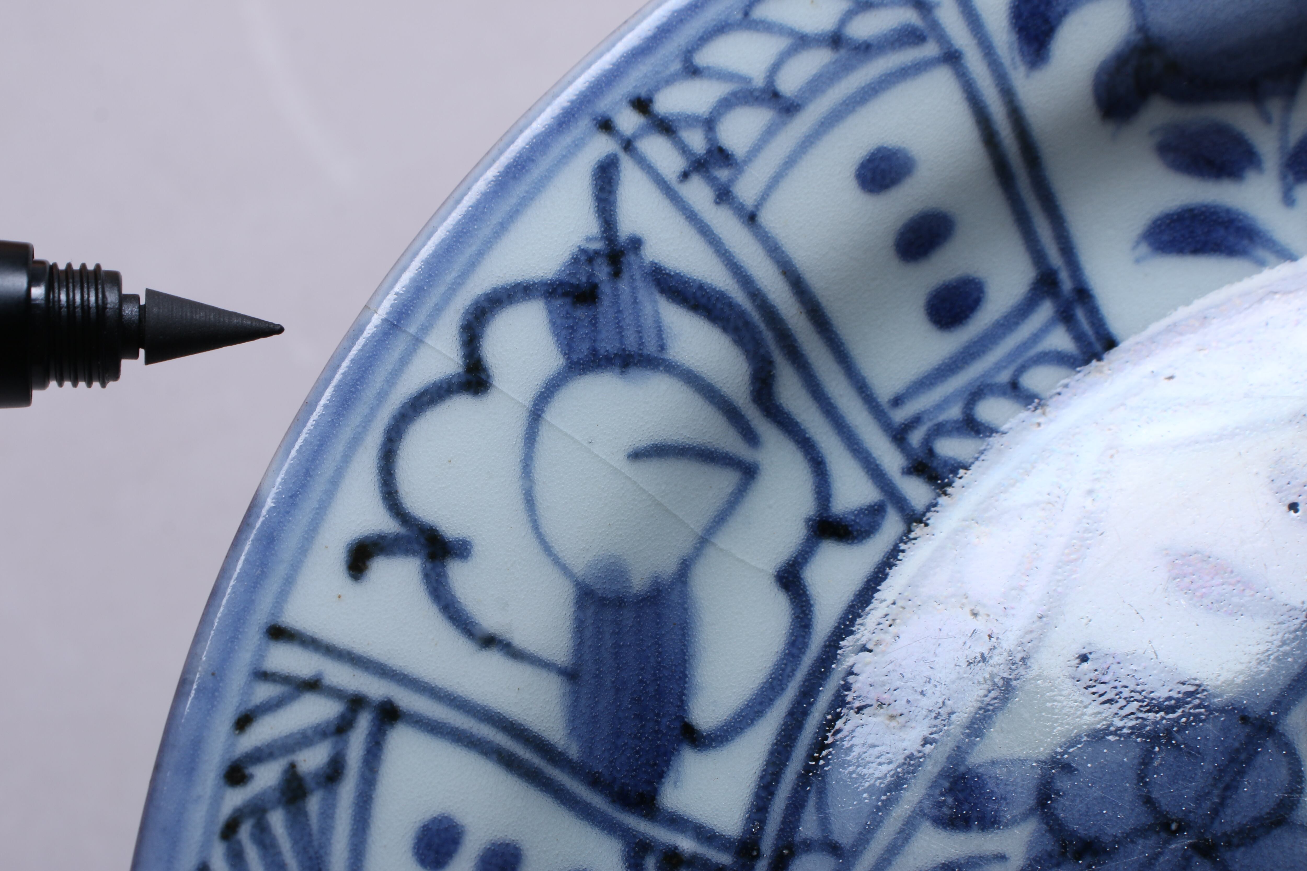 焼成時に窯の中でできる鉄分、くっつき、かまきず、ピンホール、経年による釉薬の薄れがございます。また、一枚一枚手描き、手作りですので器のサイズ(ミリ)、色味、描かれている文様の大きさなど個体差があり、ひとつとして同じものはございません。そういった時代感、個性をご理解いただき、楽しんでくだされば幸いです。電子レンジや食器洗い乾燥機のご使用はお控えください。