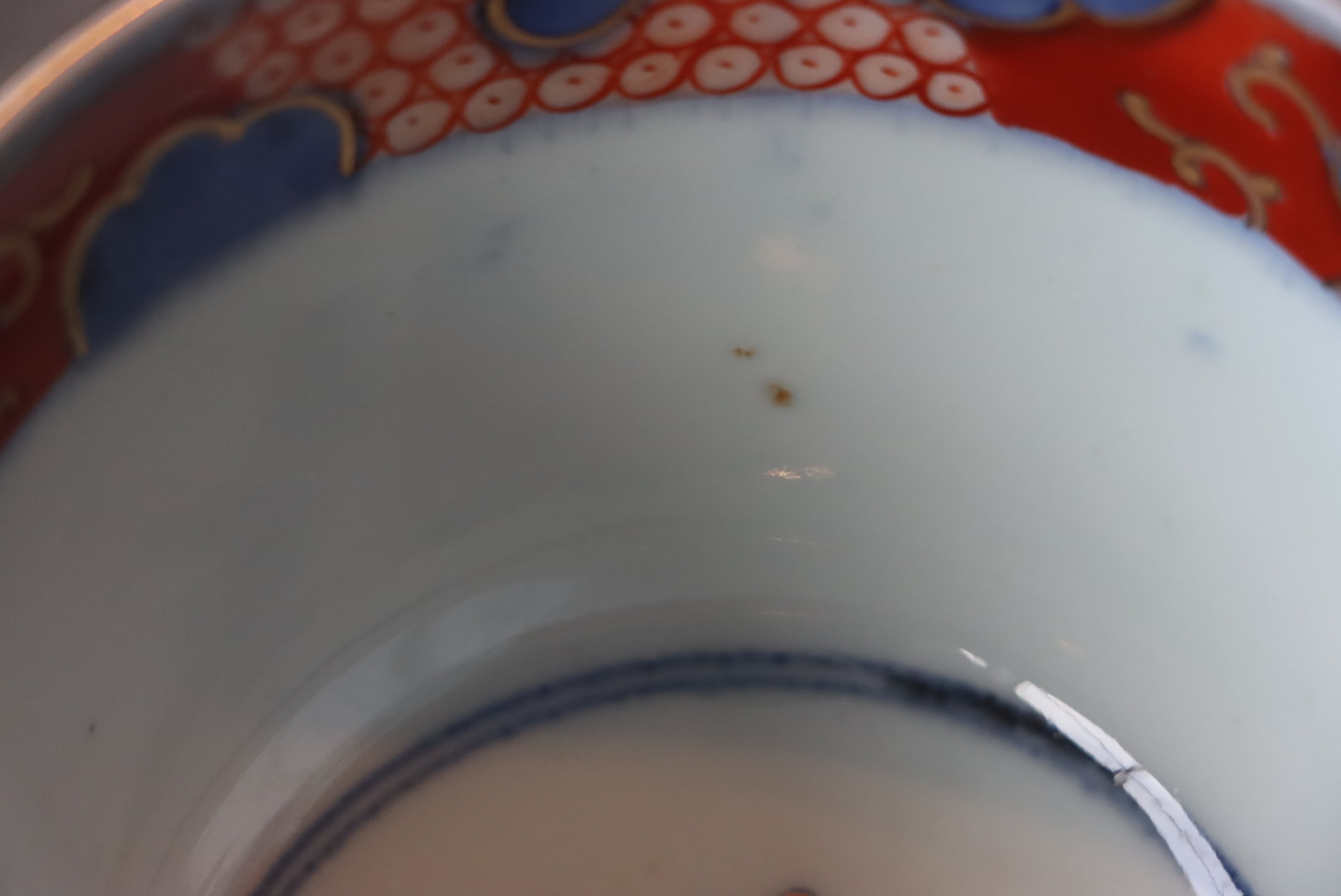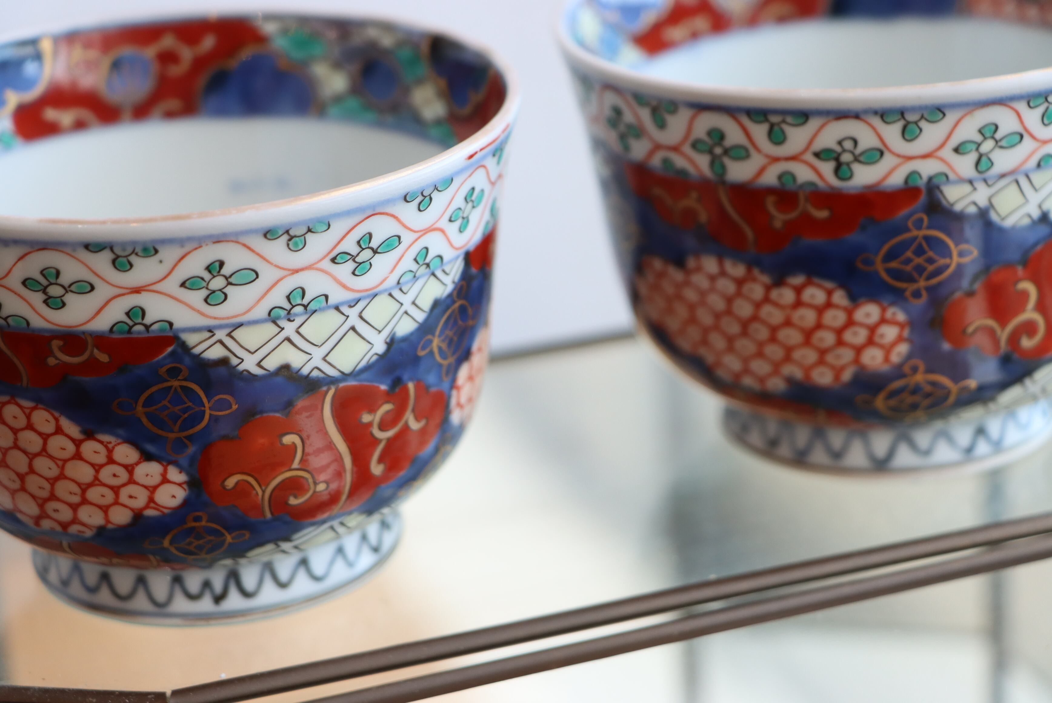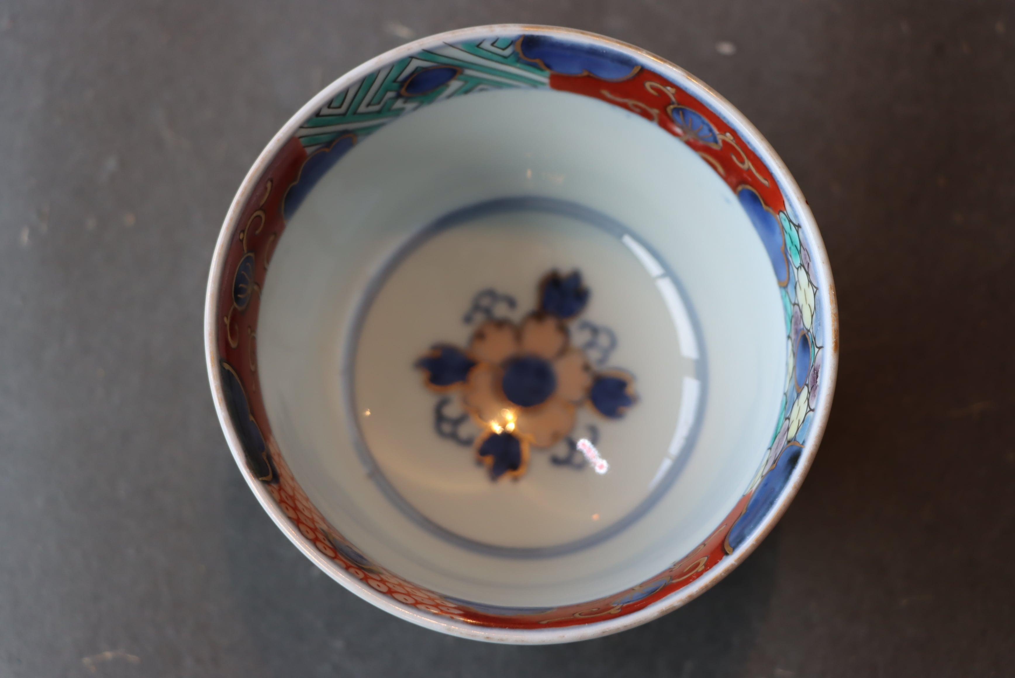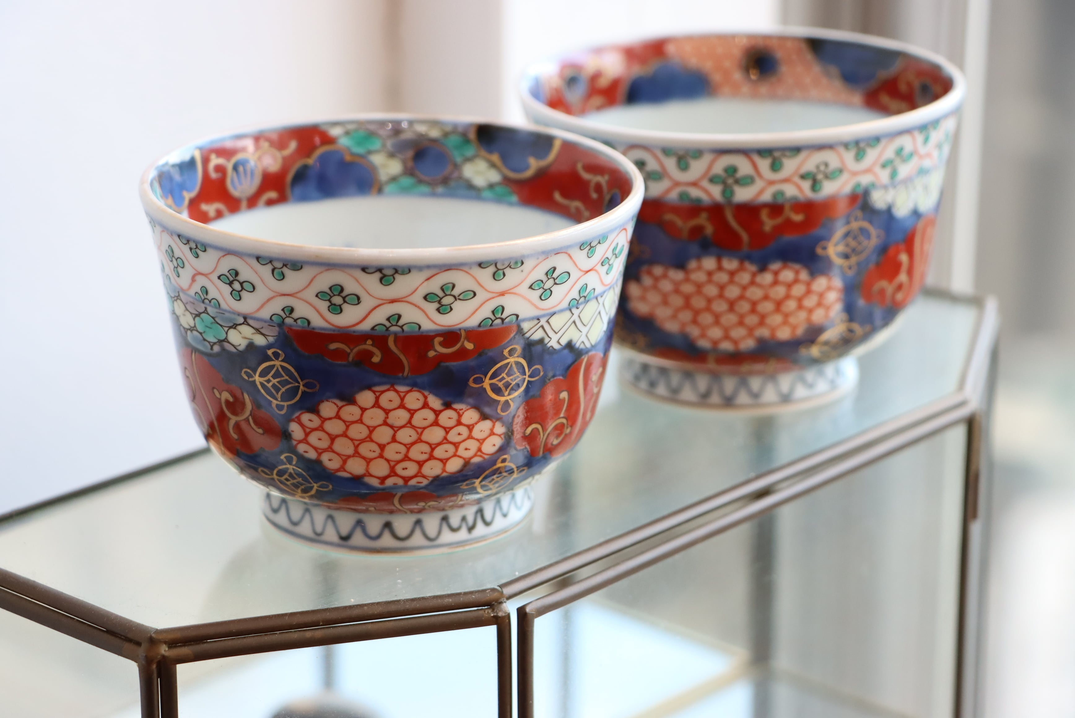 【Imari "Mukouzuke" cup with cloisonne pattern and flower design in overglaze enamels.】