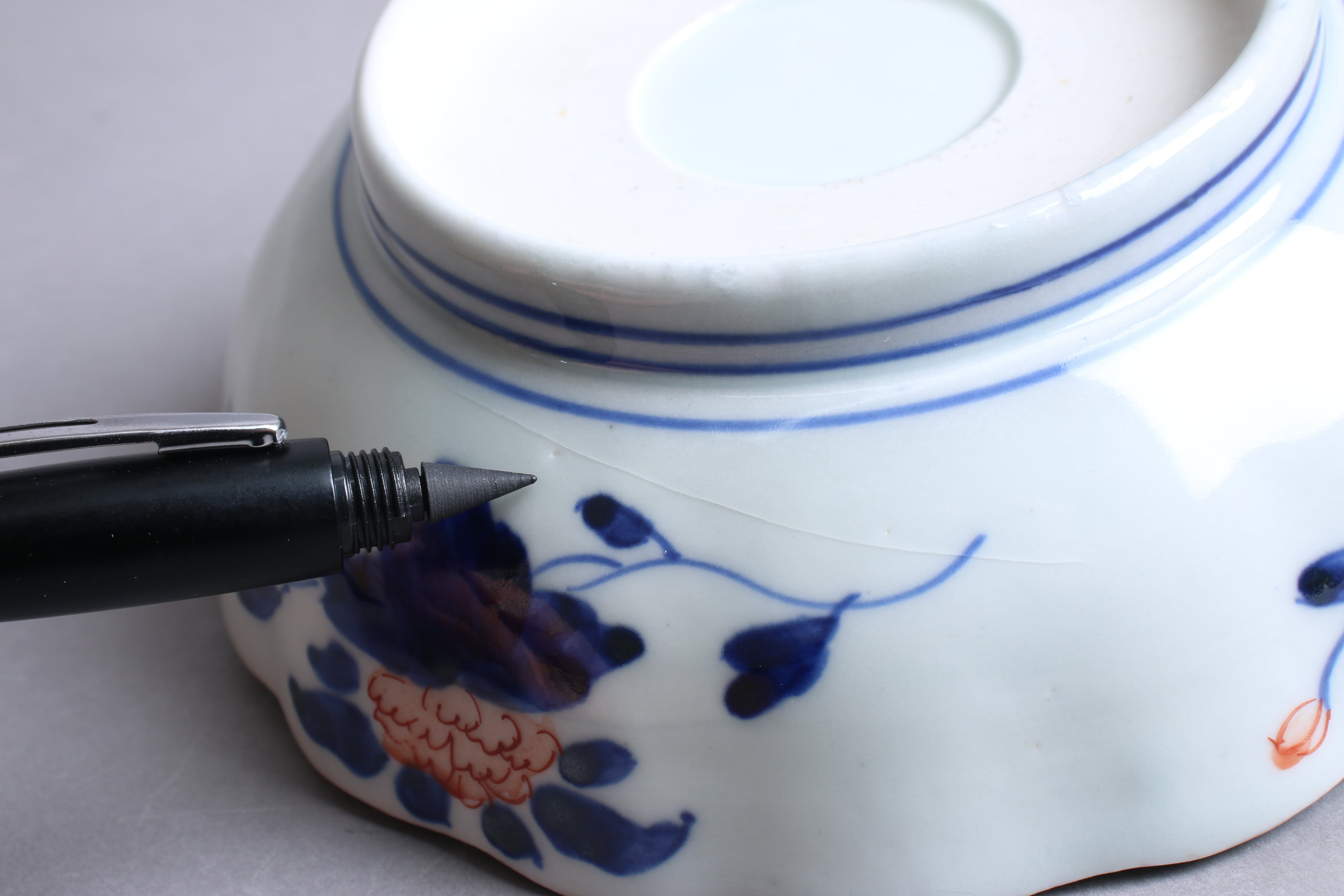 焼成時に窯の中でできる鉄分、くっつき、かまきず、ピンホール、経年による釉薬の薄れがございます。また、一枚一枚手描き、手作りですので器のサイズ(ミリ)、色味、描かれている文様の大きさなど個体差があり、ひとつとして同じものはございません。そういった時代感、個性をご理解いただき、楽しんでくだされば幸いです。電子レンジや食器洗い乾燥機のご使用はお控えください。